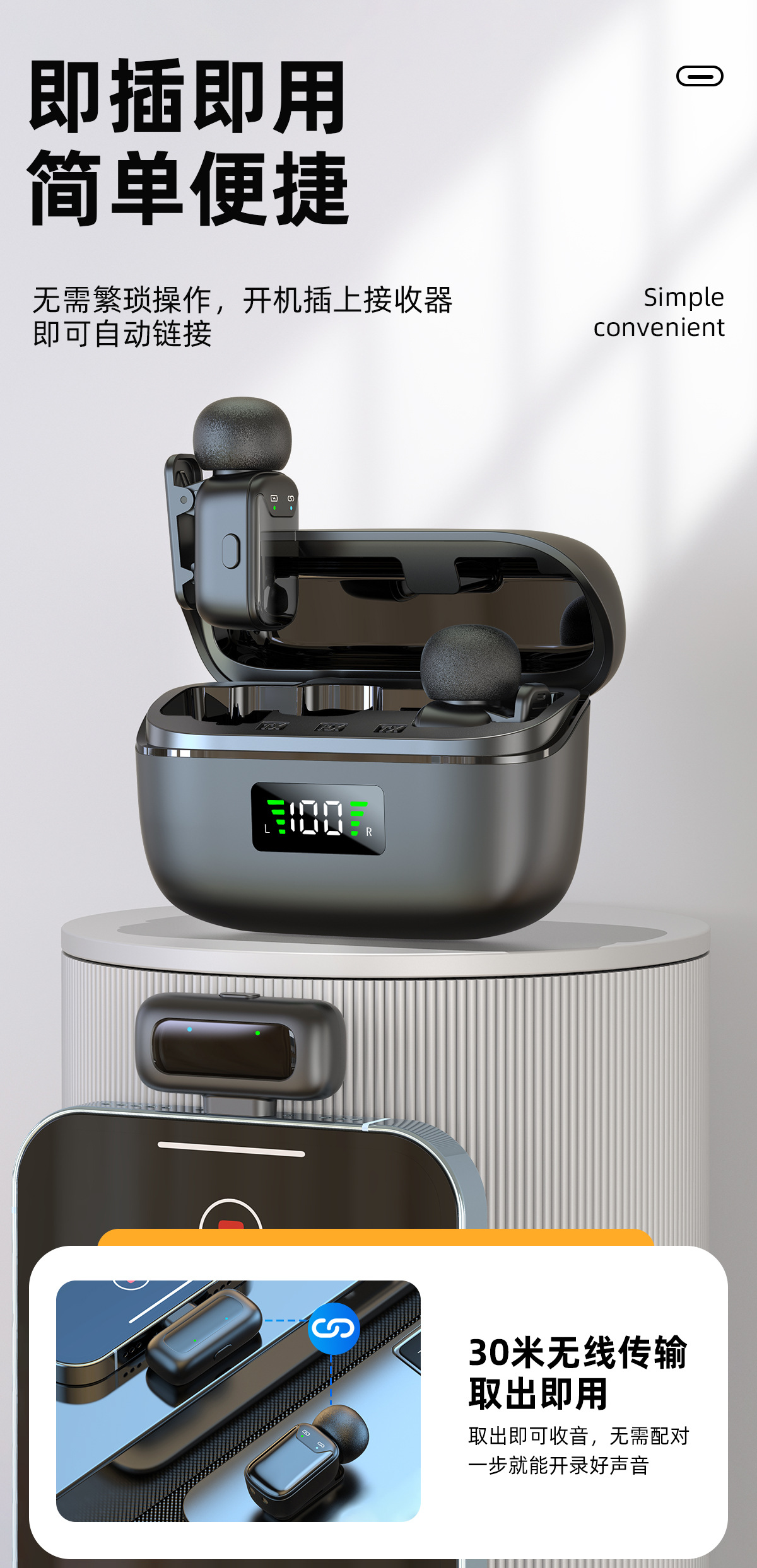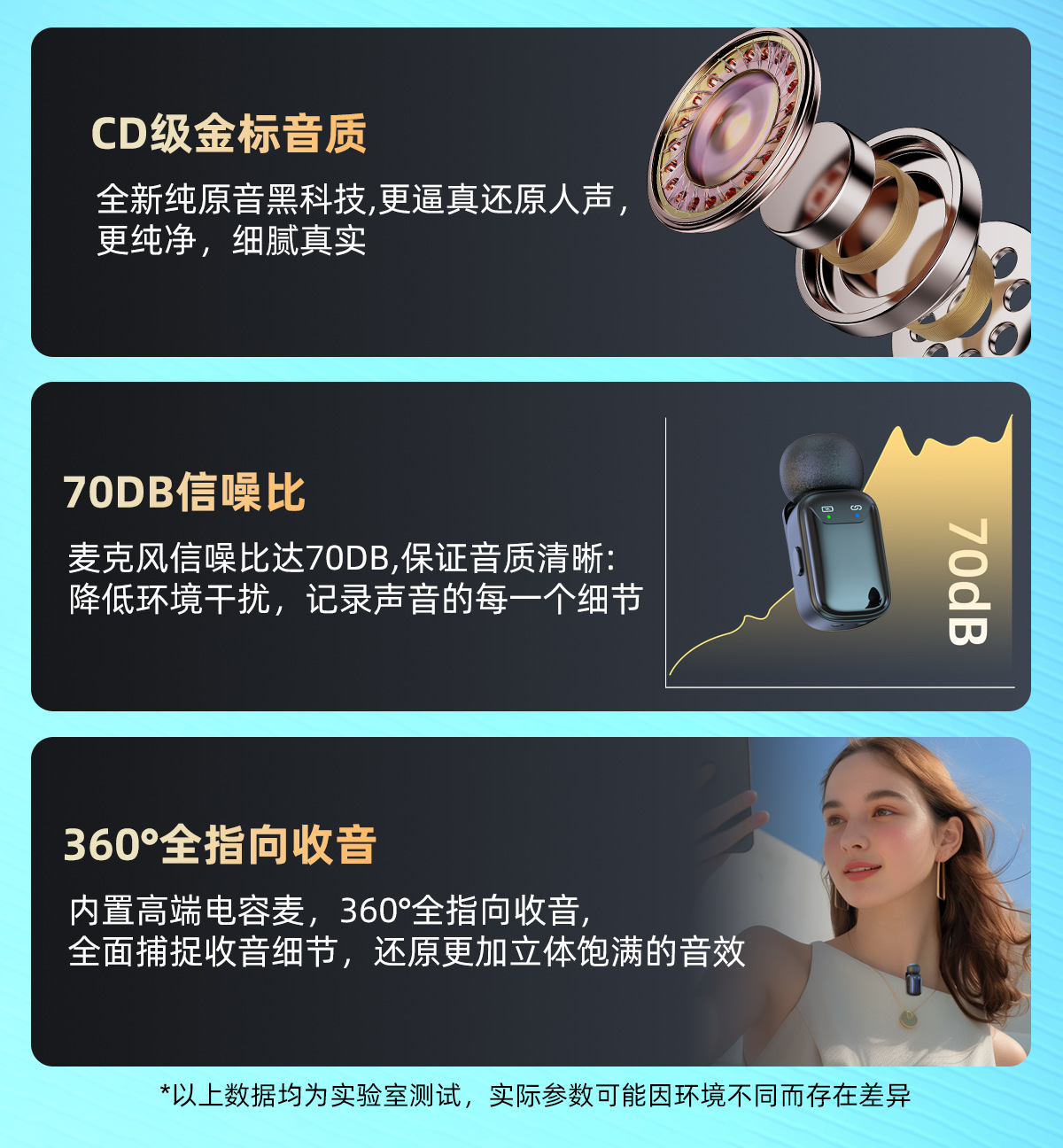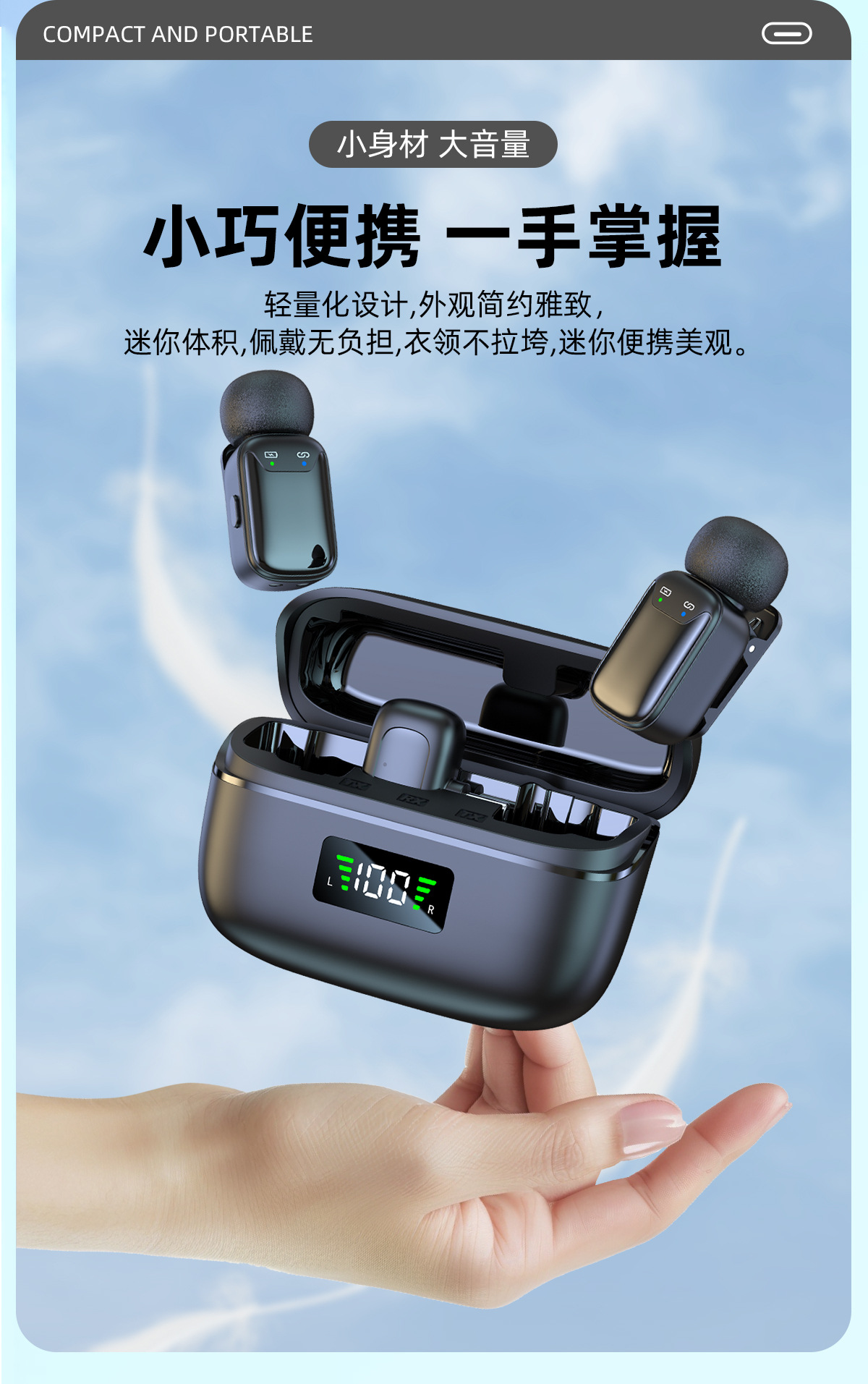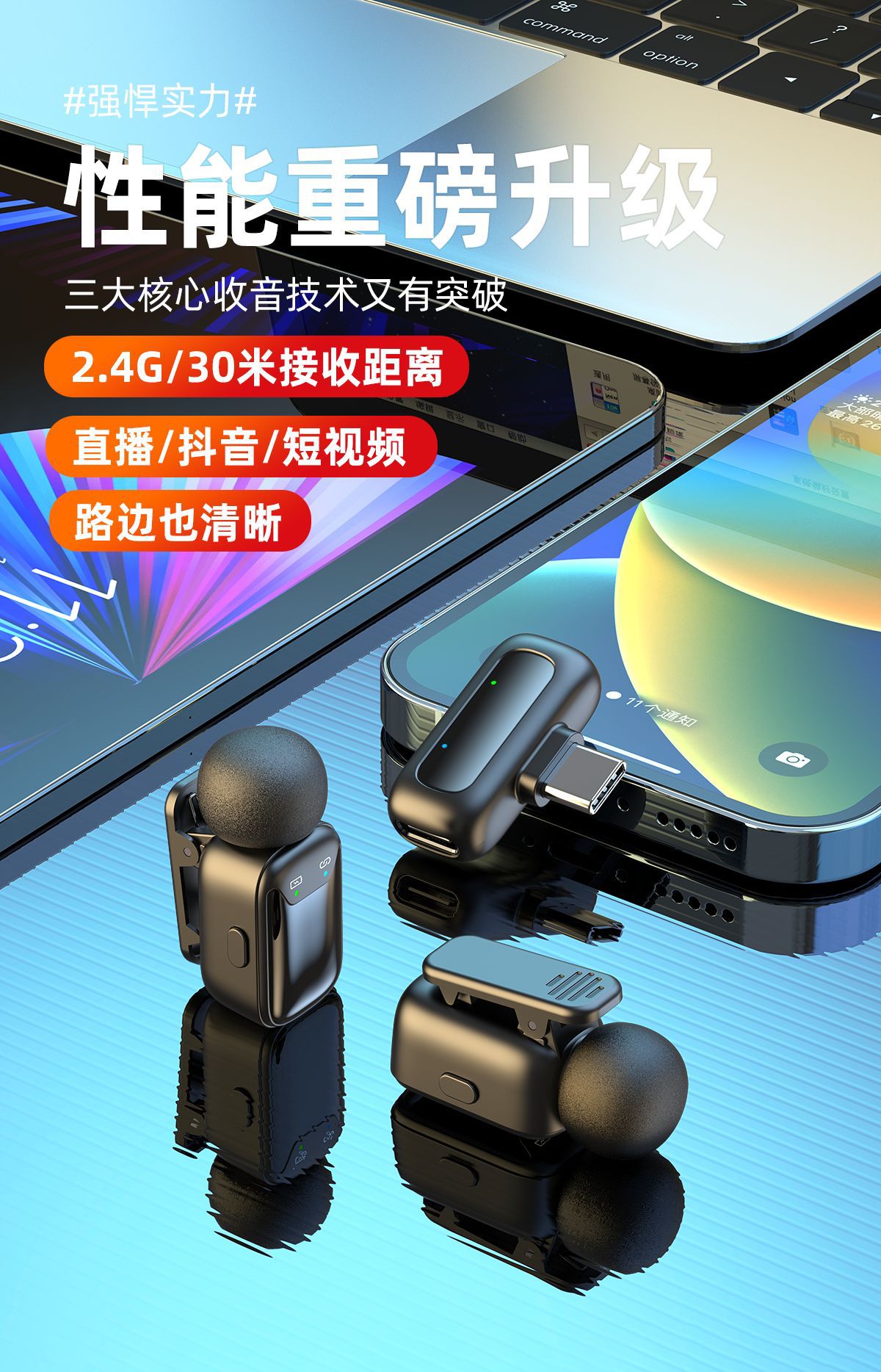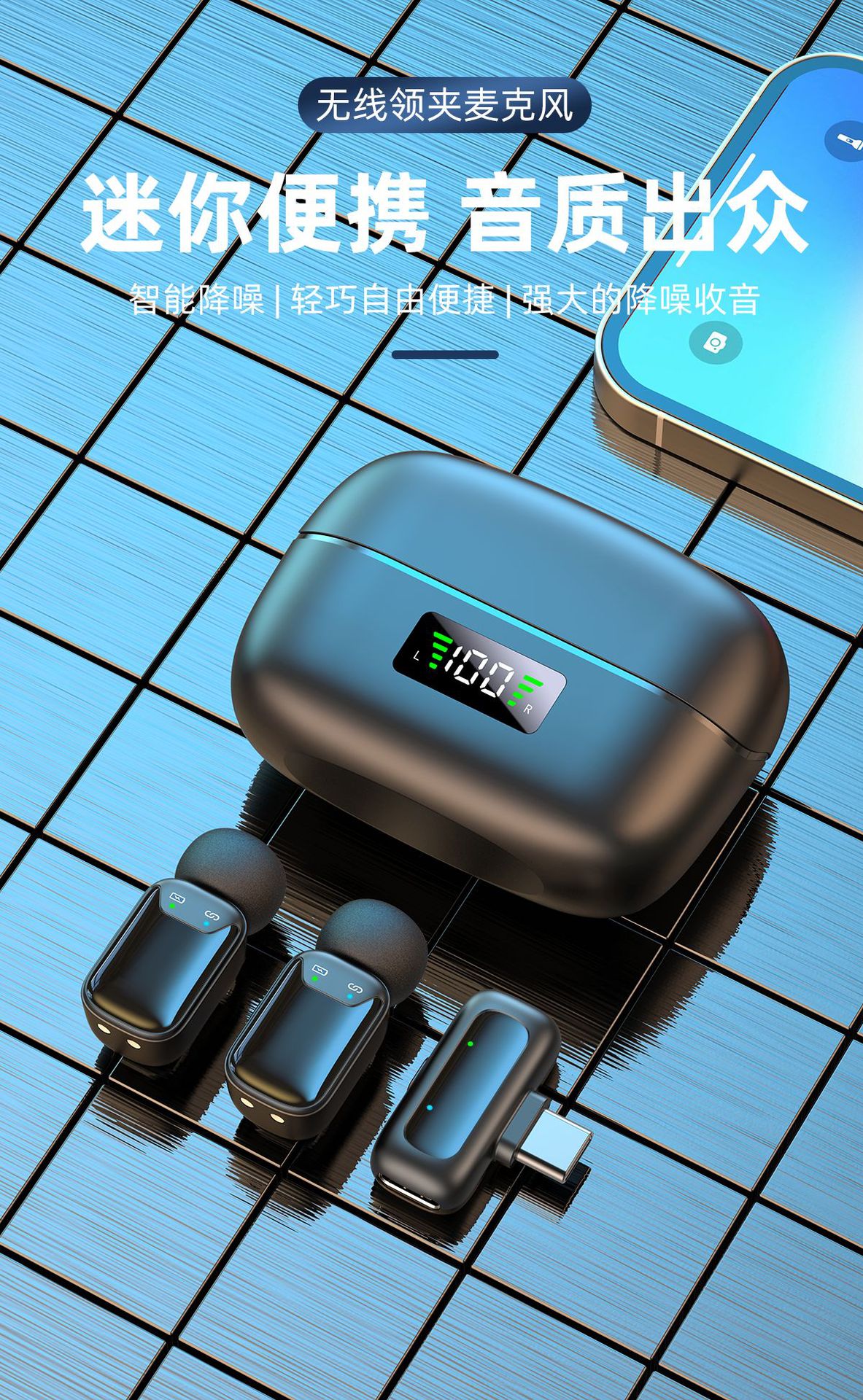 라디오 마이크 야외 휴대폰 라이브 방송 블루투스 1대2 미니 무선 라발리에 마이크 노이즈 캔슬링 블루투스 5.3스토어 가기
