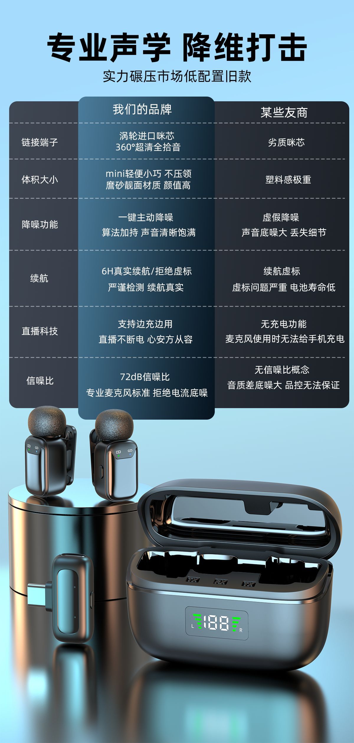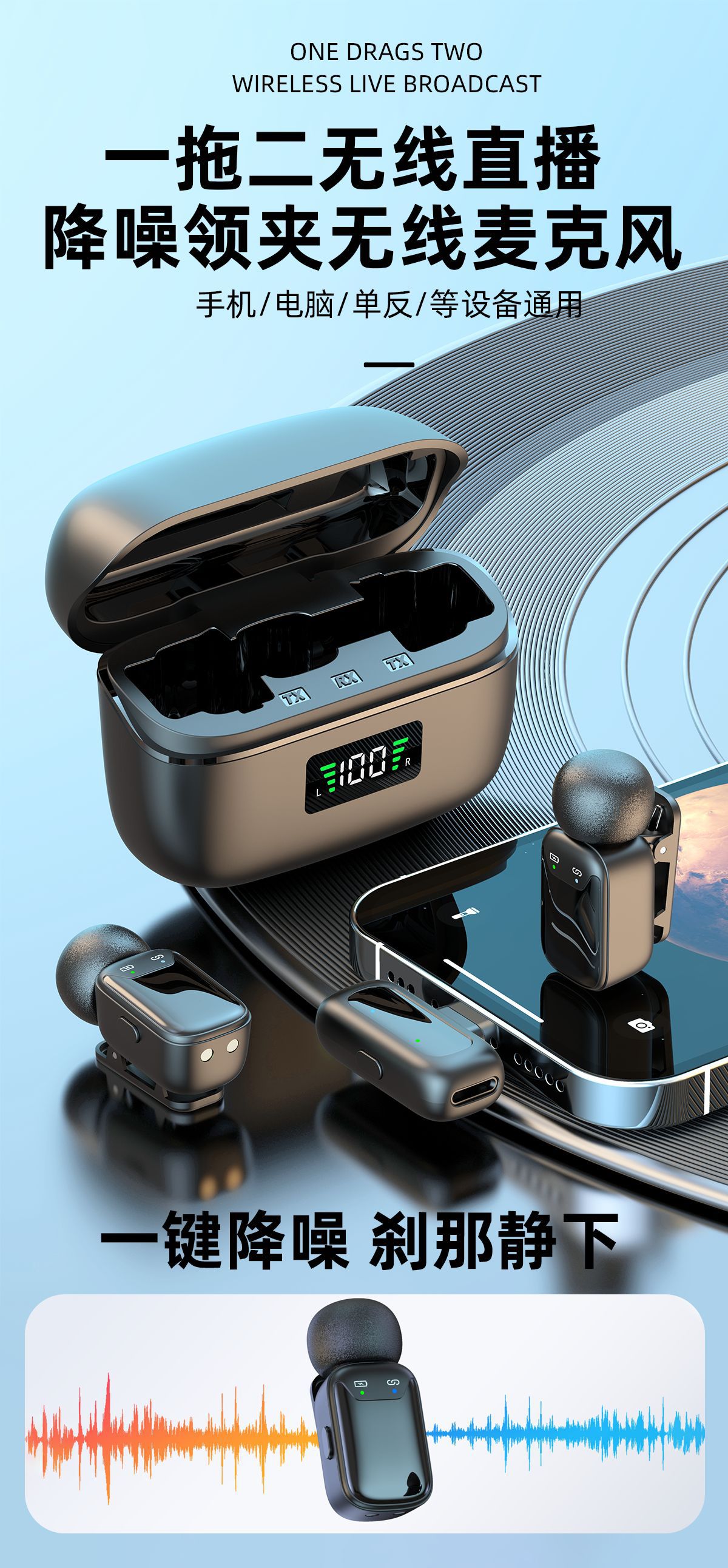 라디오 마이크 야외 휴대폰 라이브 방송 블루투스 1대2 미니 무선 라발리에 마이크 노이즈 캔슬링 블루투스 5.3