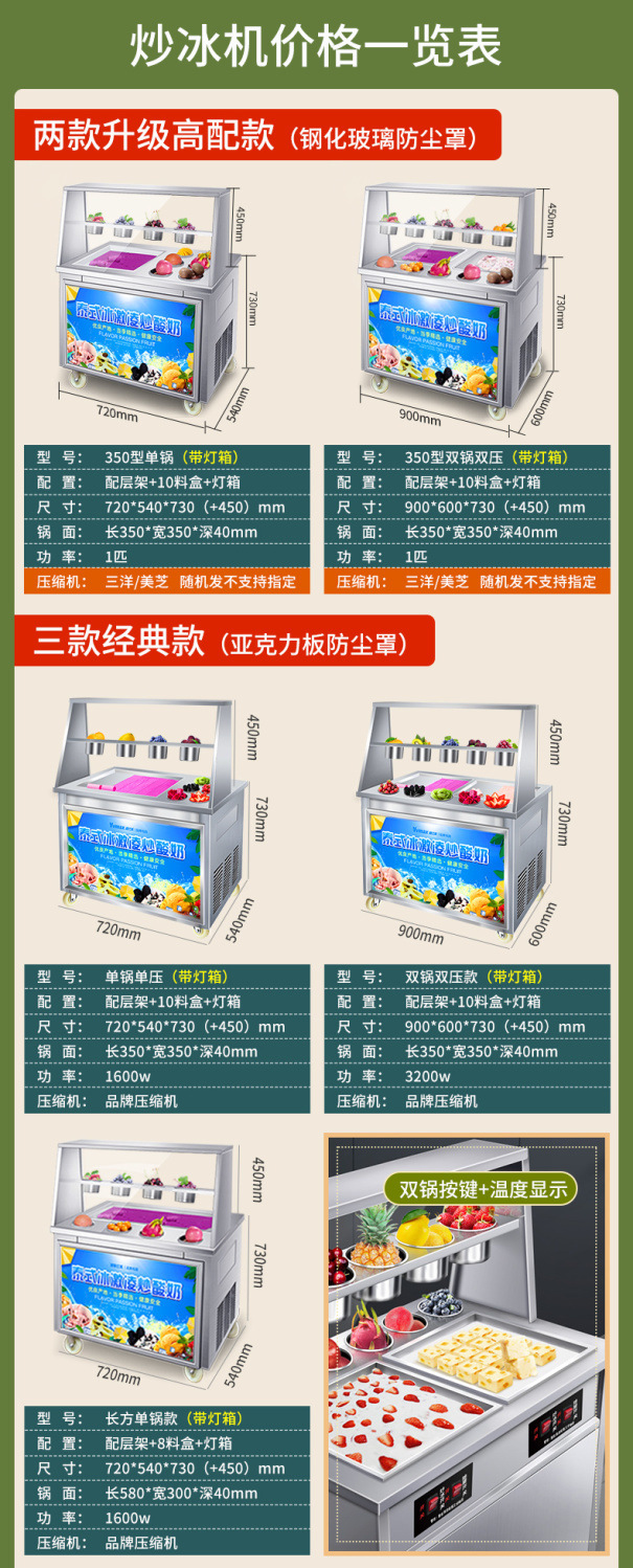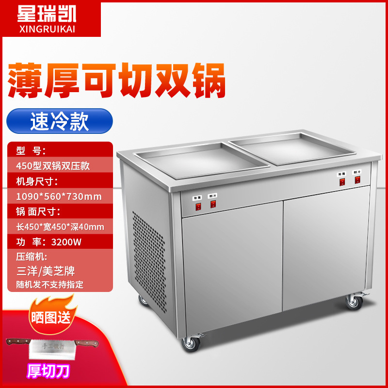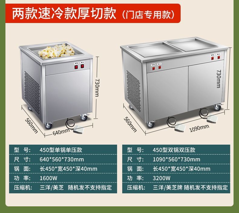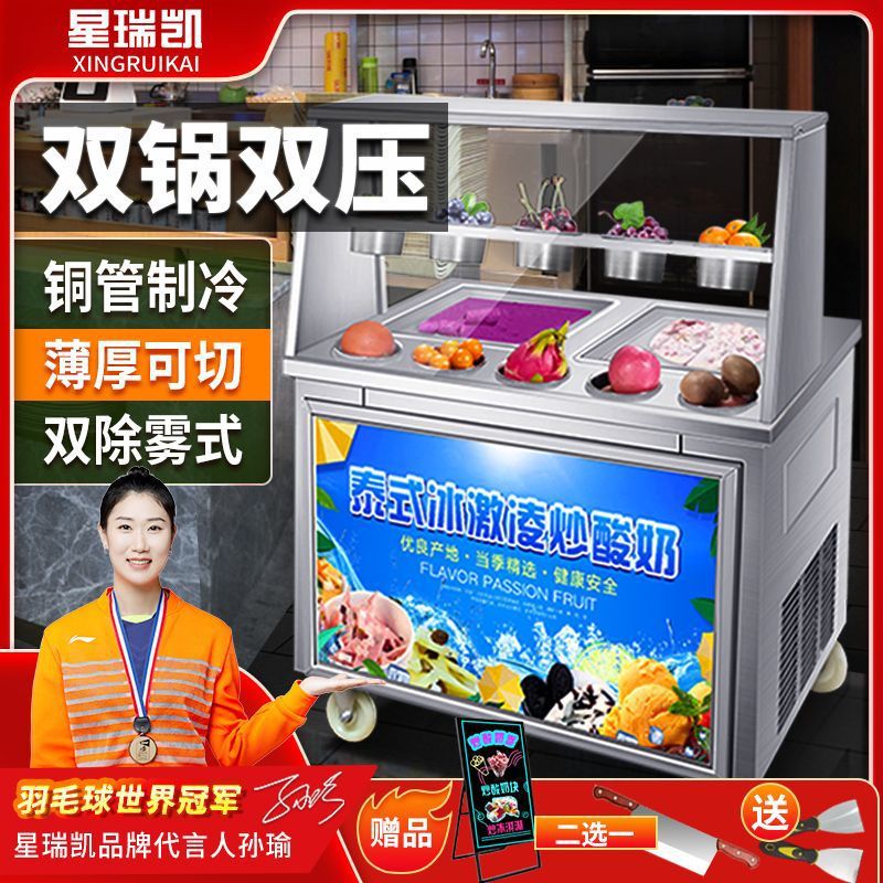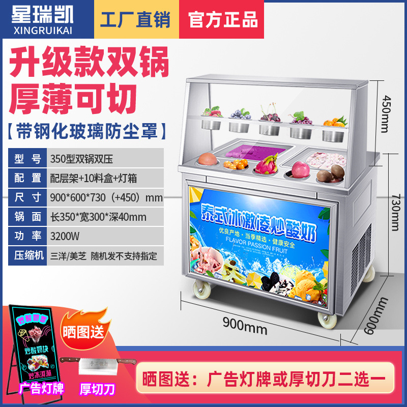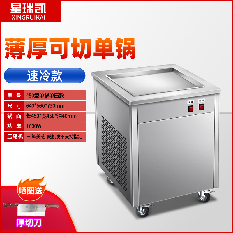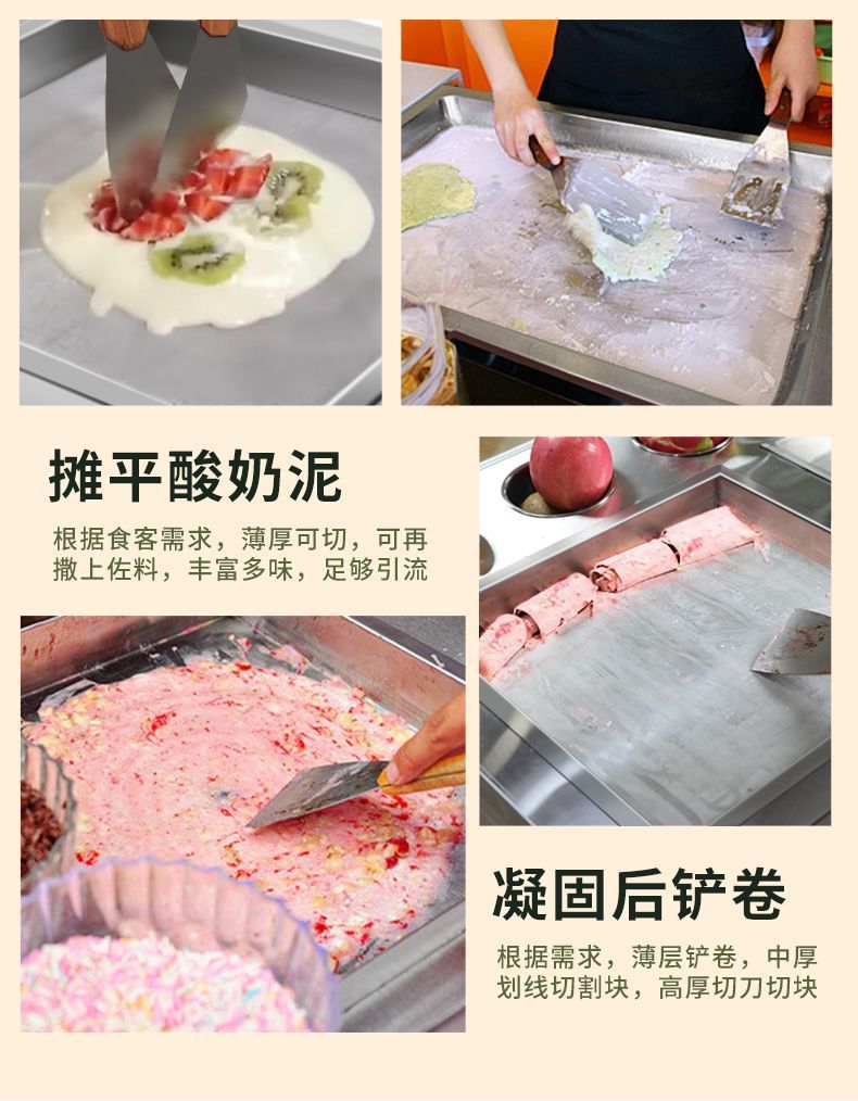 상업적인 두꺼운 컷 튀긴 과일 요구르트 아이스 프라이팬 기계 인터넷 붉은 튀긴 아이스크림 롤 기계 야시장 스톨 아이스 죽 기계