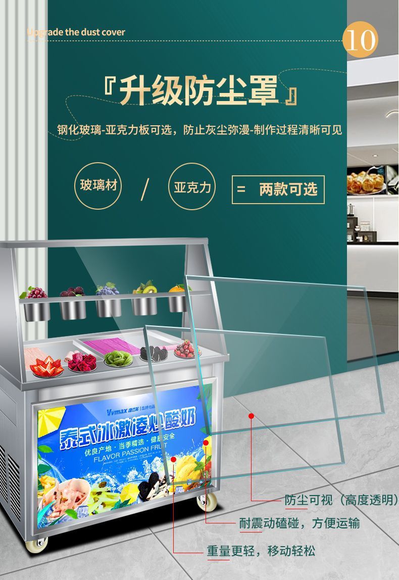 상업적인 두꺼운 컷 튀긴 과일 요구르트 아이스 프라이팬 기계 인터넷 붉은 튀긴 아이스크림 롤 기계 야시장 스톨 아이스 죽 기계스토어 가기
