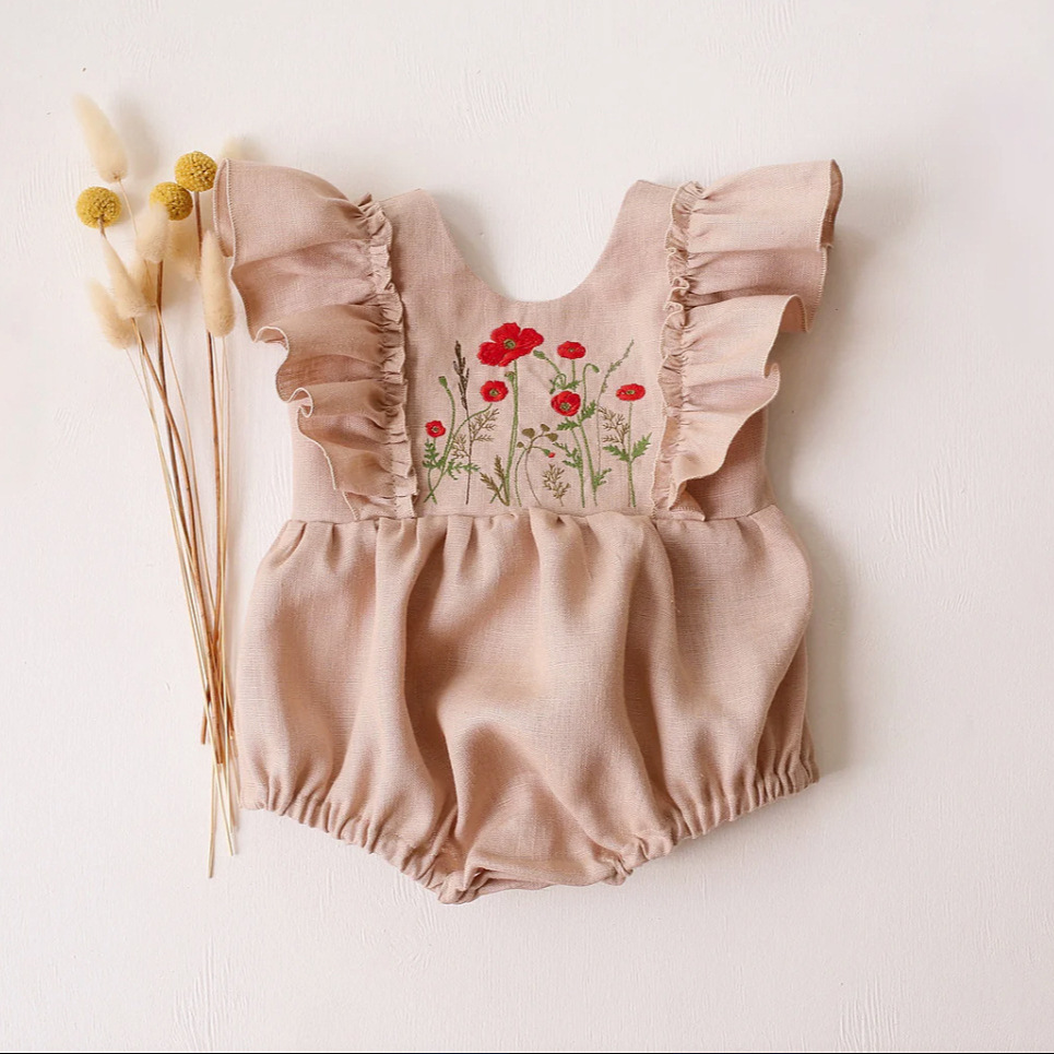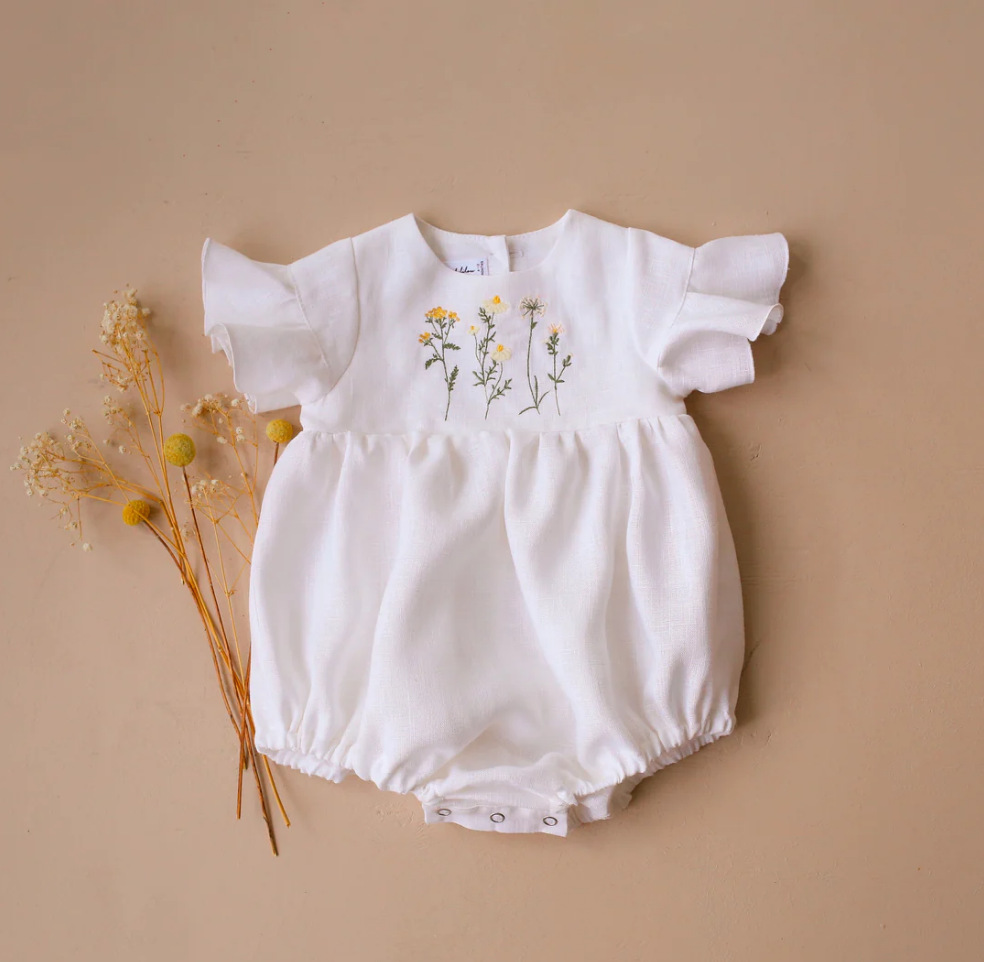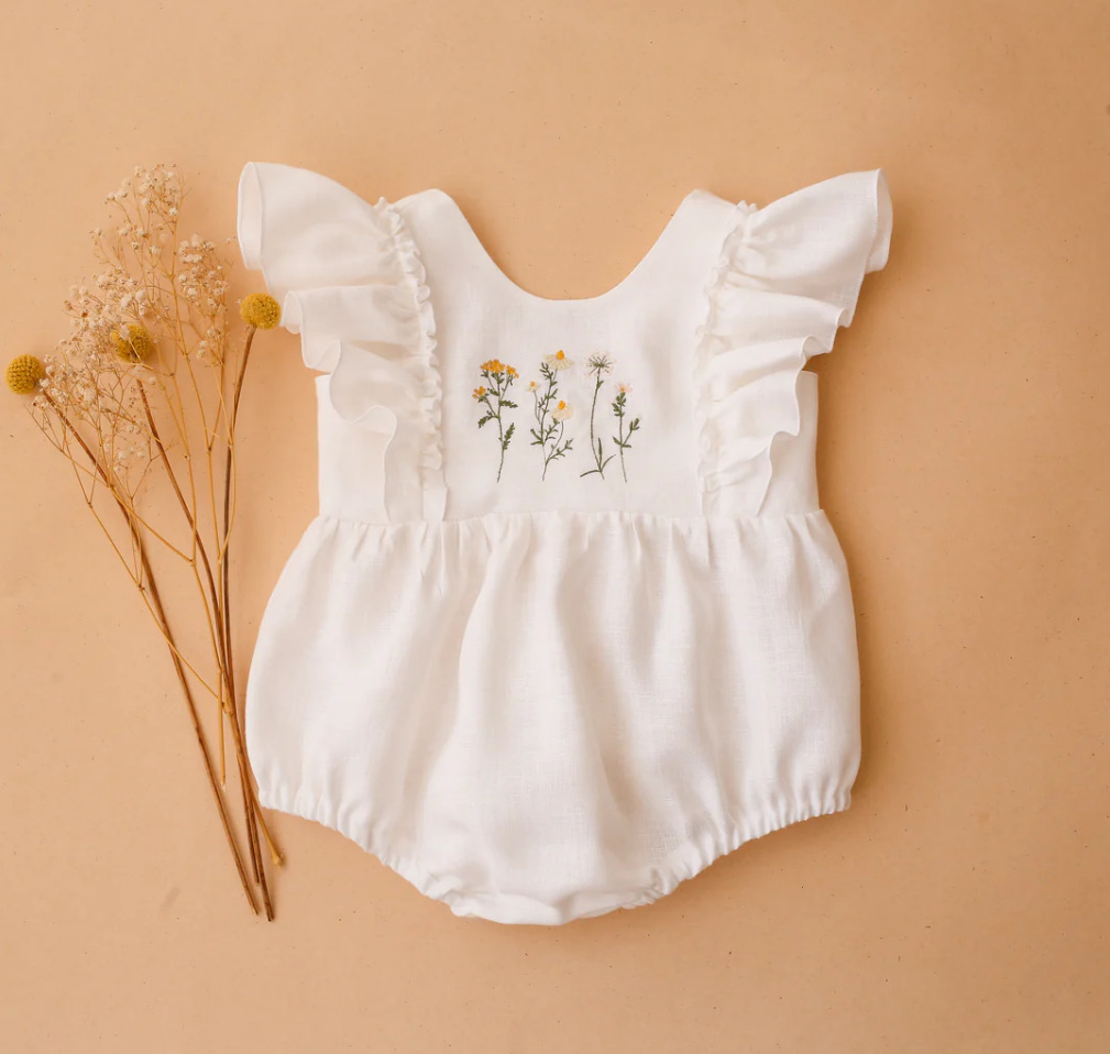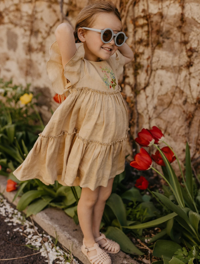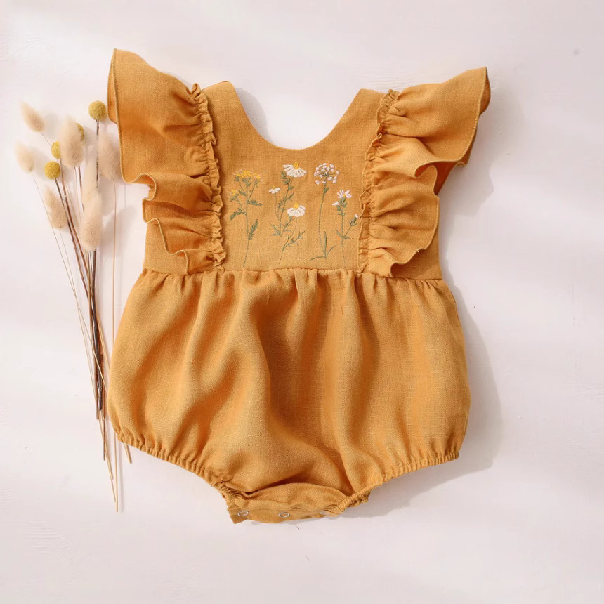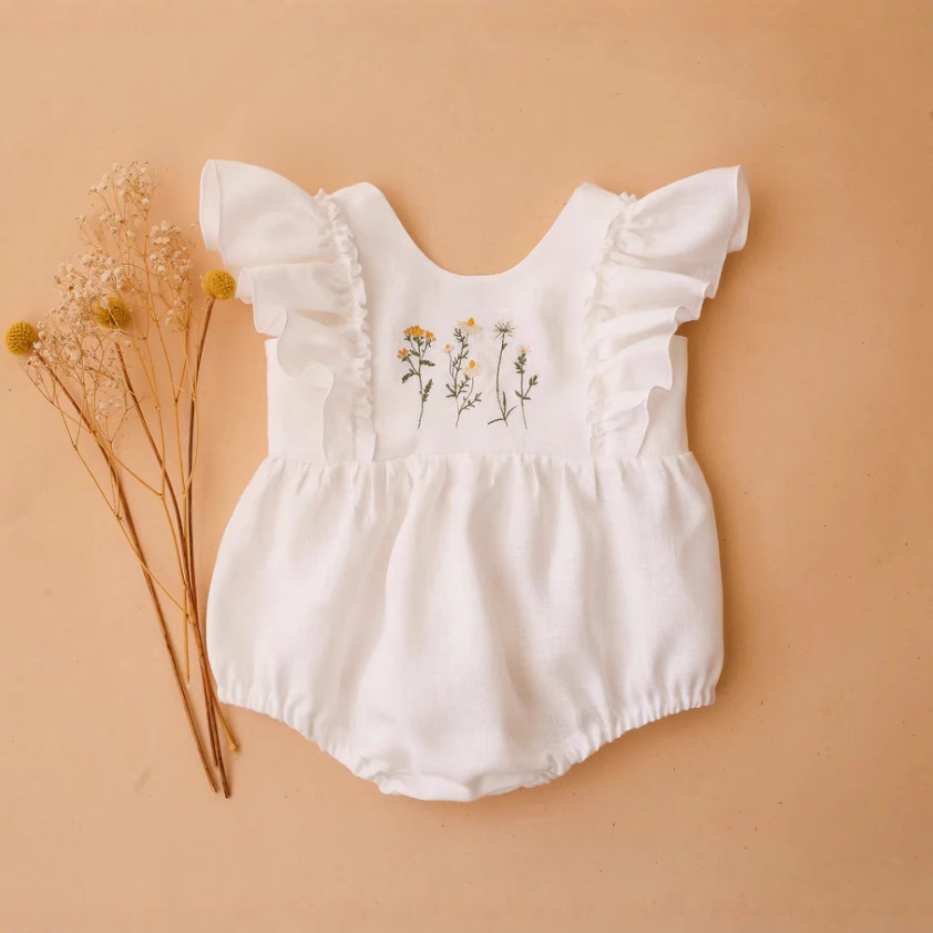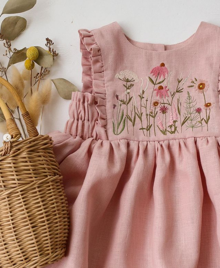 여름 2025 소녀 비행 소매 자수 작은 꽃 목가적 인 신선한 스타일 면화와 리넨 케이크 원피스 Hayi Ins