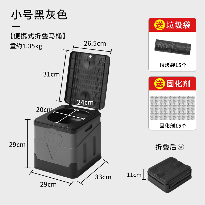 • 클래식 소형 변기(검정색 및 회색)(경화제 15개 + 쓰레기 봉투 15개 + 보관 가방 포함)