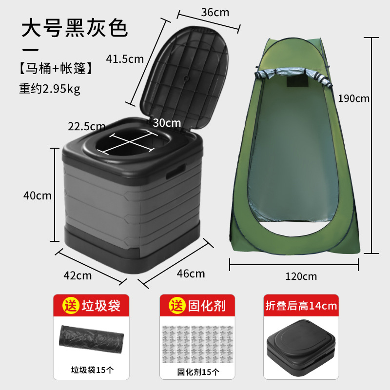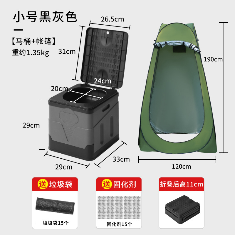 • 클래식 소형 변기(검정색 및 회색) + 차광 텐트