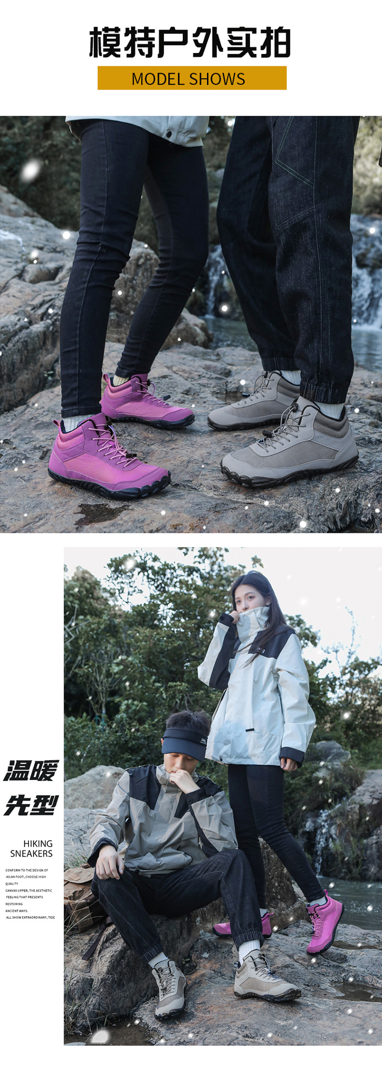 2024 국경을 넘는 가을과 겨울 야외 5 손가락 스노우 부츠 시즌 남녀 커플 방수 코튼 슈즈 기모 두꺼운 등산 코튼 부츠