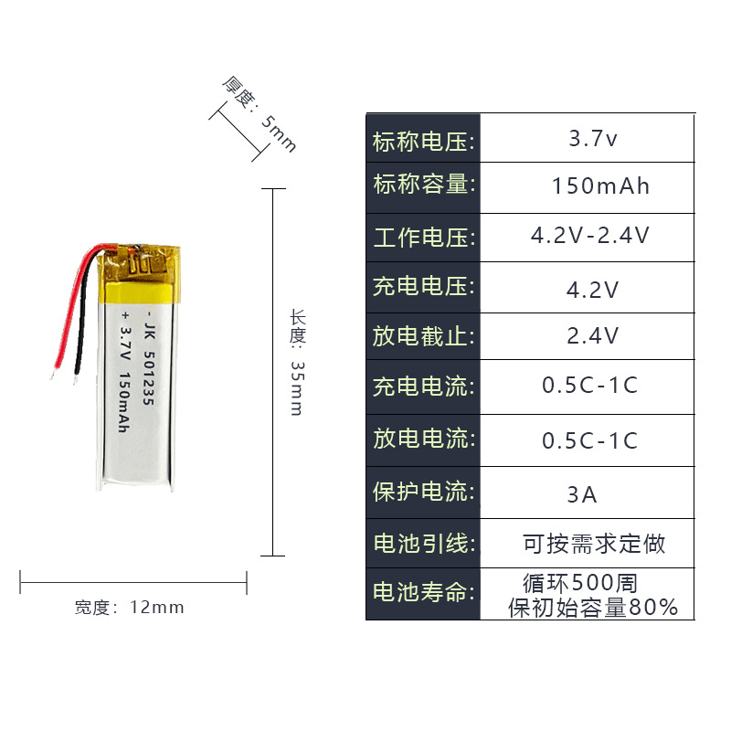 • 501235 -150mAh 배터리 셀