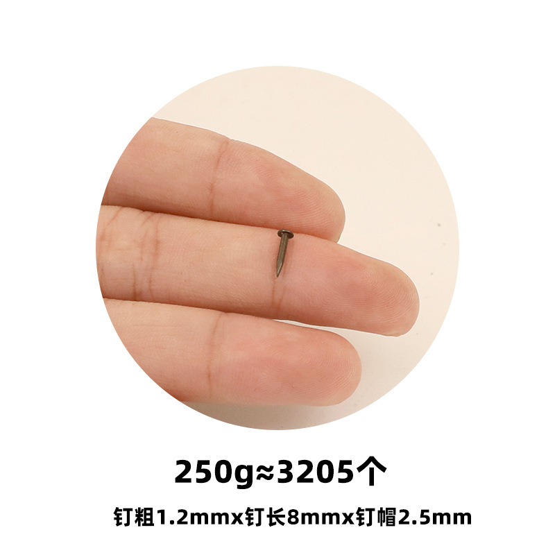 • 두께 1.2mm, 길이 8mm, 캡 직경 2.5mm(청동)(250g, 약 3205개)