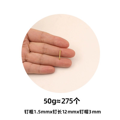 • 길이 12mm, 두께 1.5mm, 캡 직경 3mm(황동색)(50g, 약 275개)