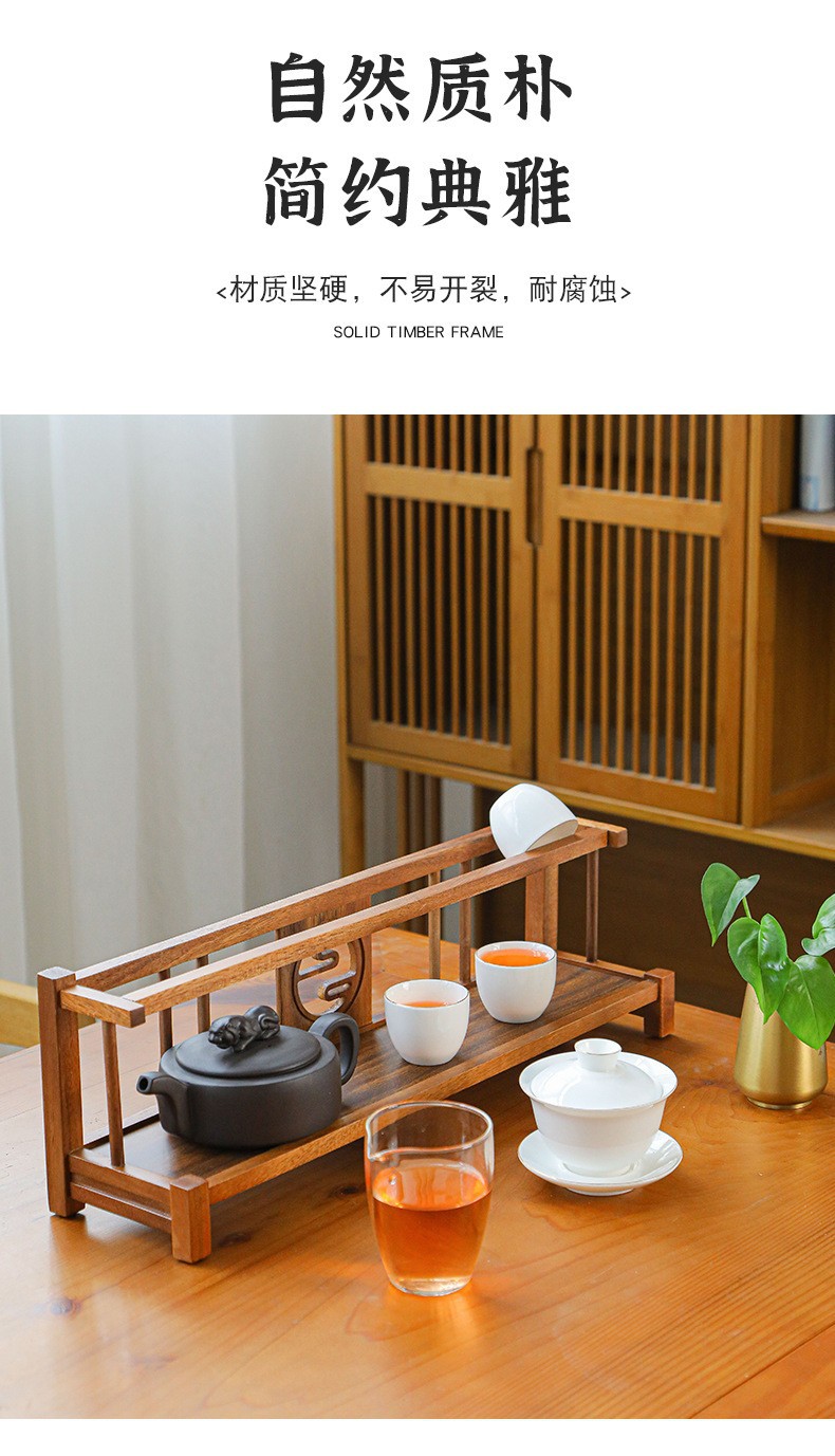 데스크탑 스토리지 랙 작은 중국 스타일 골동품 랙 나무 차 컵 저장 보라색 모래 냄비 차 시음 차 세트 2 층 디스플레이 랙