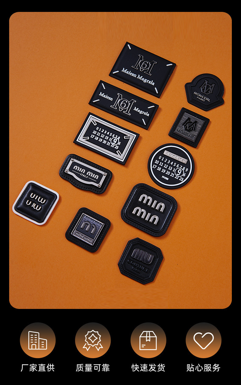 재고 작은 배치 크로스 테두리 가죽 표지판 사용자 정의 다운 재킷 청바지 가방 의류 액세서리 맞춤형 로고스토어 가기