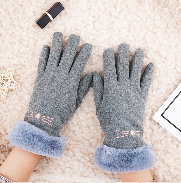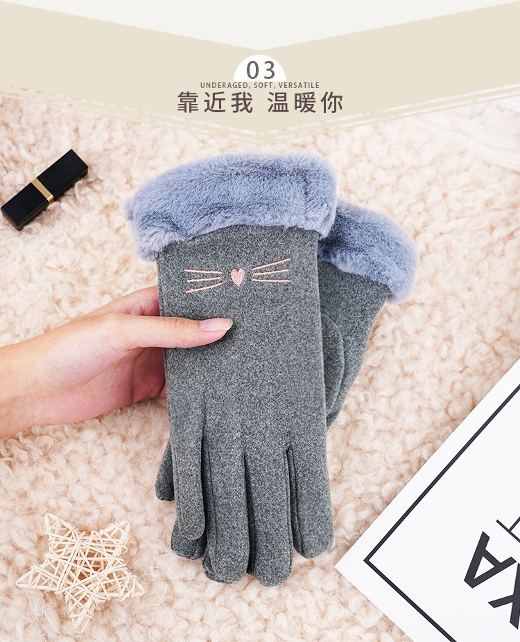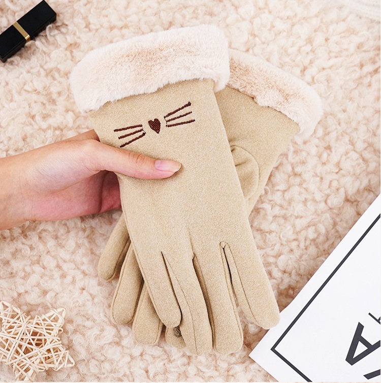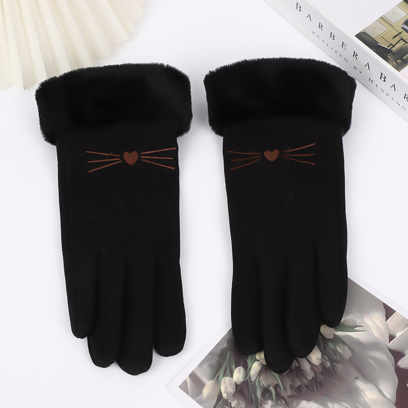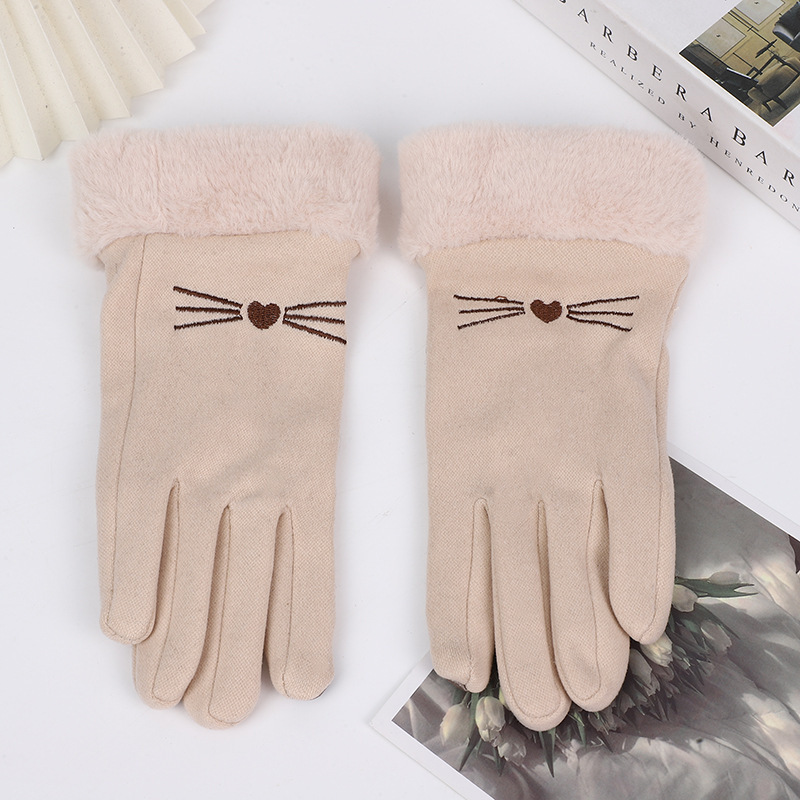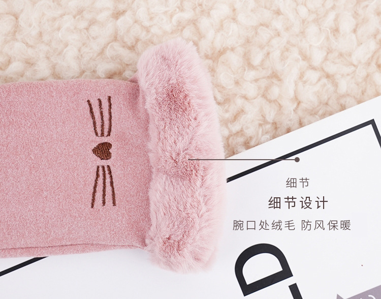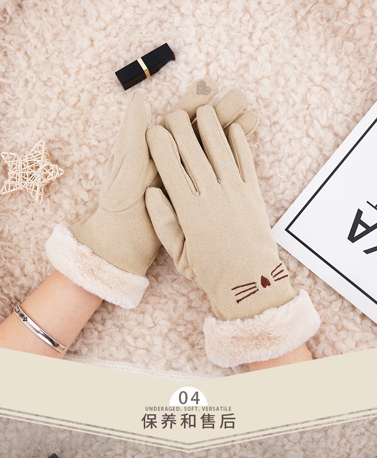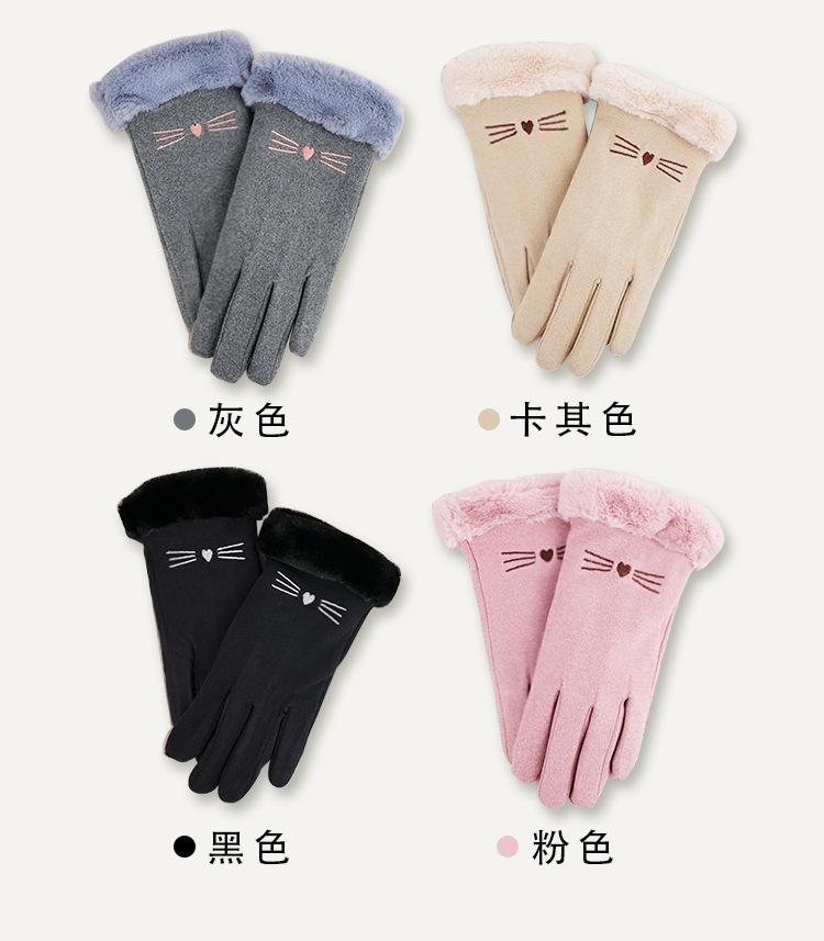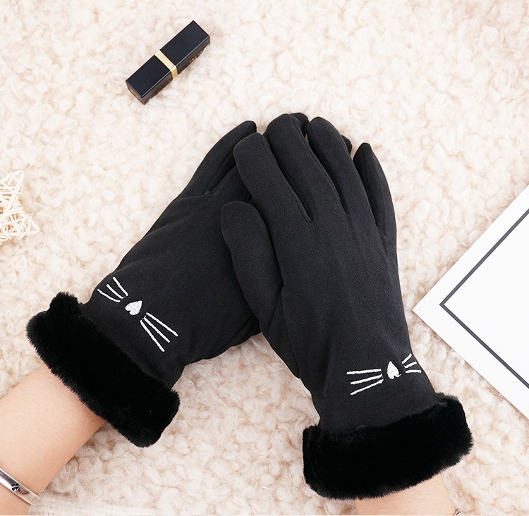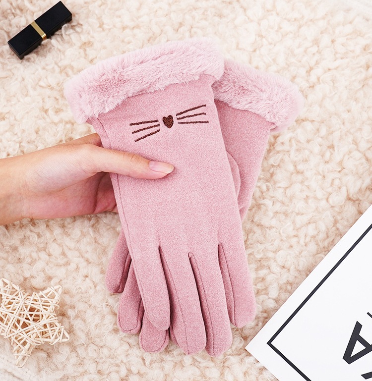 De Velvet 장갑 겨울 여성의 사랑 고양이 장갑 기모 두꺼운 터치 스크린 장갑 야외 승마 따뜻한 장갑