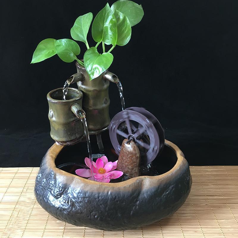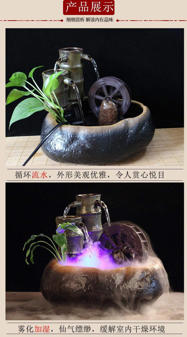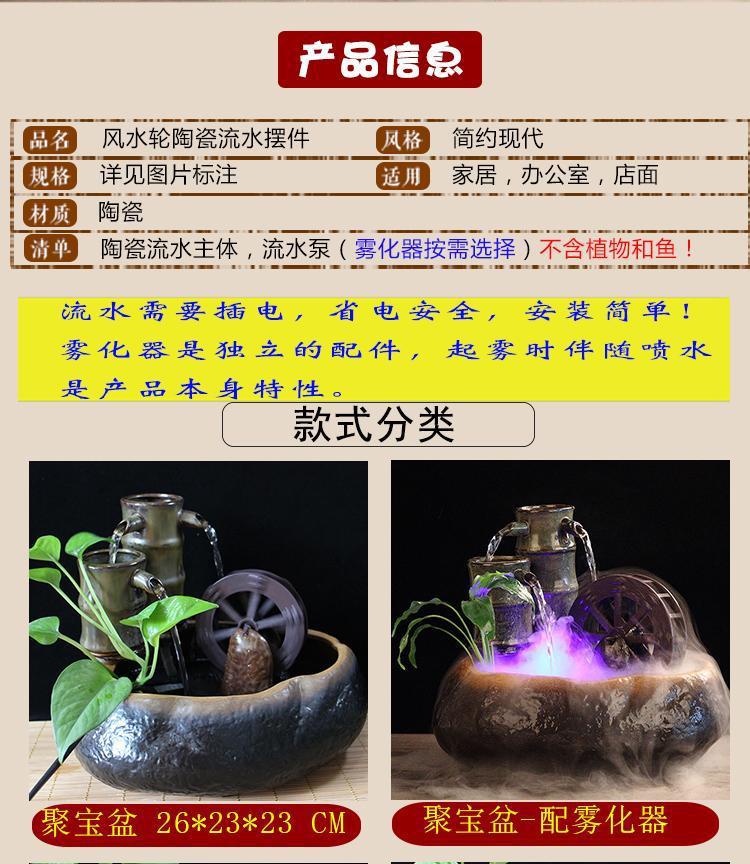 세라믹 풍수 바퀴 흐르는 물 재산을 만드는 장식품 순환 물 트럭 사무실 데스크탑 현관 실내 분수 풍수 모집 gekun스토어 가기