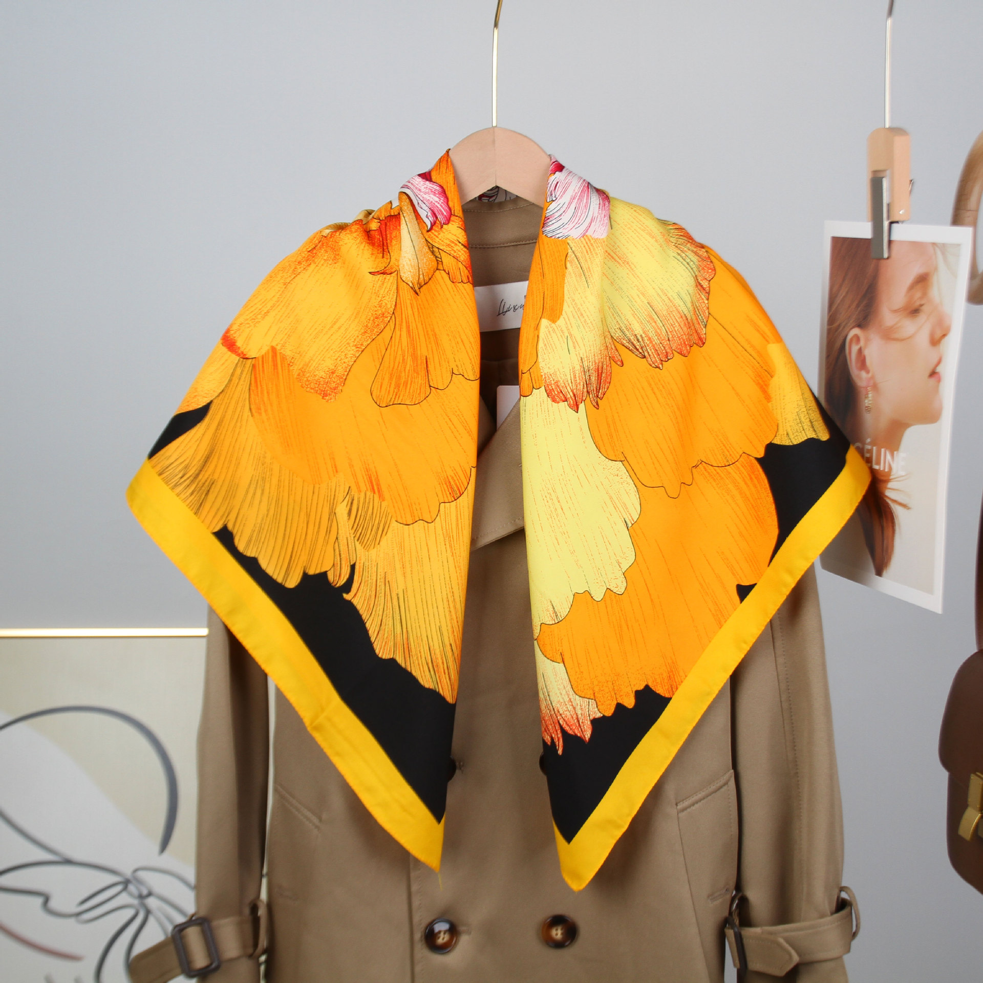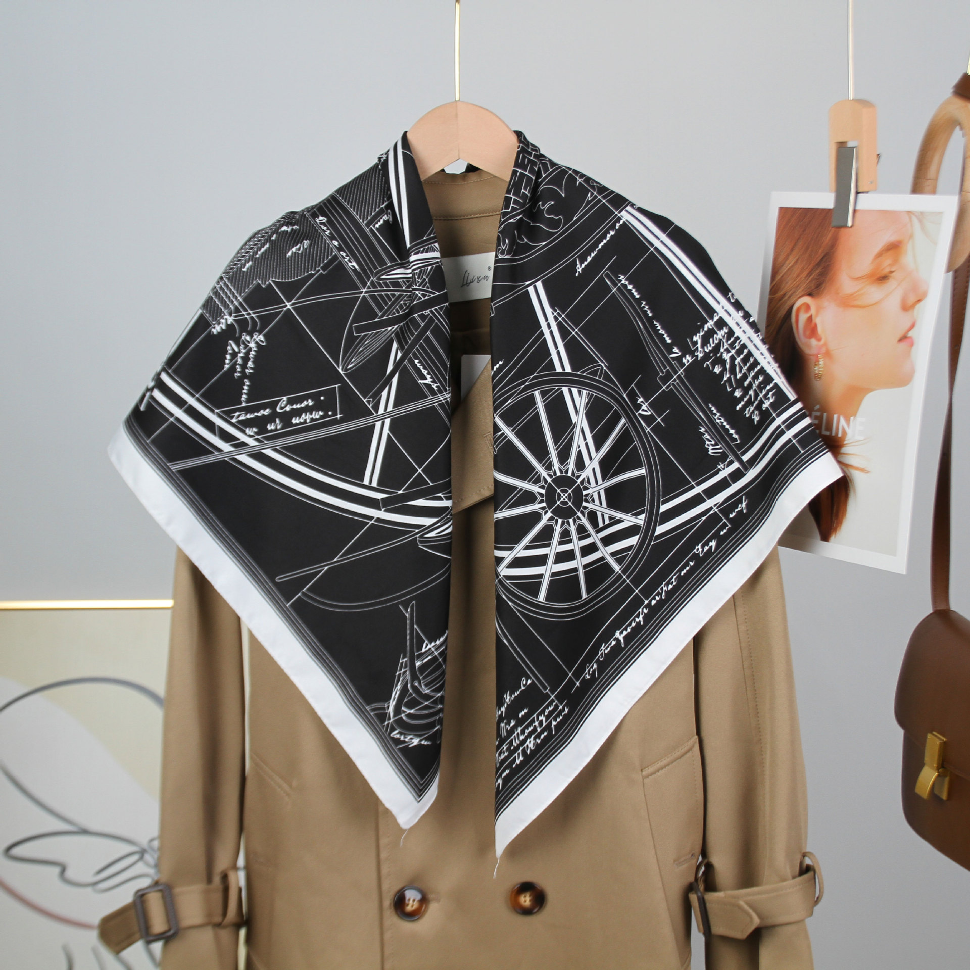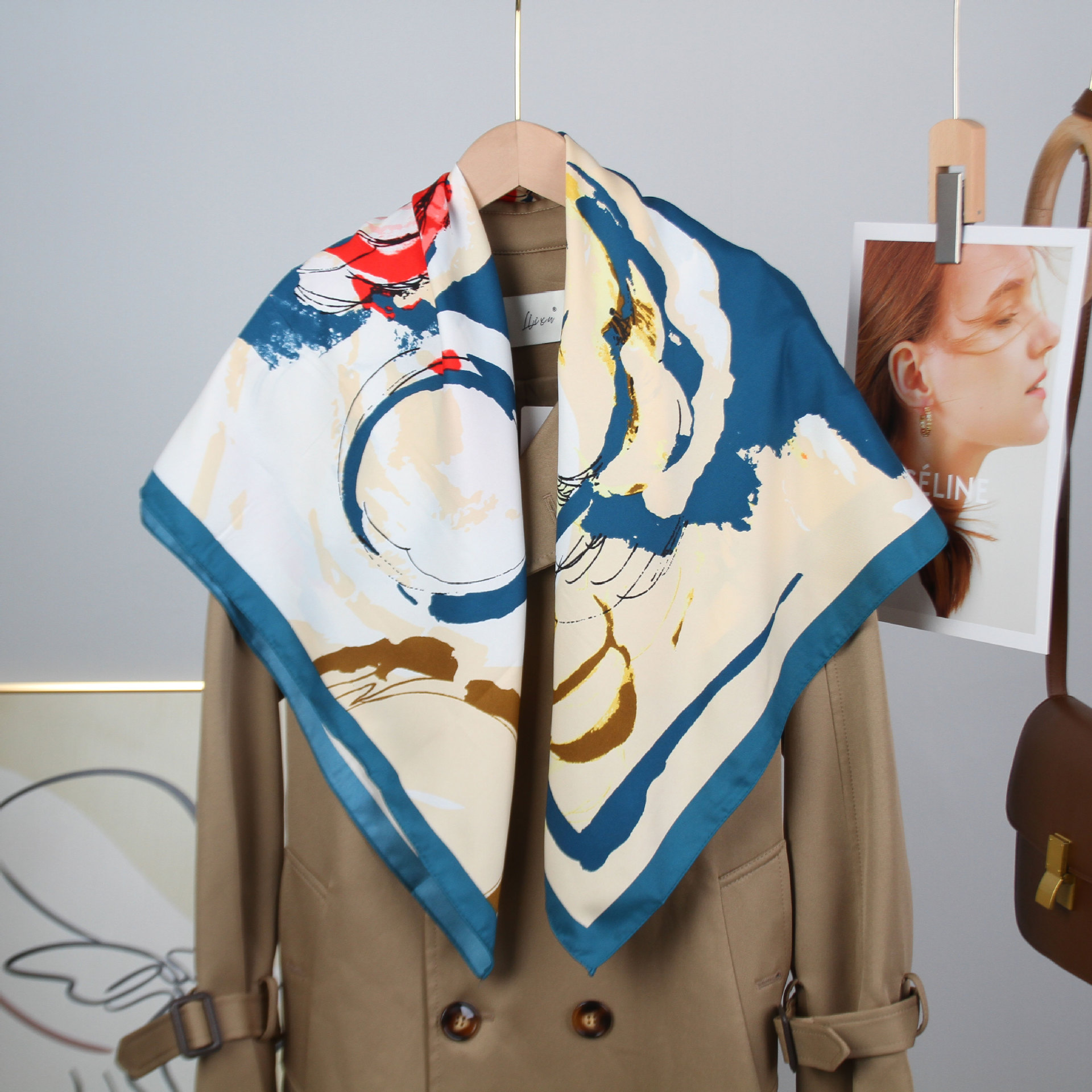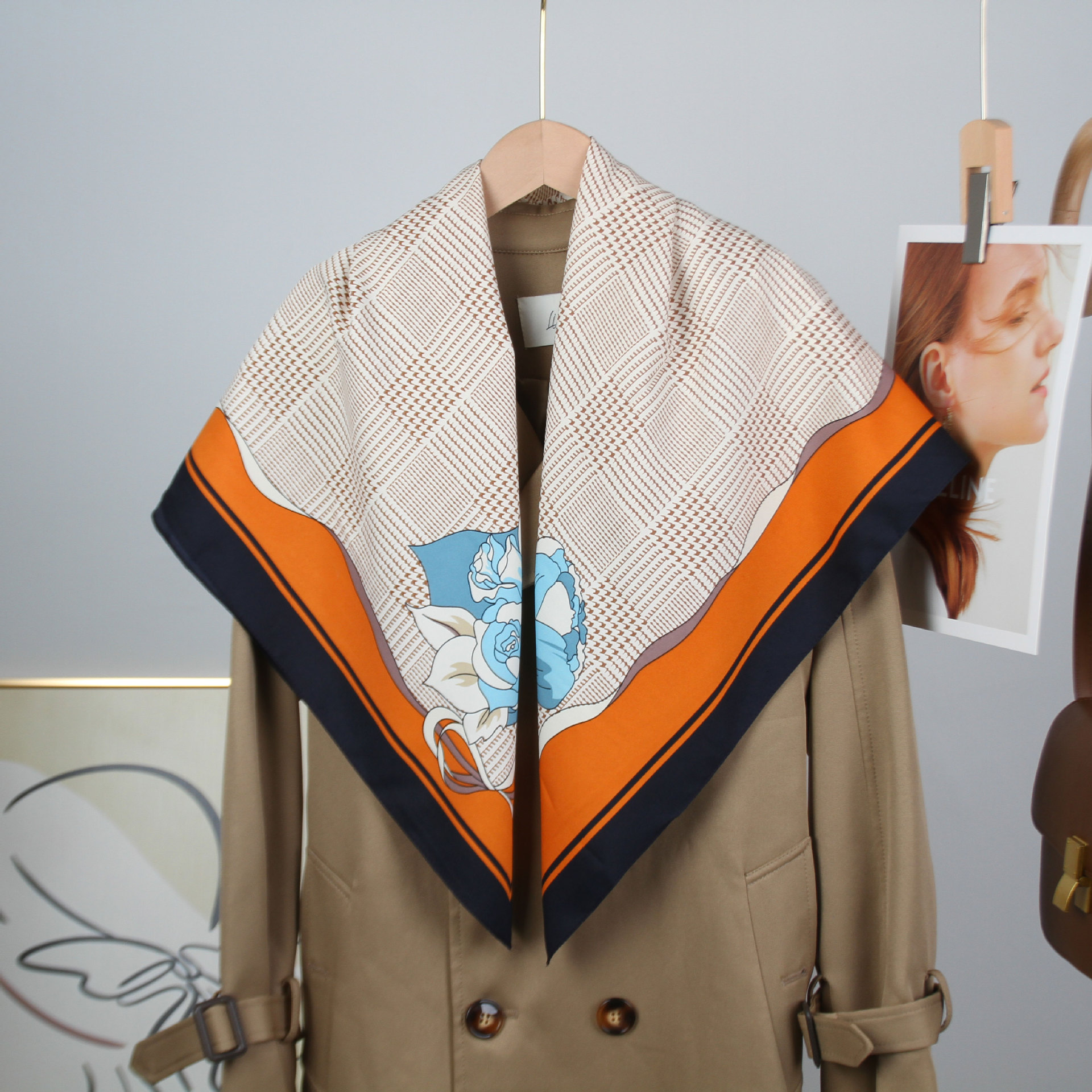 2024 신상 유럽풍 다용도 스카프, 패셔너블하고 우아한 90cm 대형 스카프, 고급스러운 트윌 실크 스카프 여성 숄스토어 가기
