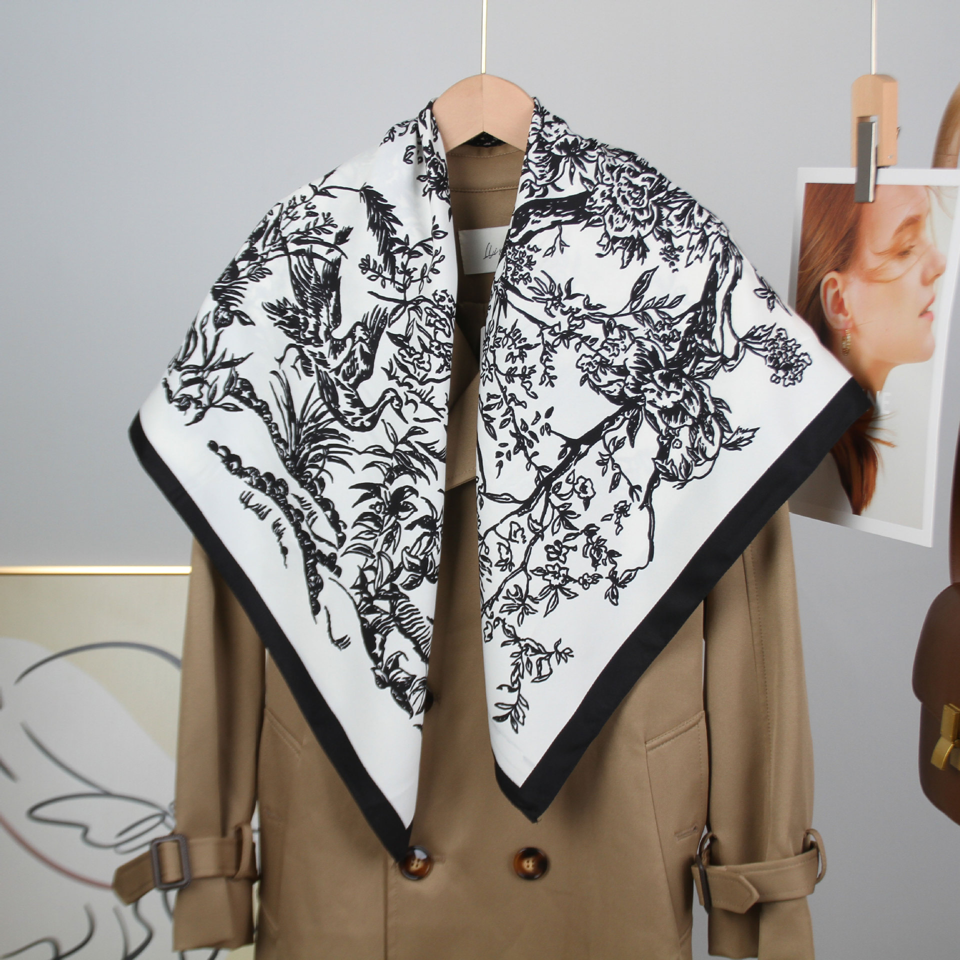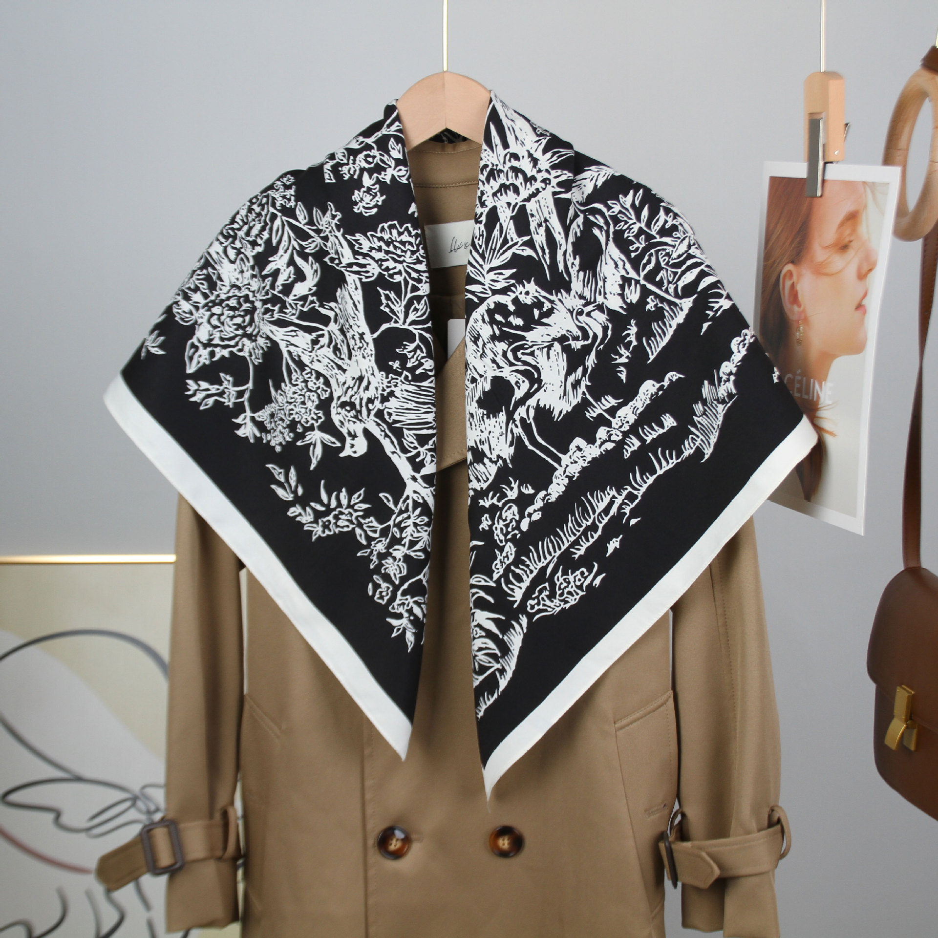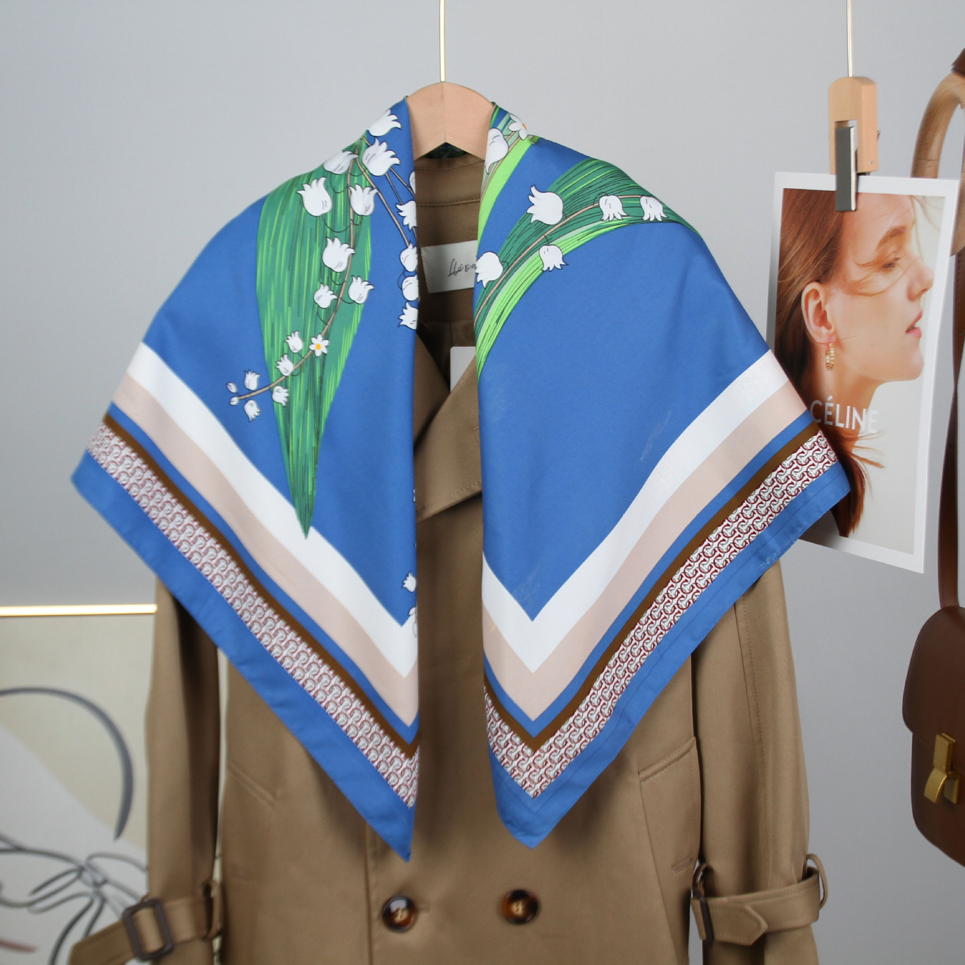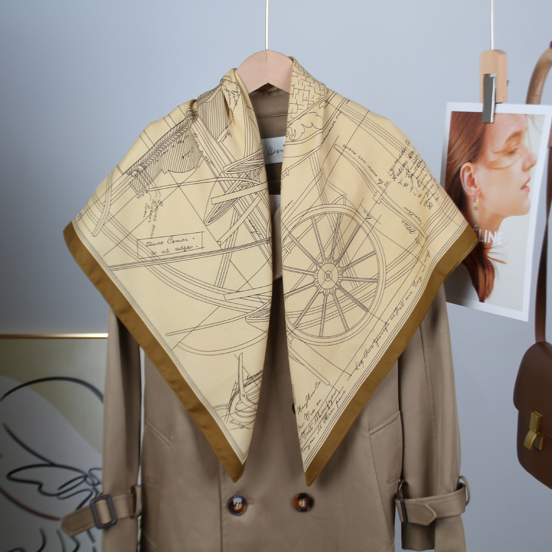 2024 신상 유럽풍 다용도 스카프, 패셔너블하고 우아한 90cm 대형 스카프, 고급스러운 트윌 실크 스카프 여성 숄스토어 가기