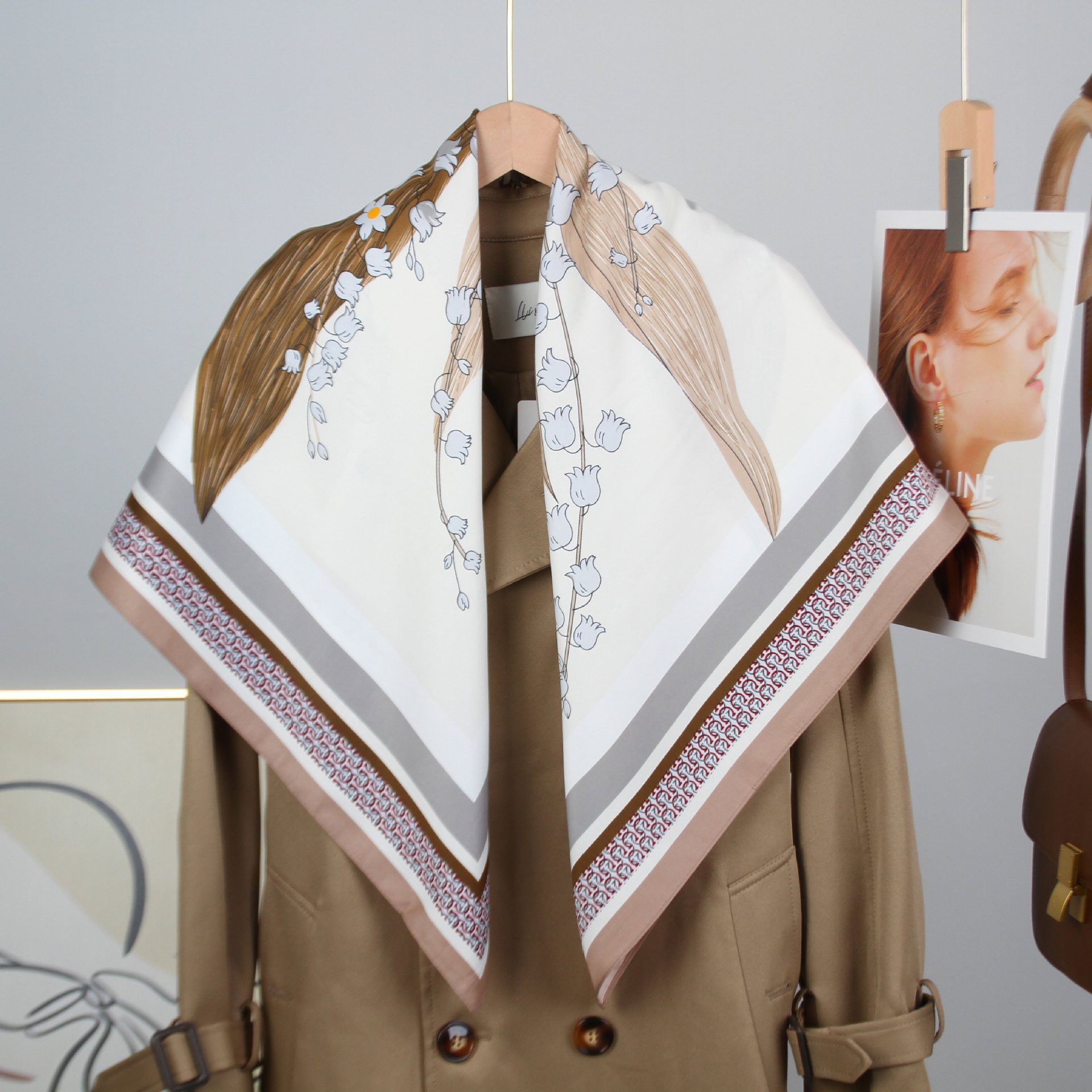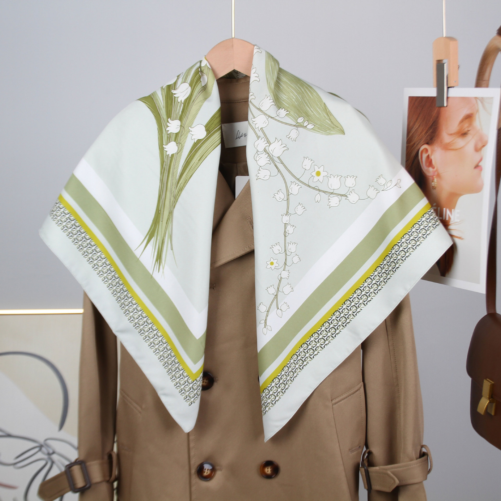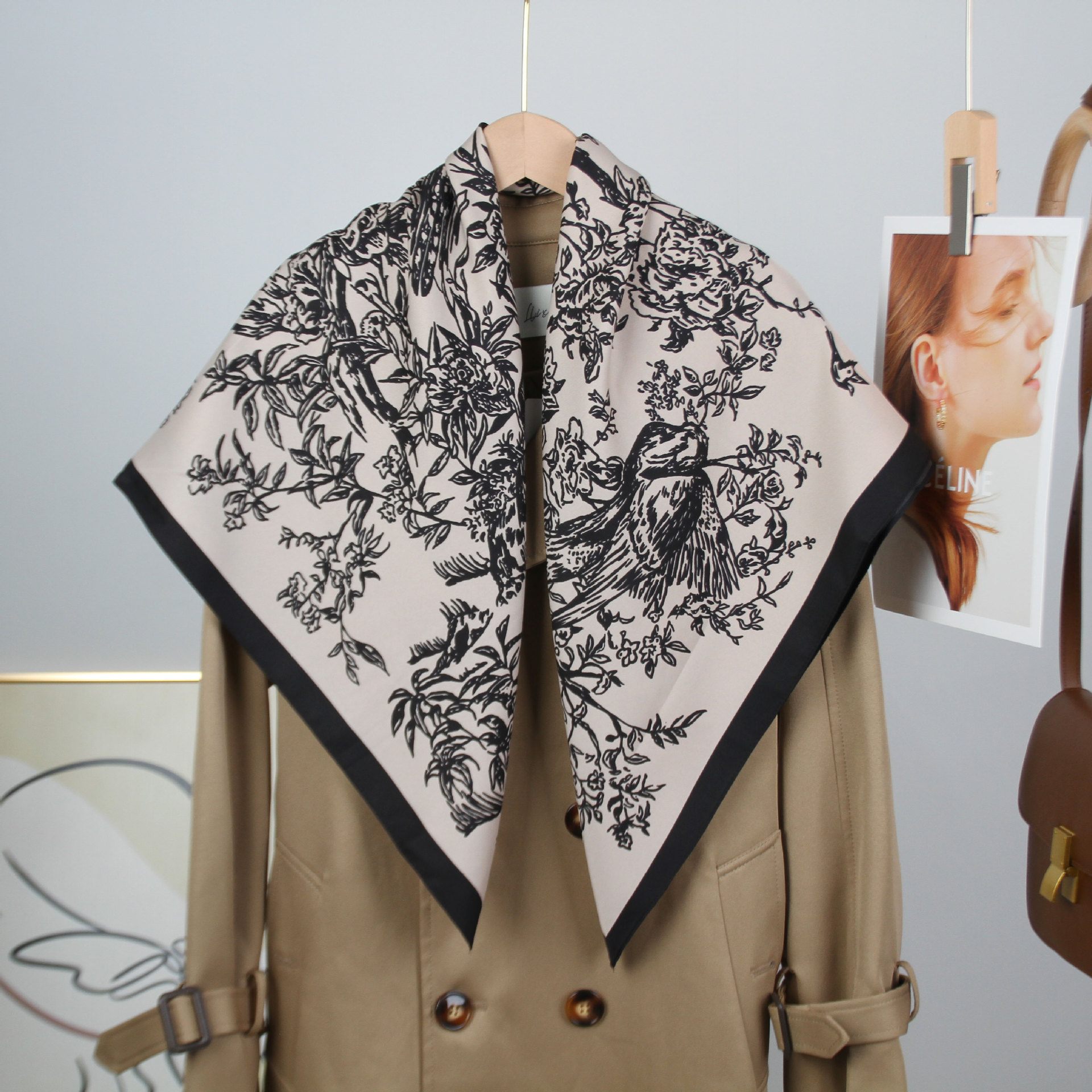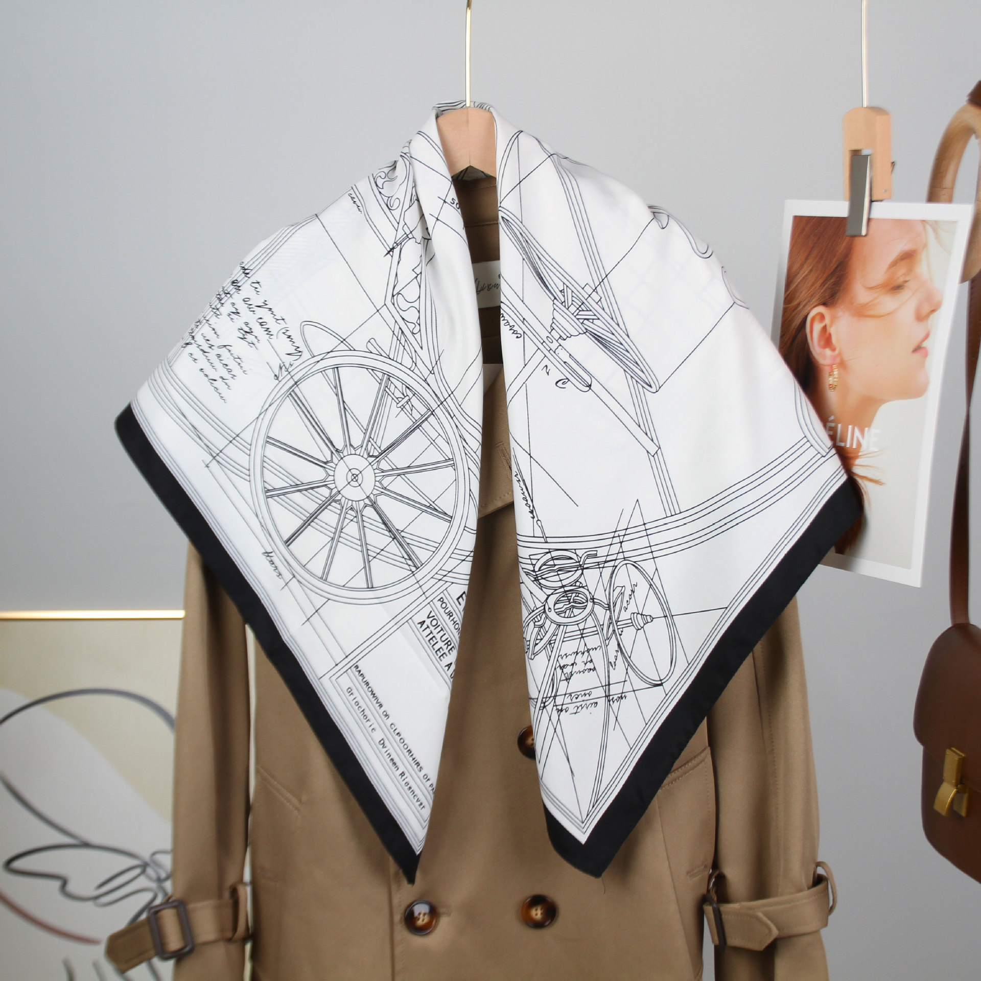 2024 신상 유럽풍 다용도 스카프, 패셔너블하고 우아한 90cm 대형 스카프, 고급스러운 트윌 실크 스카프 여성 숄스토어 가기