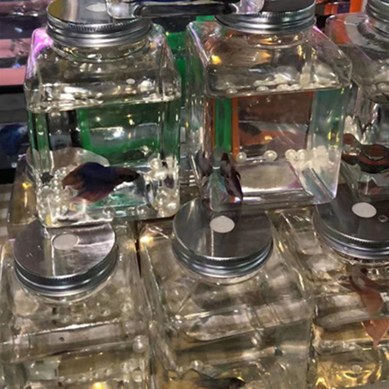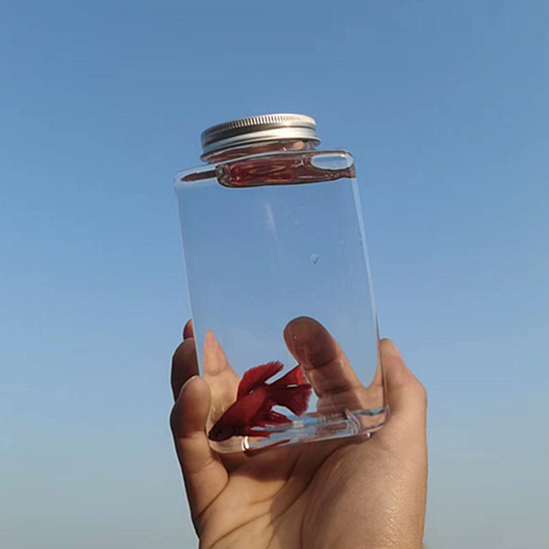 복숭아 컵 플라스틱 광장 물고기 탱크 500 ml 투명 미니 마이크로 풍경 물고기 탱크 작은 물고기 번식 비비안