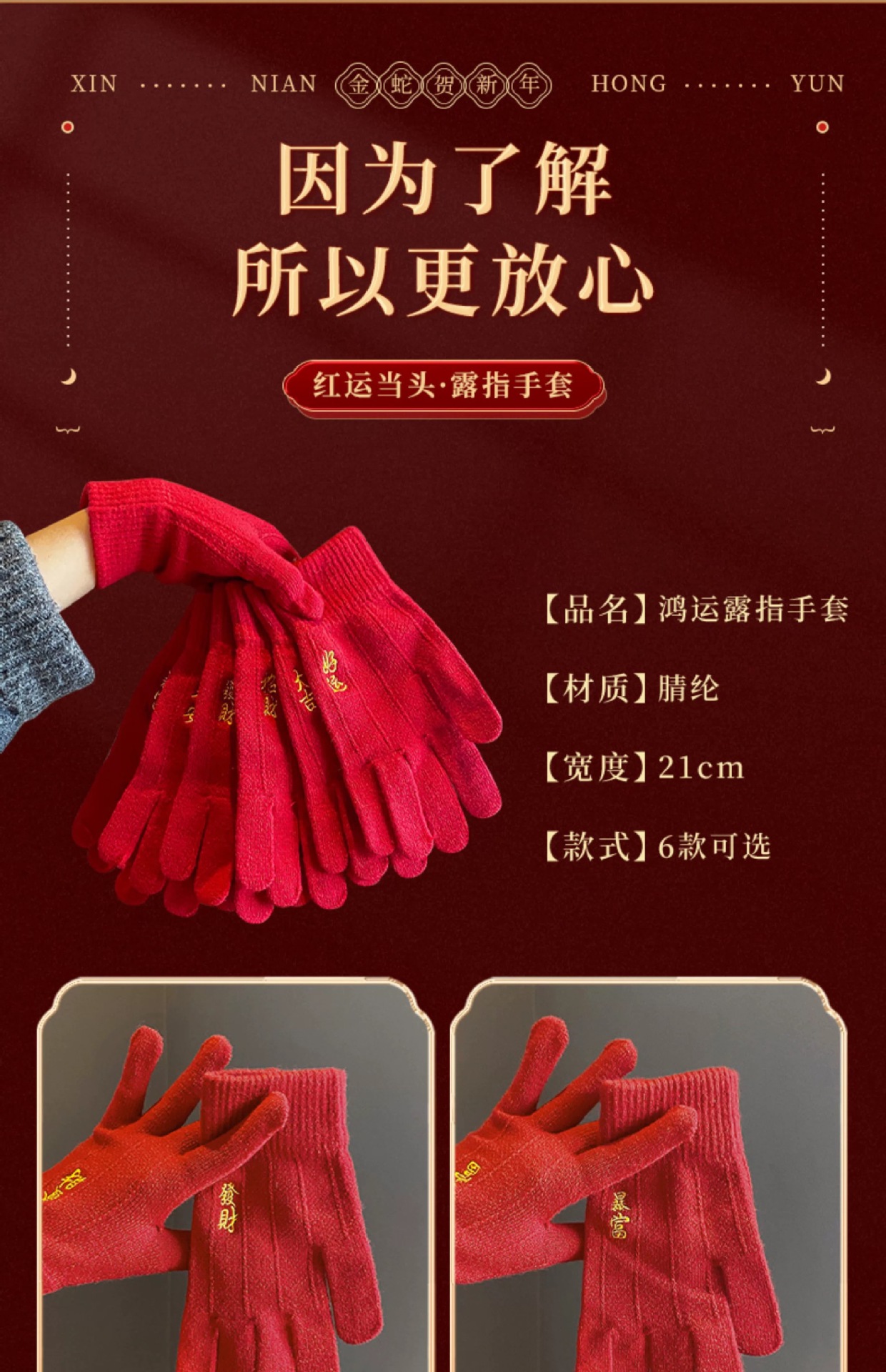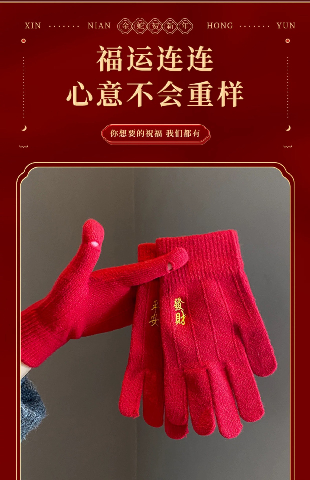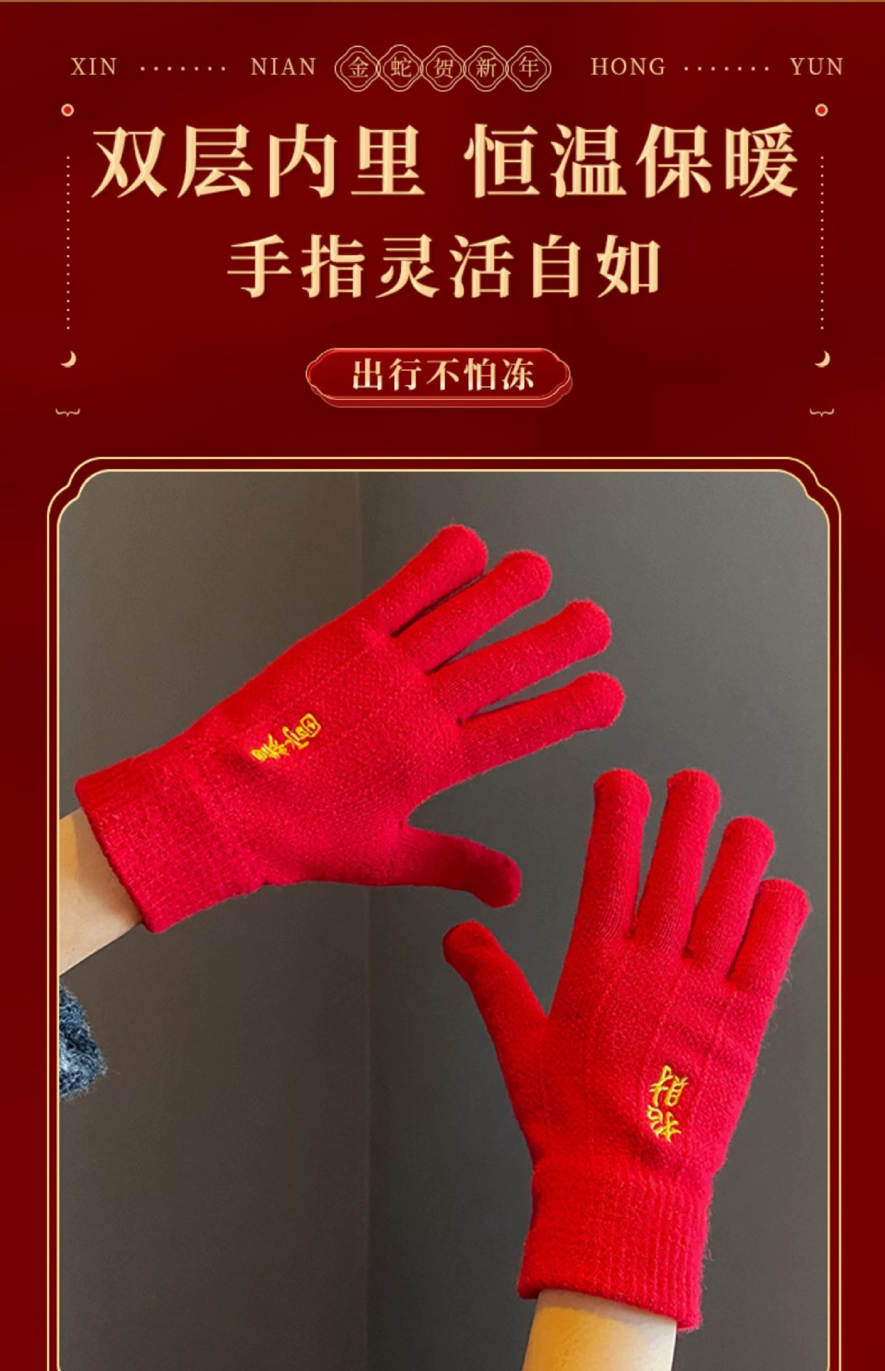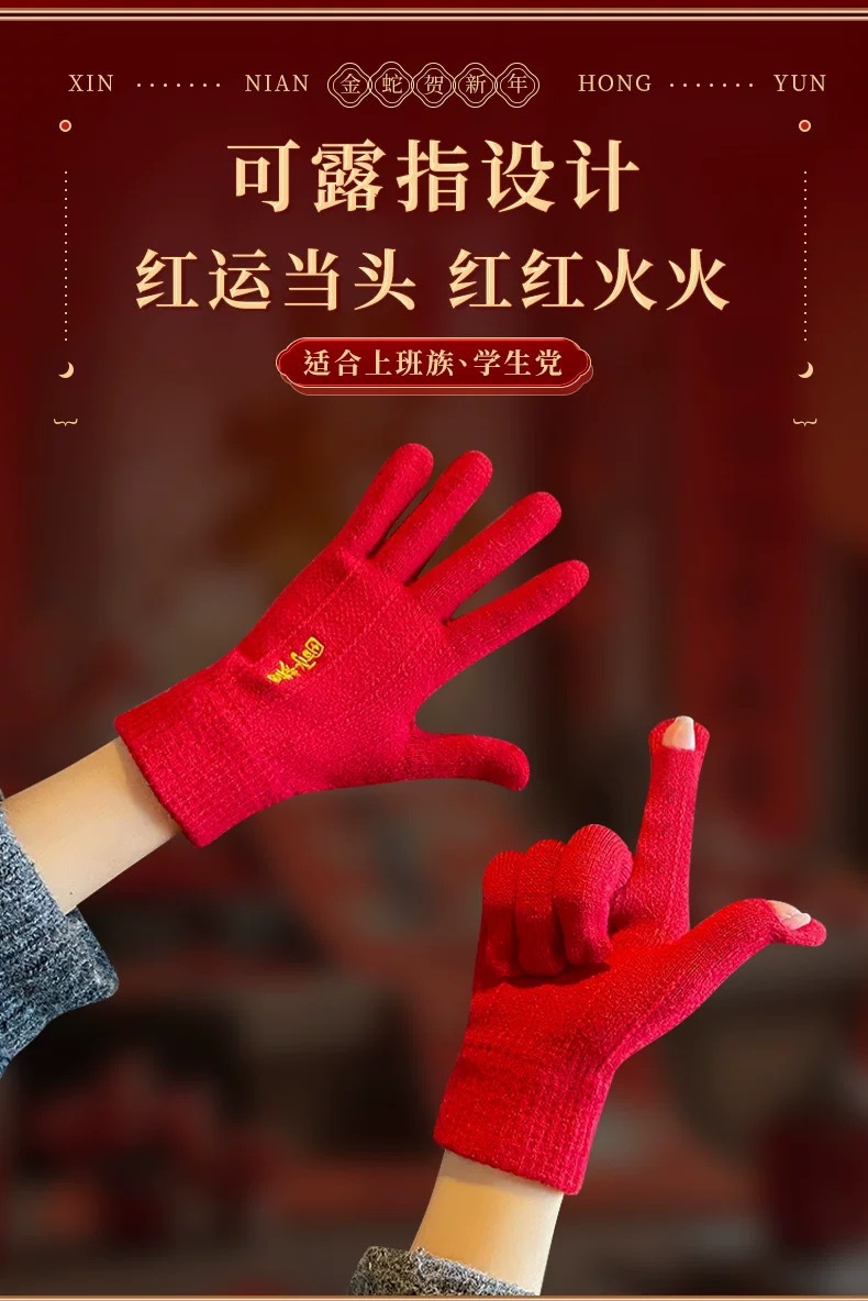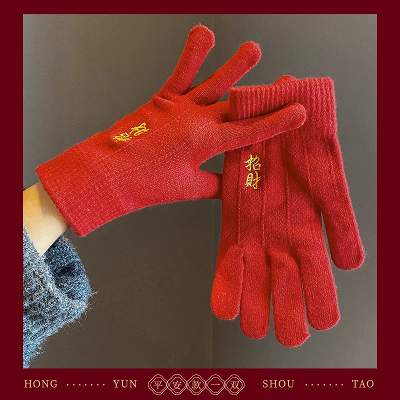 새해 크리스마스 레드 자수 니트 울 장갑 여성의 겨울 손가락 따뜻한 두꺼운 리치 터치 스크린 장갑