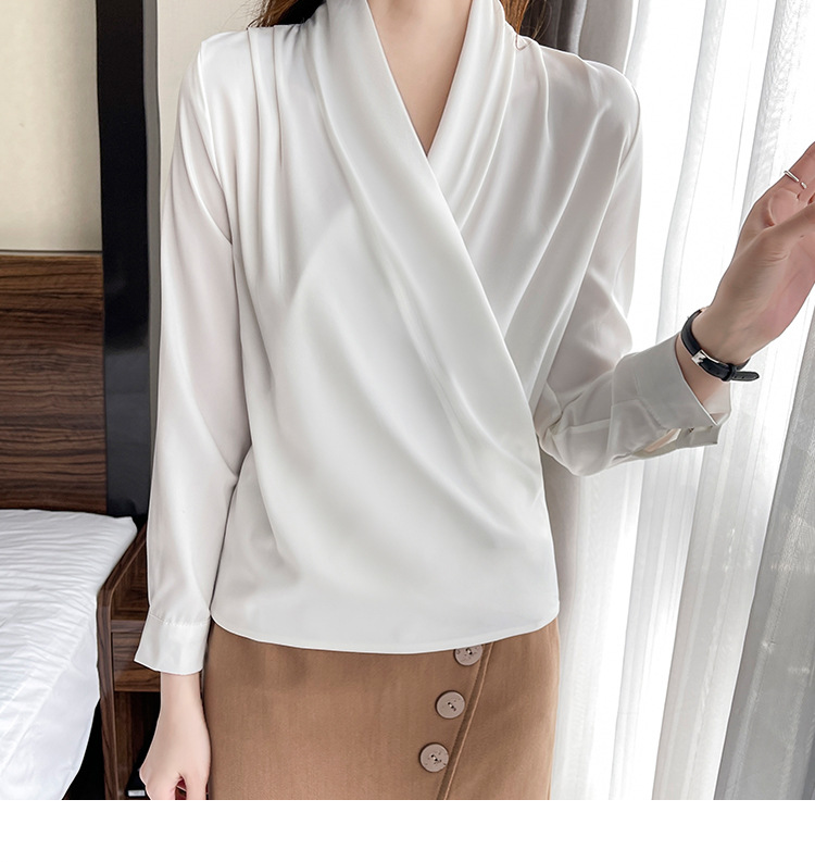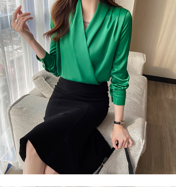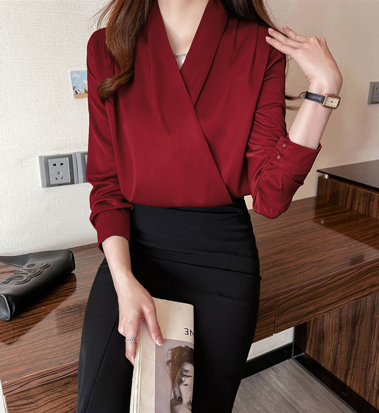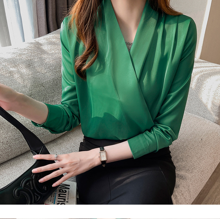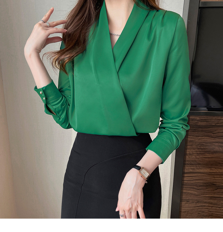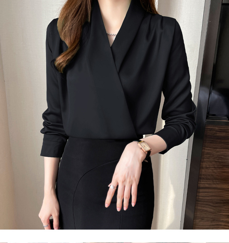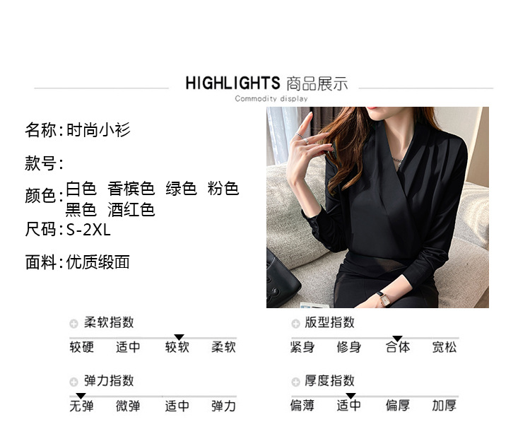 새틴 긴팔 셔츠 여자의 2024 봄 가을 새로운 디자인 센스 틈새 프로 V넥 셔츠 올 매치 쉬폰 셔츠스토어 가기