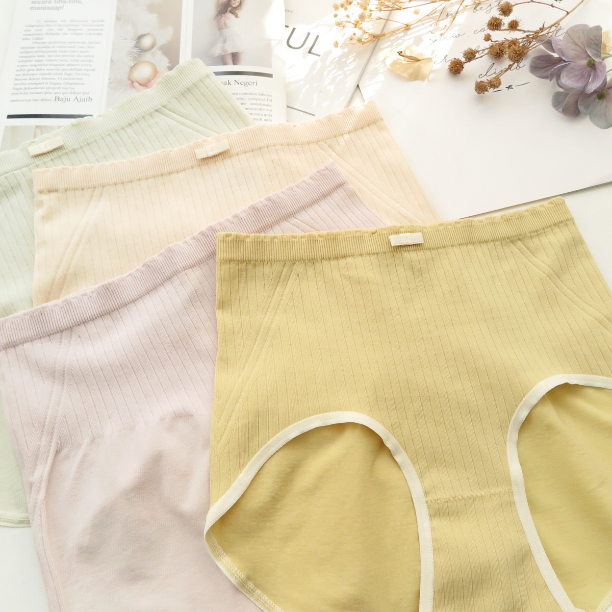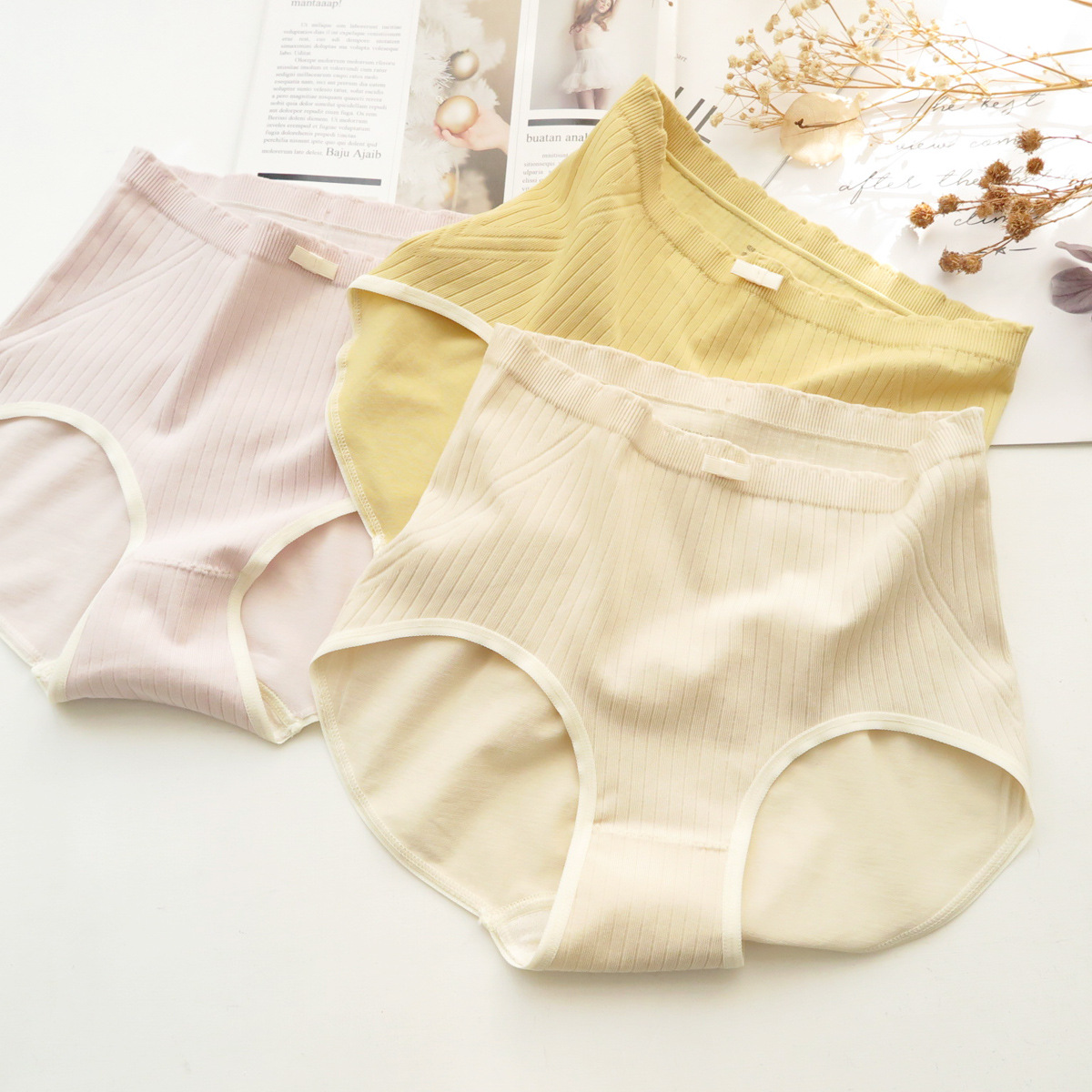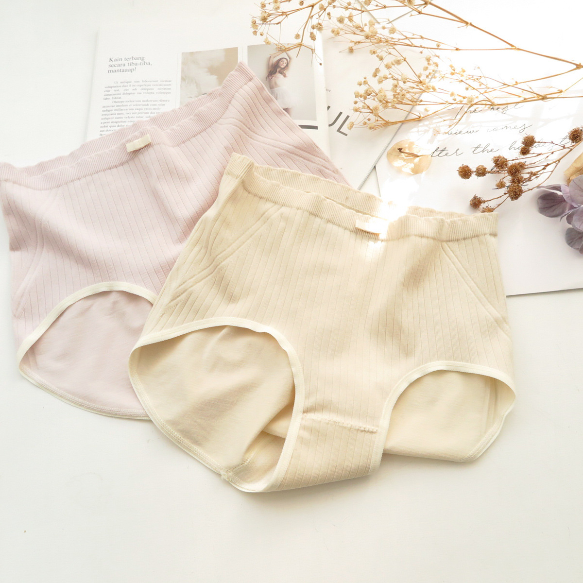 가을과 겨울 스타일 소녀의 단색 간단한 수직 질감 높은 허리 브리프 여성의 활 편안한 통기성 속옷스토어 가기