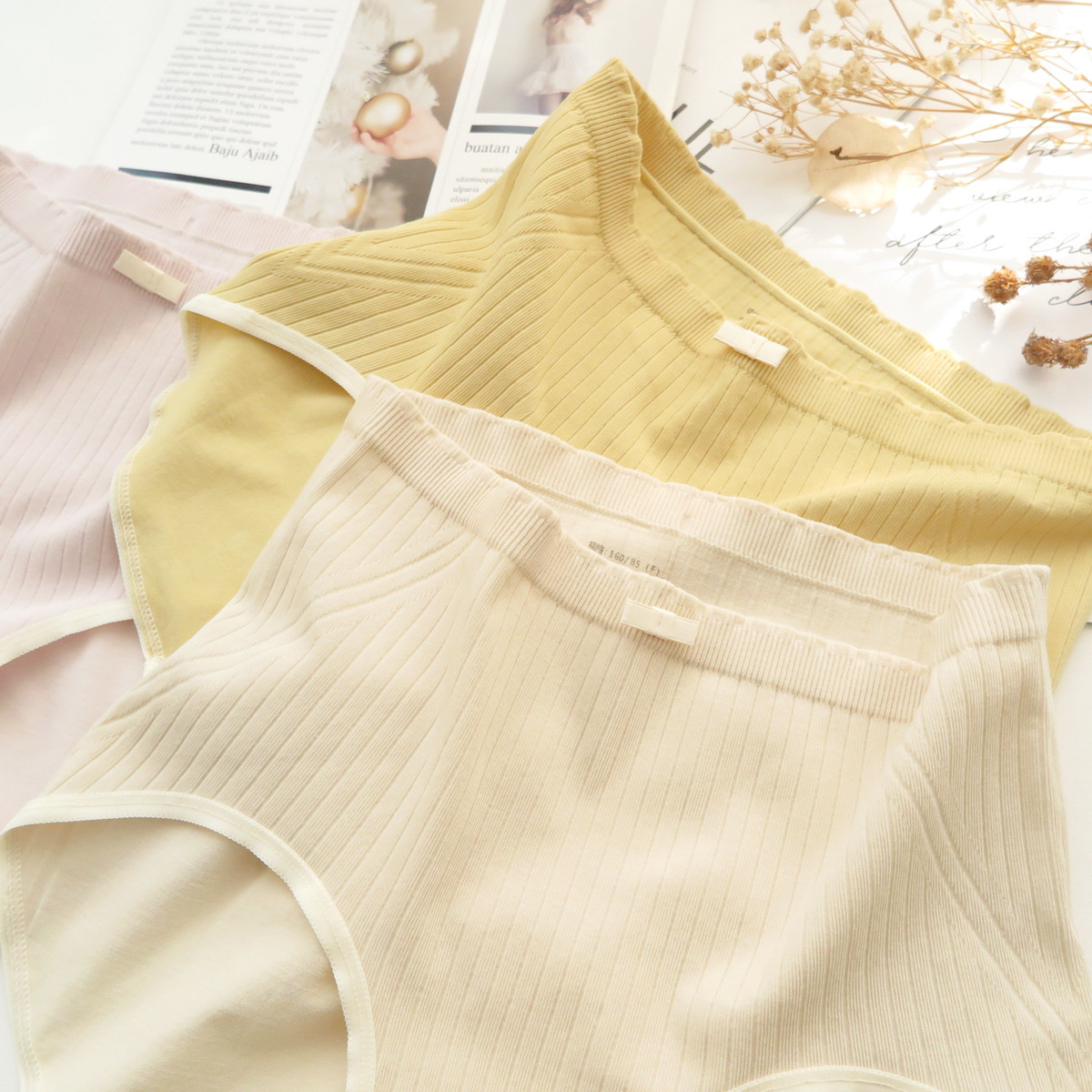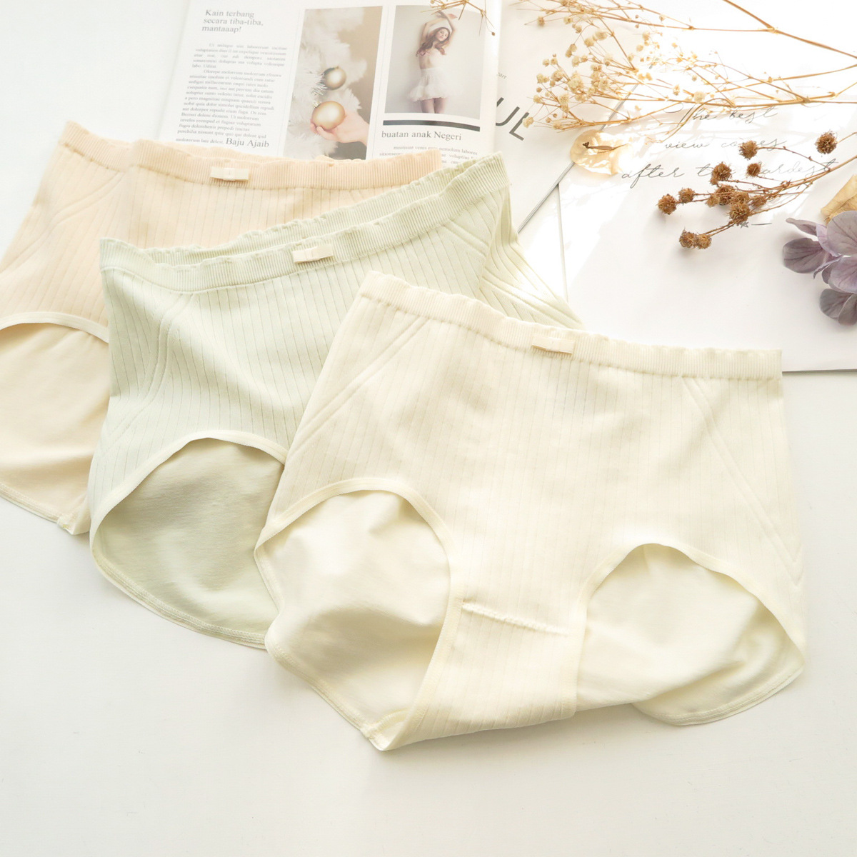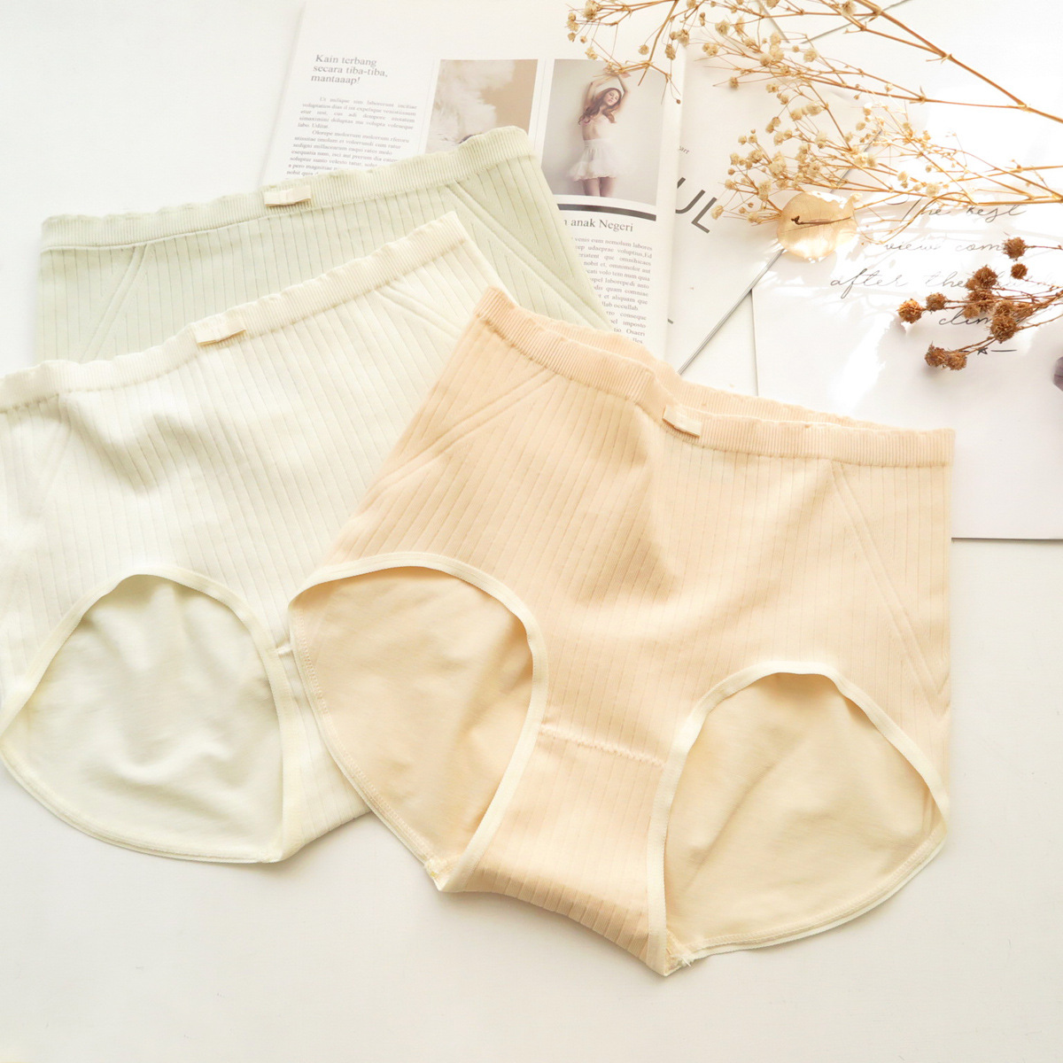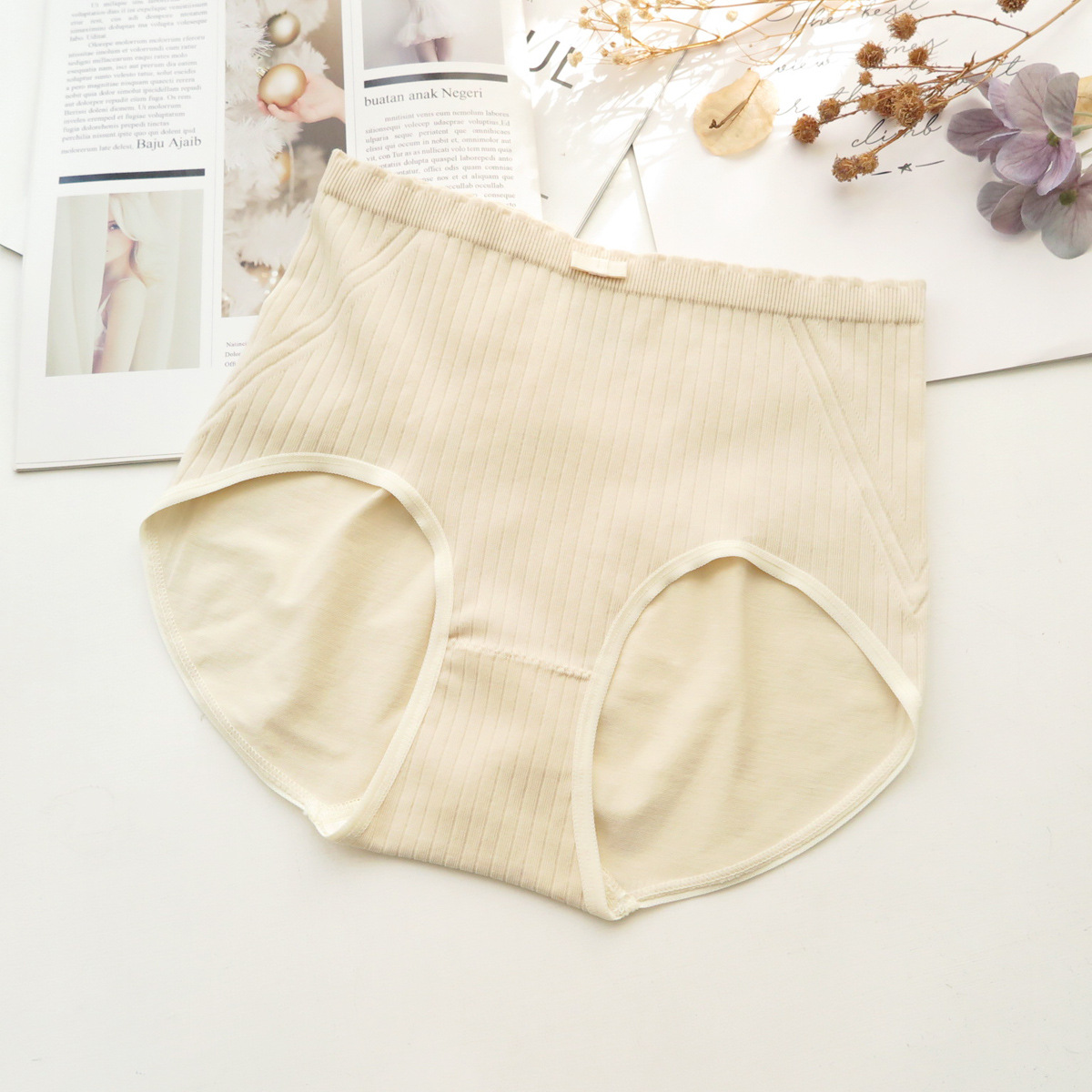 가을과 겨울 스타일 소녀의 단색 간단한 수직 질감 높은 허리 브리프 여성의 활 편안한 통기성 속옷스토어 가기