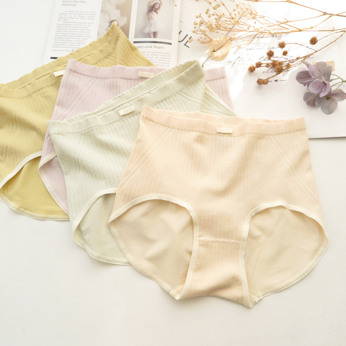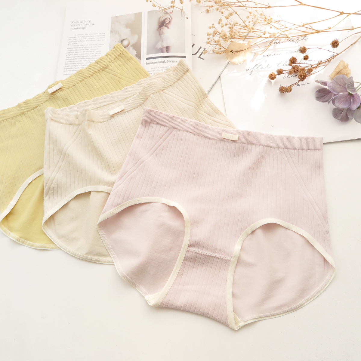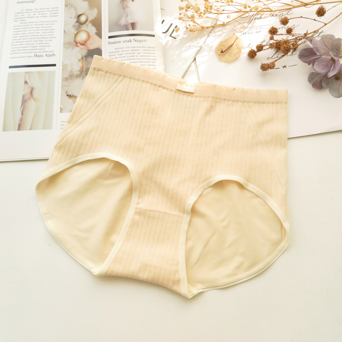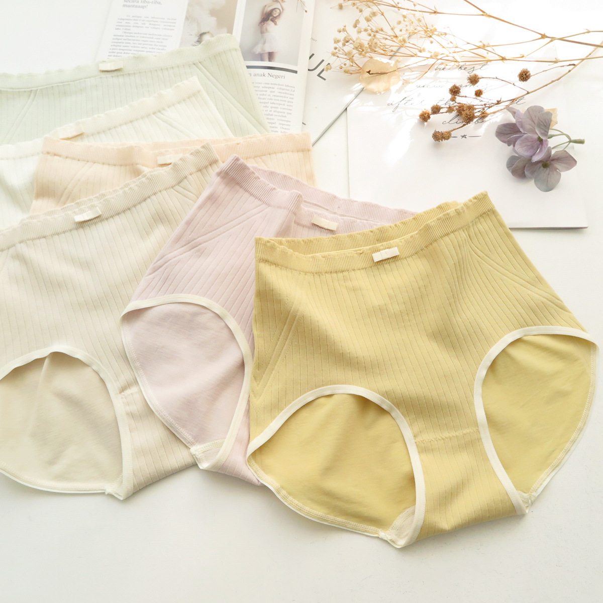 가을과 겨울 스타일 소녀의 단색 간단한 수직 질감 높은 허리 브리프 여성의 활 편안한 통기성 속옷