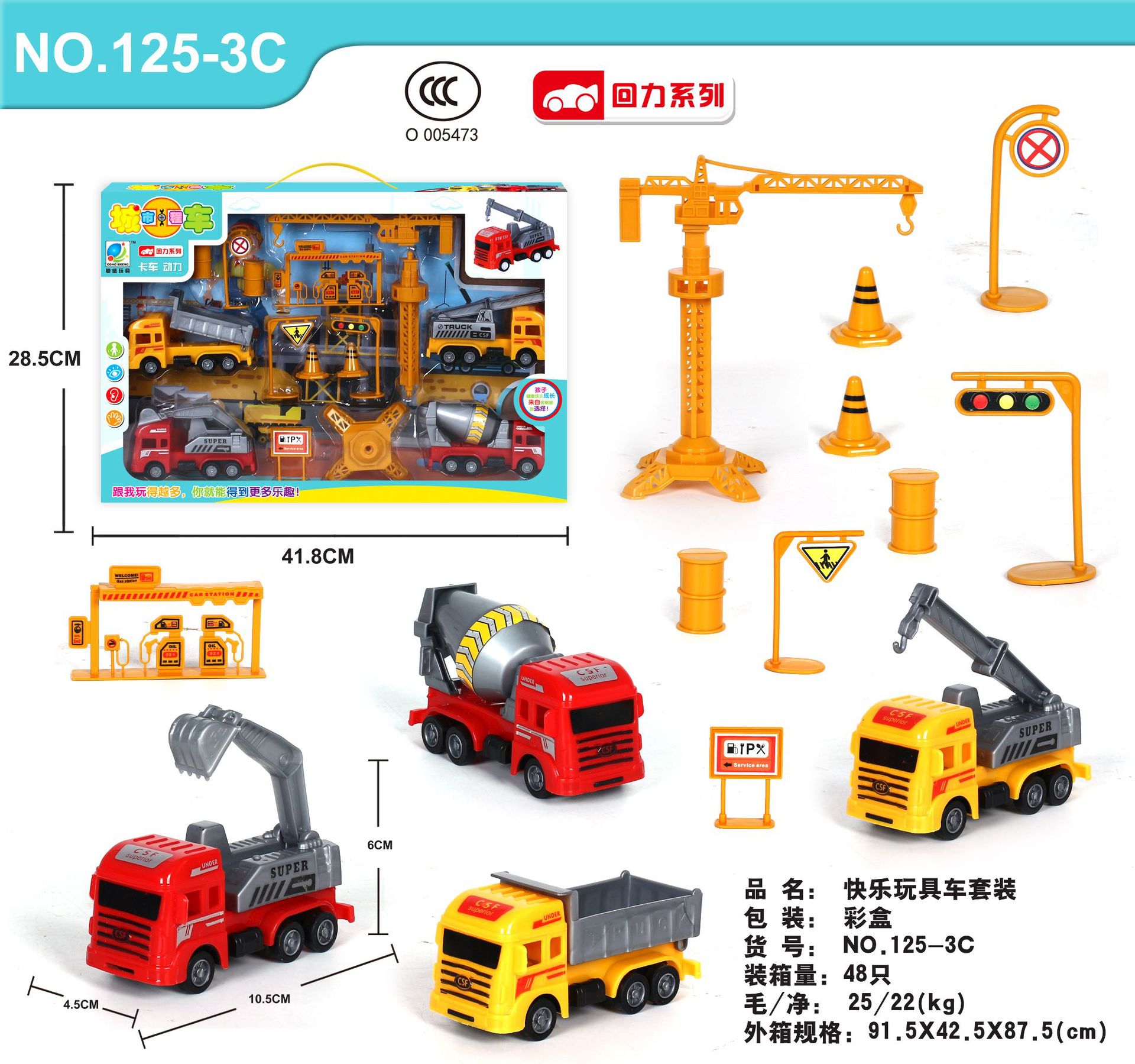 • 125C 풀백 엔지니어링 차량 세트 - 4대 + 건설 현장 장비(대형 컬러 박스)