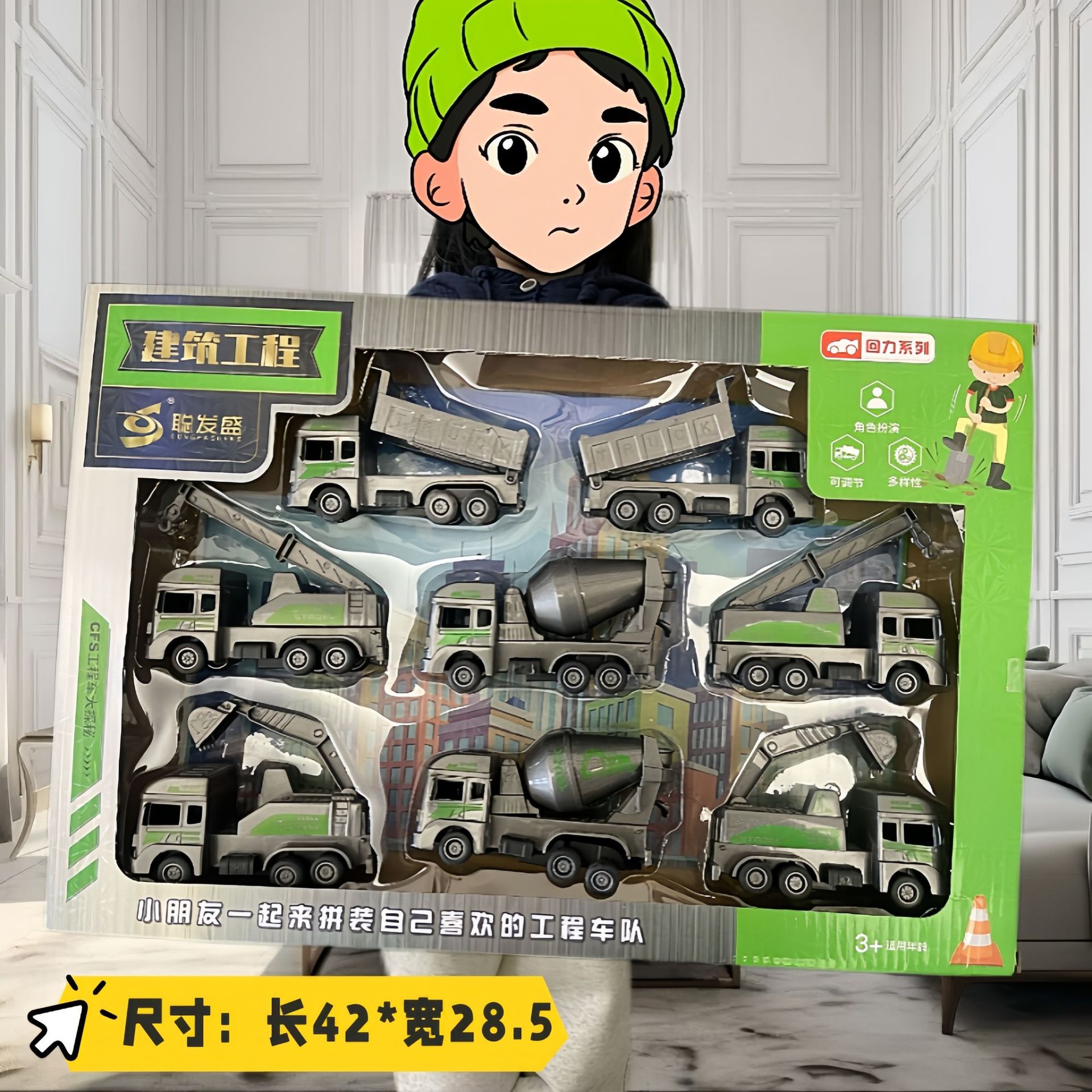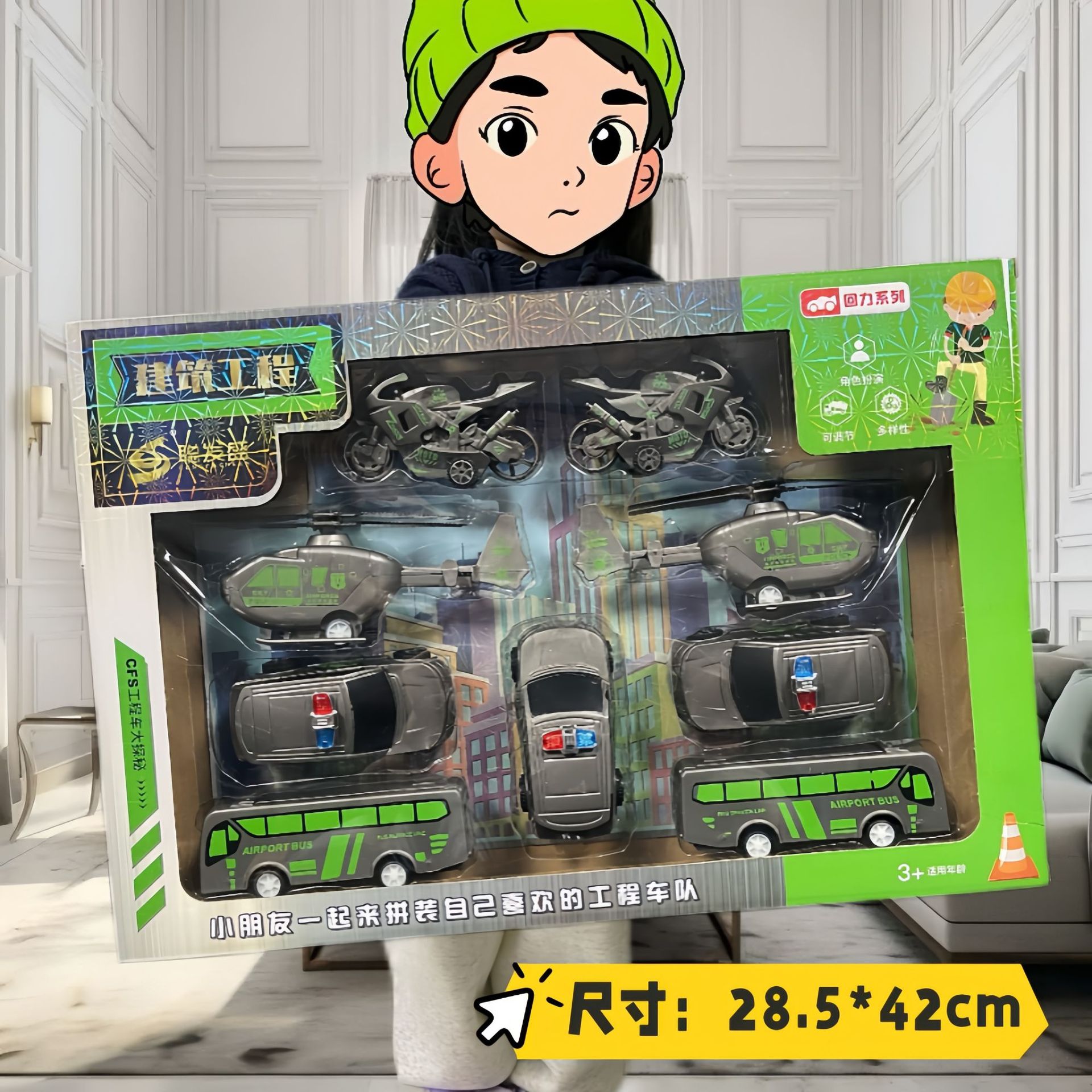 • 125C 풀백 엔지니어링 차량 세트-8 차량(대형 컬러 박스)