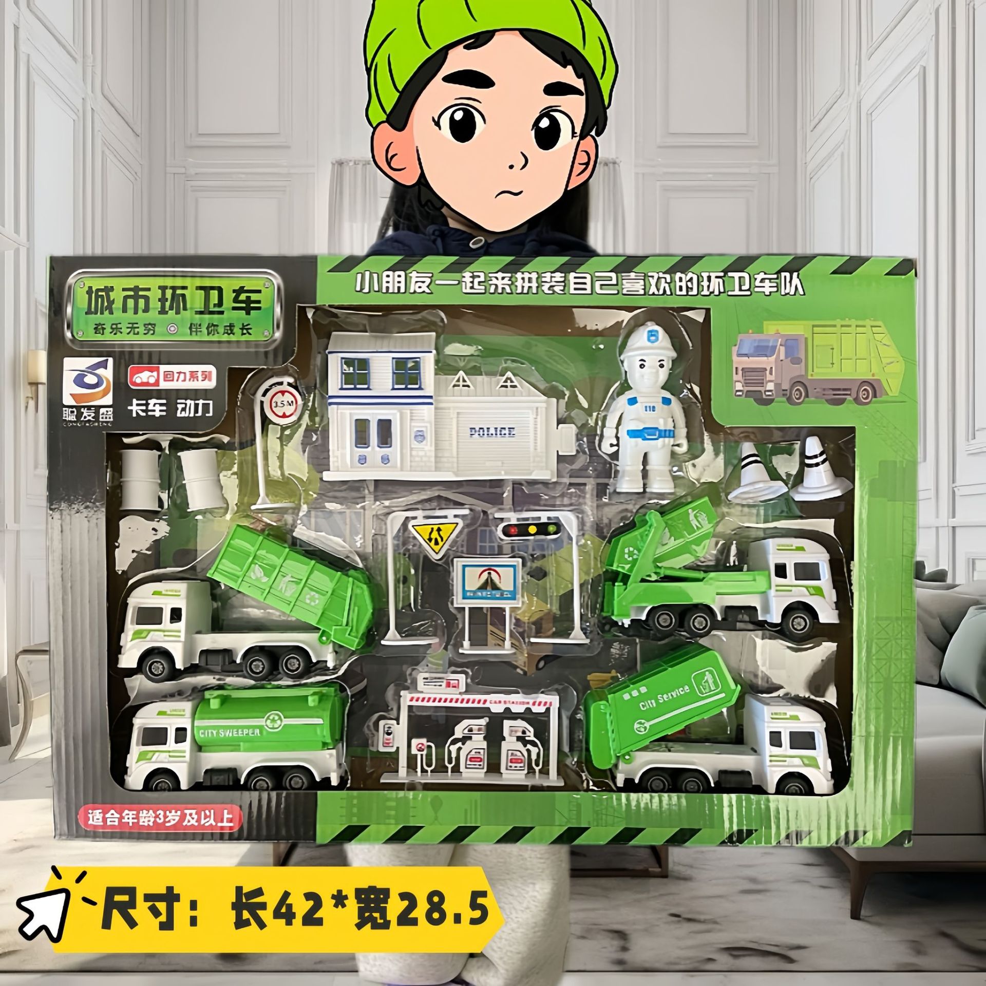 • 125-27 위생 트럭 세트-4대 + 쓰레기 스테이션(대형 색상 상자)