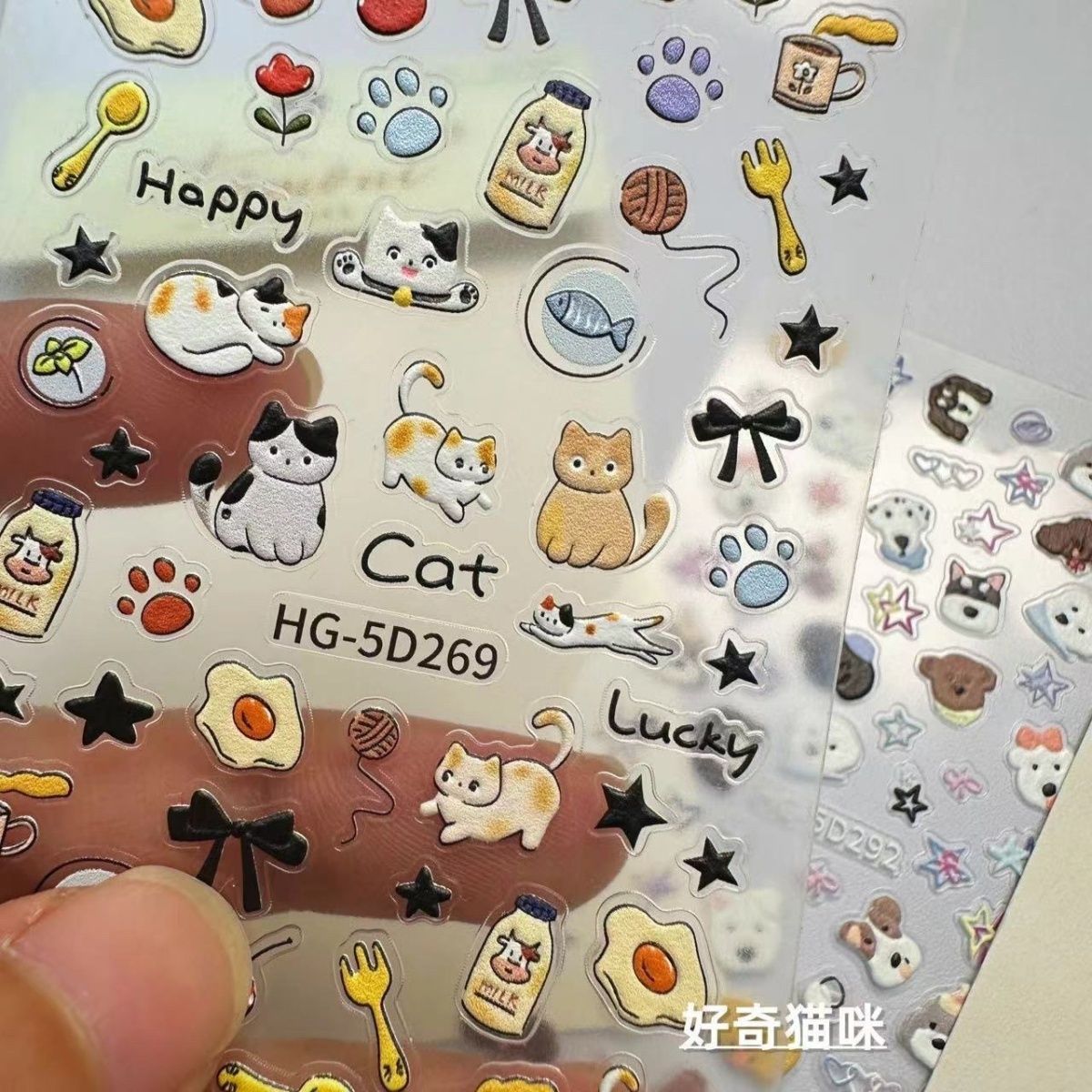 양각 입체 네일 아트 스티커 인 사랑스러운 귀여운 강아지 귀여운 고양이 패턴 네일 diy 일본 만화 3d스토어 가기