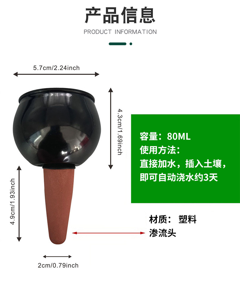 게으른 사람들을위한 가정용 자동 급수 장치 80ML 검은색 볼 컵 꽃 급수 장치 작은 다육 식물 물방울 관개 시스템스토어 가기