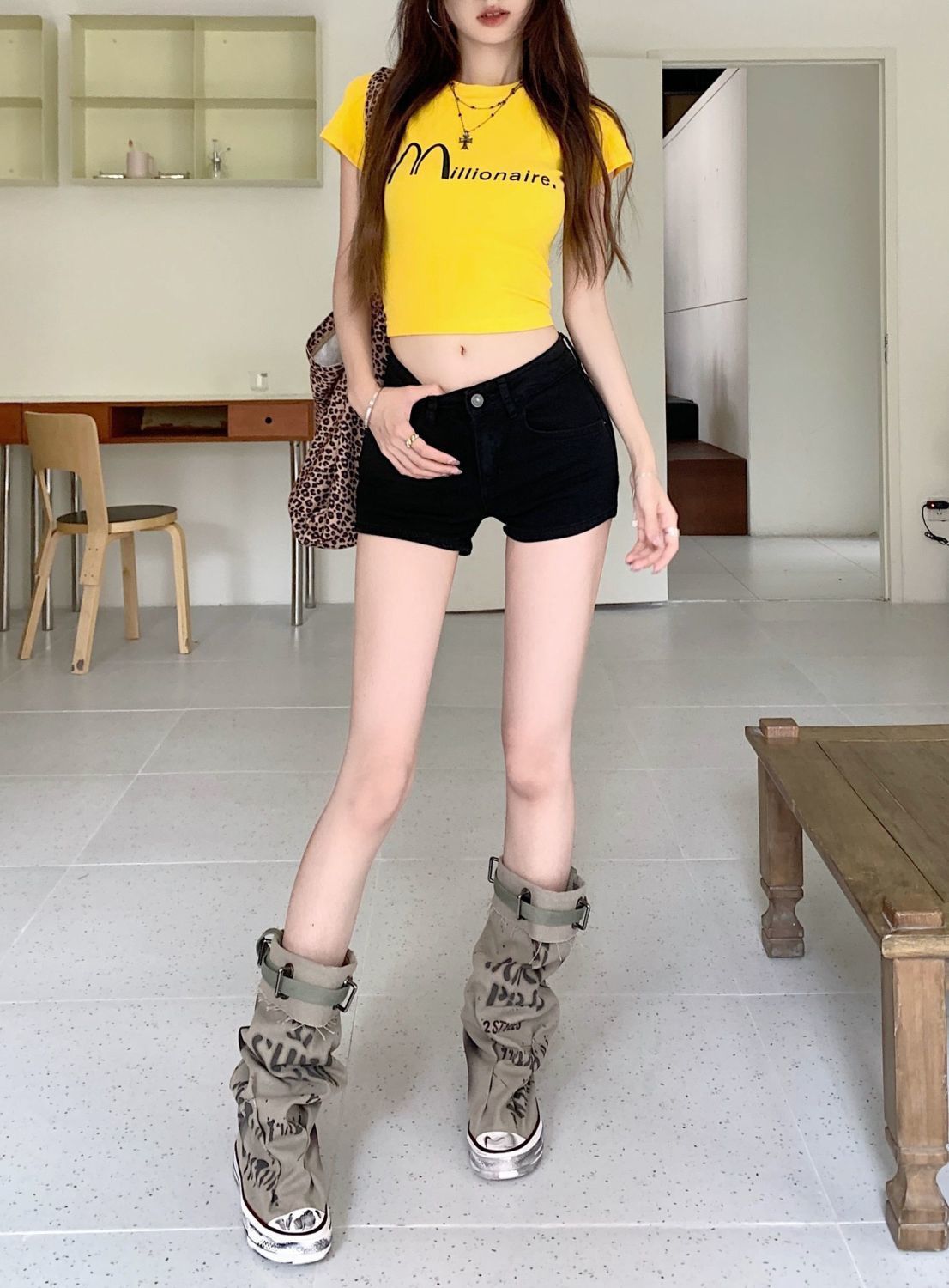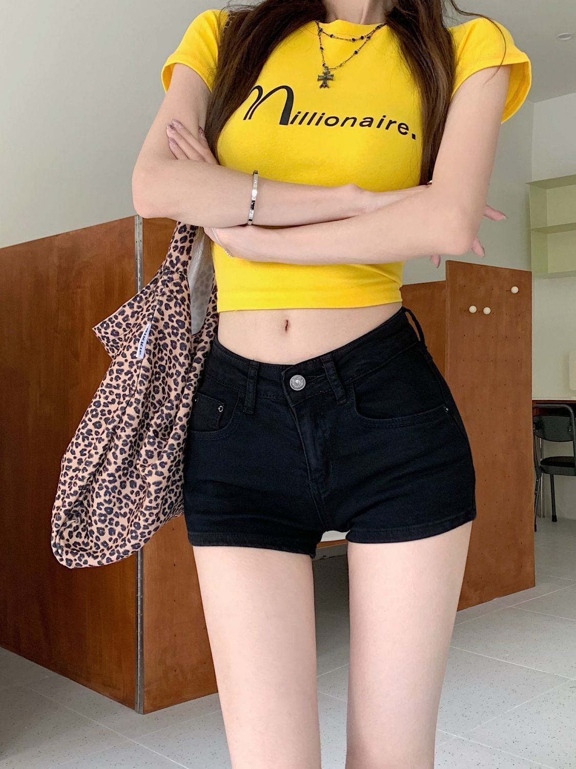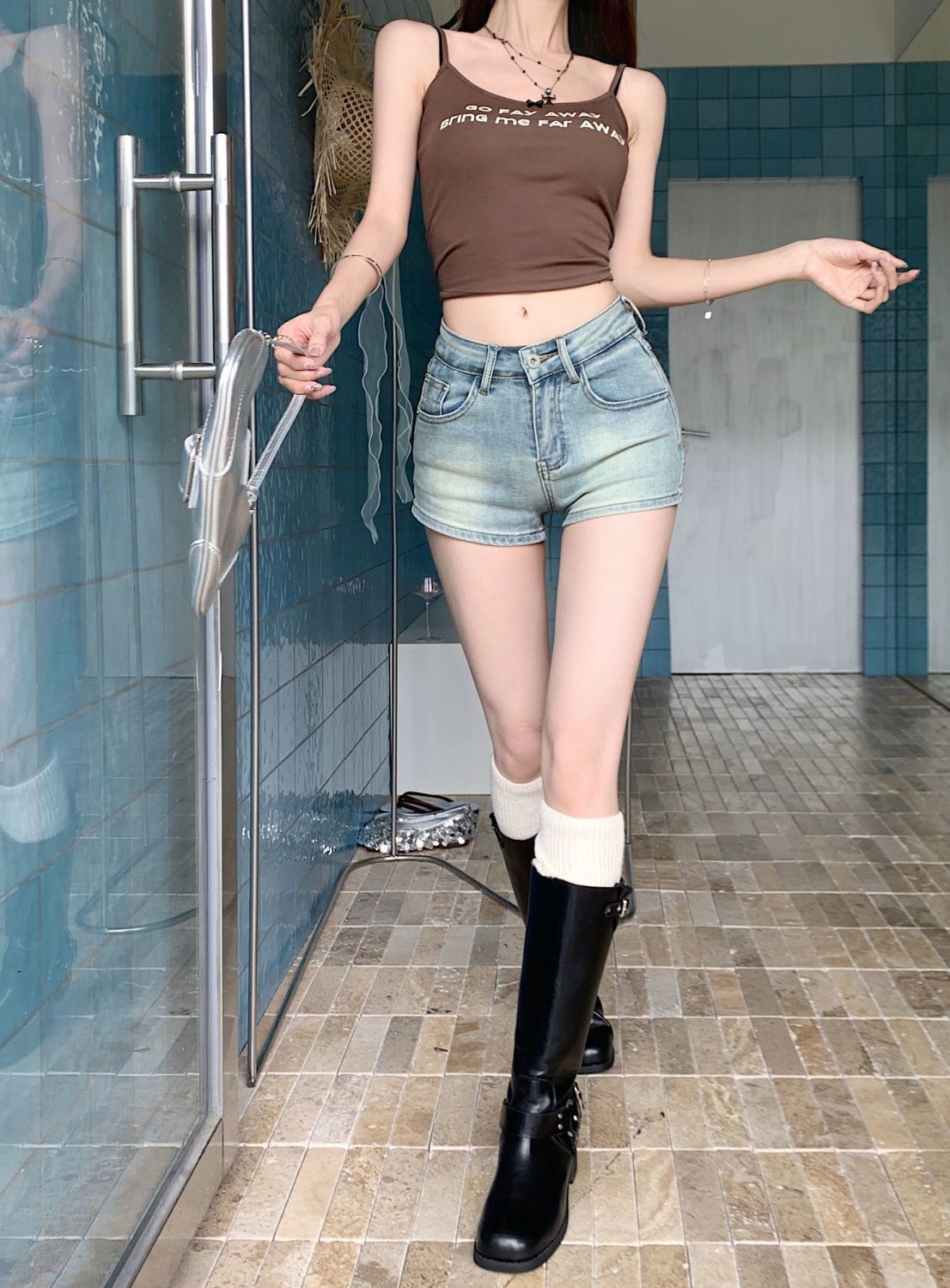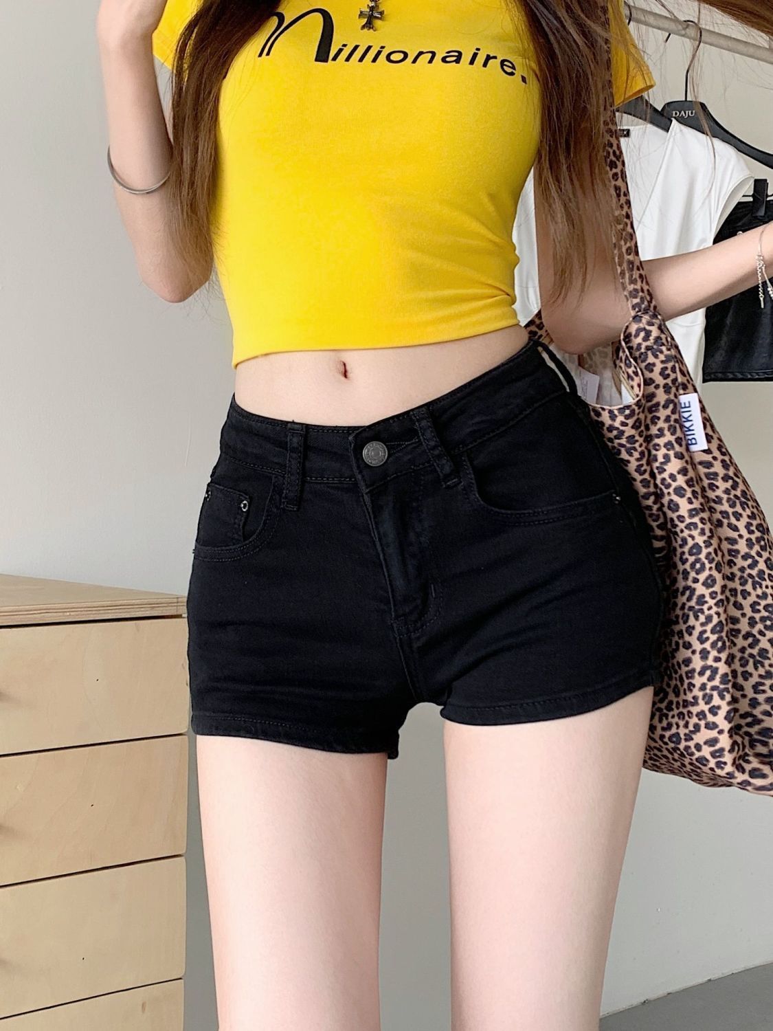 여성을위한 미국의 뜨거운 소녀 씻어 밝은 색상 데님 반바지 여름 복고풍 하이 스트리트 슬림 피트 엉덩이 덮는 핫 바지