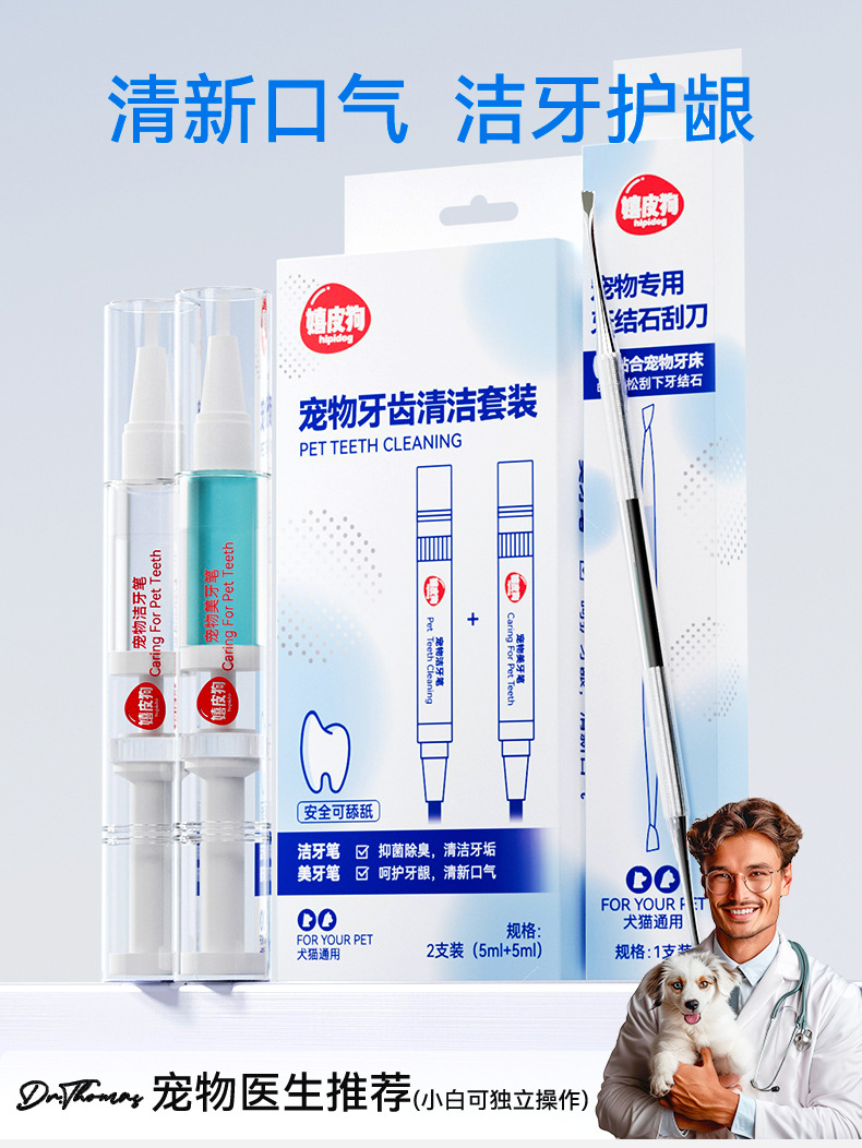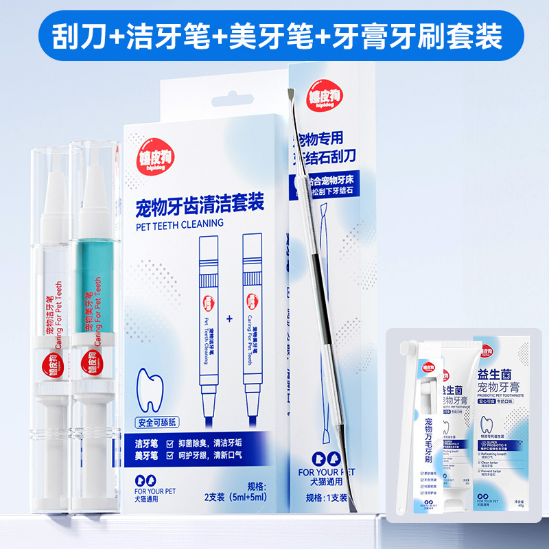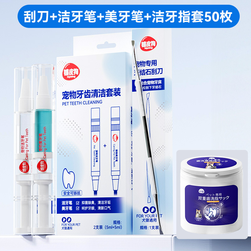 • 치아 청소 펜 + 스크레이퍼 + 치아 청소 핑거 콧