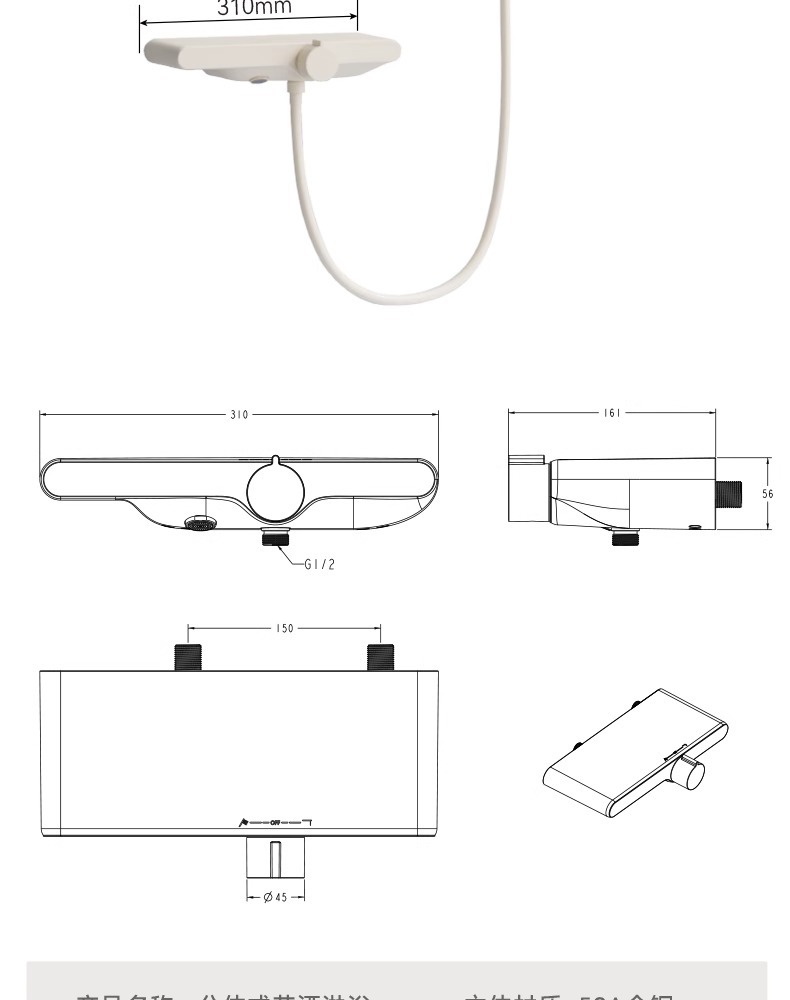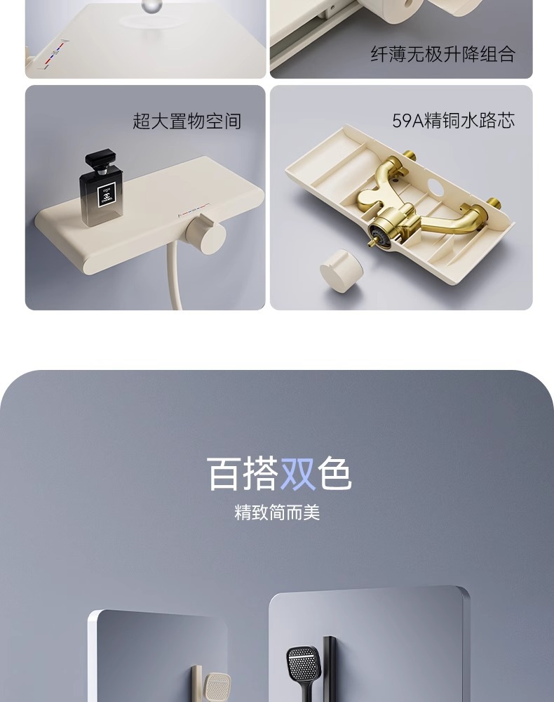 크림 화이트 샤워기 욕실 분리형 간편 샤워기 풀세트 욕실 무탑 샤워 호텔 엔지니어링