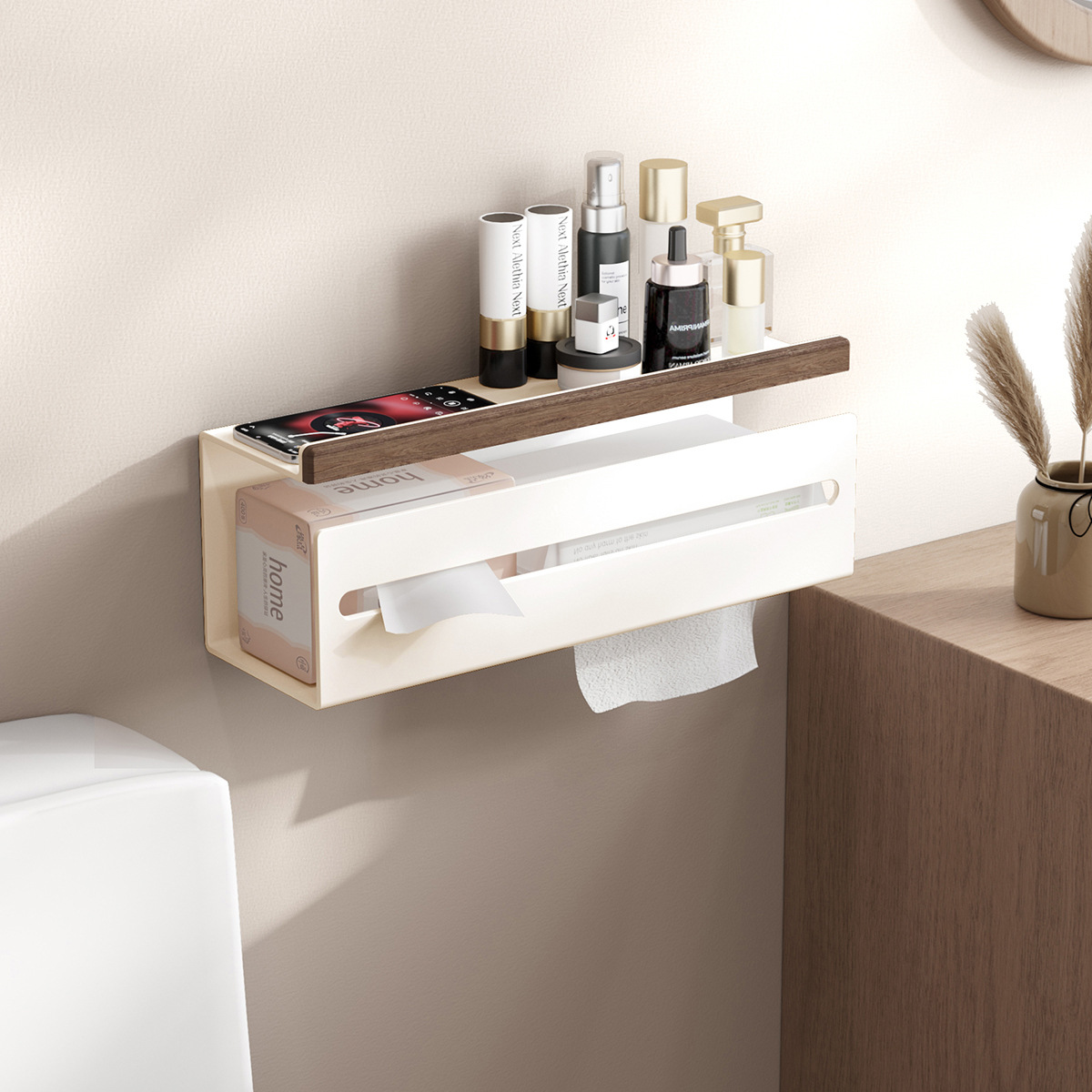 크림 스타일 솔리드 우드 페이퍼 타월 스토리지 랙 화장실 화장실 세탁기 펀치 프리 화장실 종이 서랍 형 페이스 타월 보관