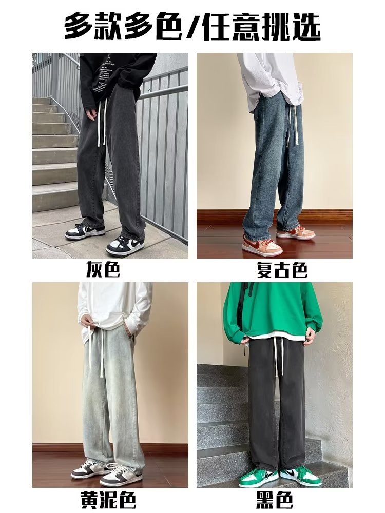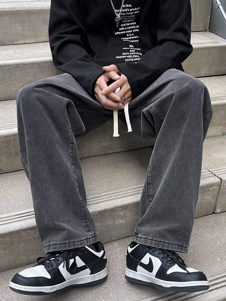 검은 회색 청바지 남자 봄 2024 새로운 느슨한 직선 바지 유행 브랜드 하이 스트리트 바이브 바람 바지 남자스토어 가기