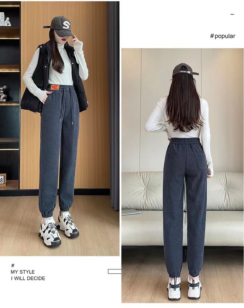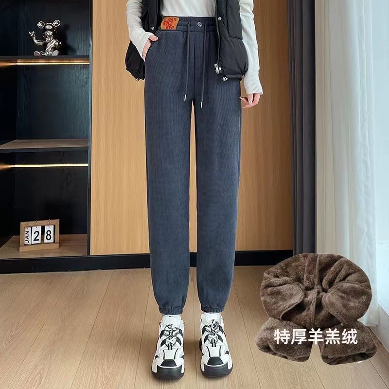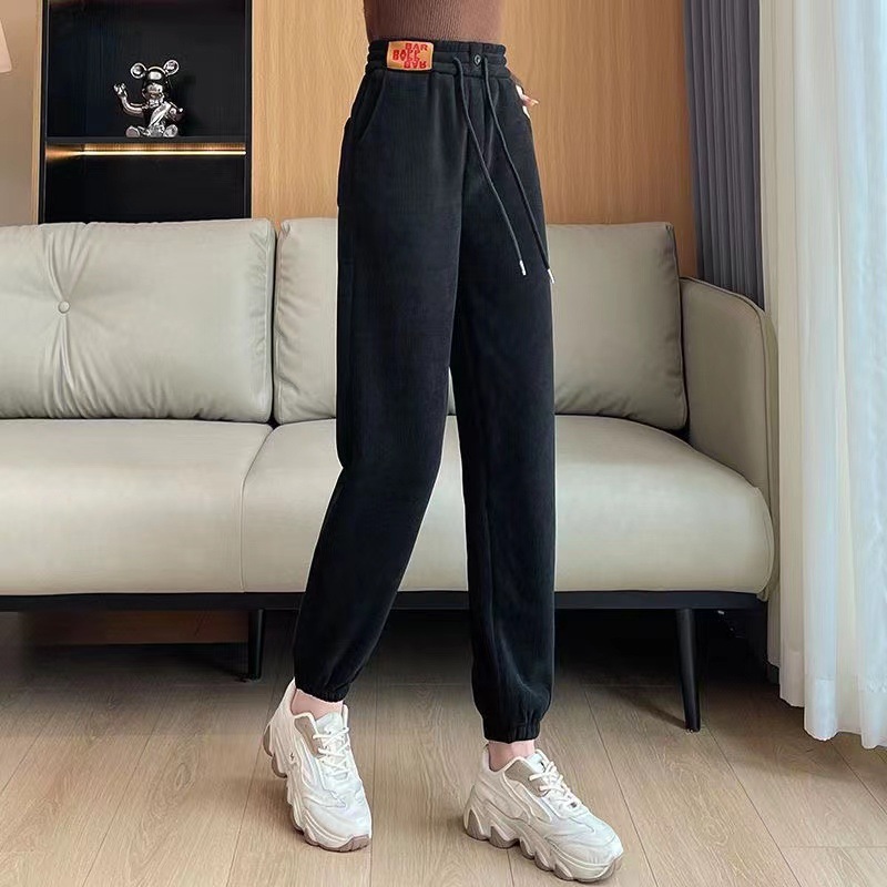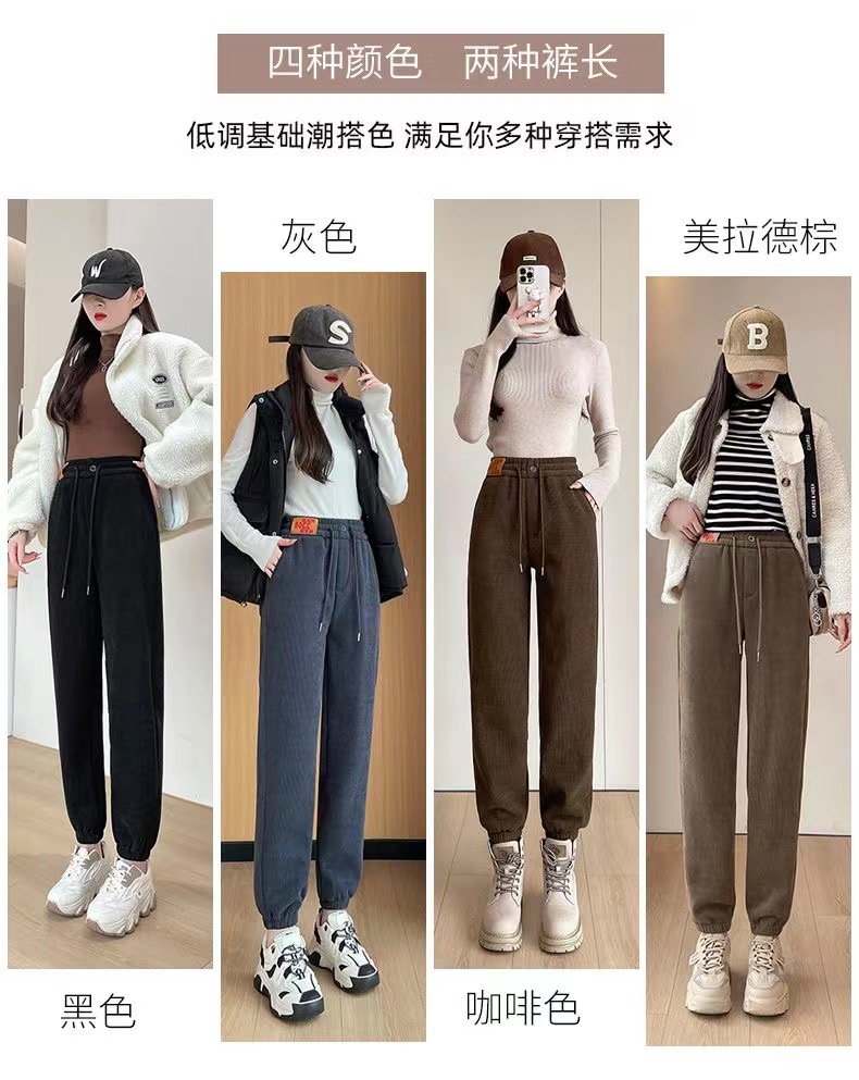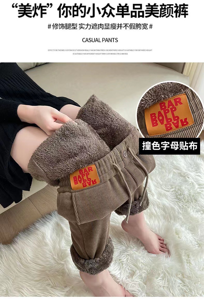 기모 두꺼운 바지 어린이 2024 가을과 겨울 폭발 플러스 사이즈 느슨한 발가락 캐주얼 스포츠 바지 따뜻한 바지 코튼 바지스토어 가기