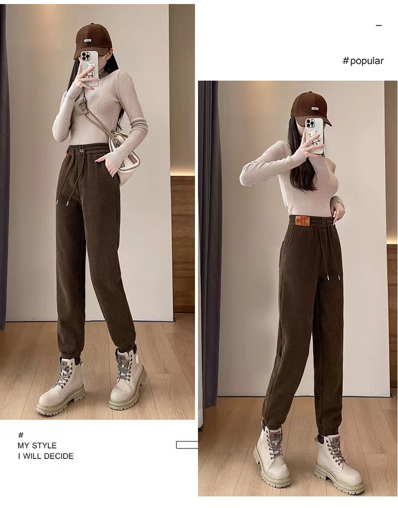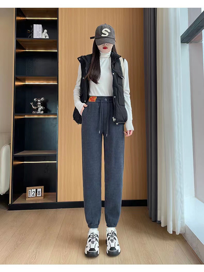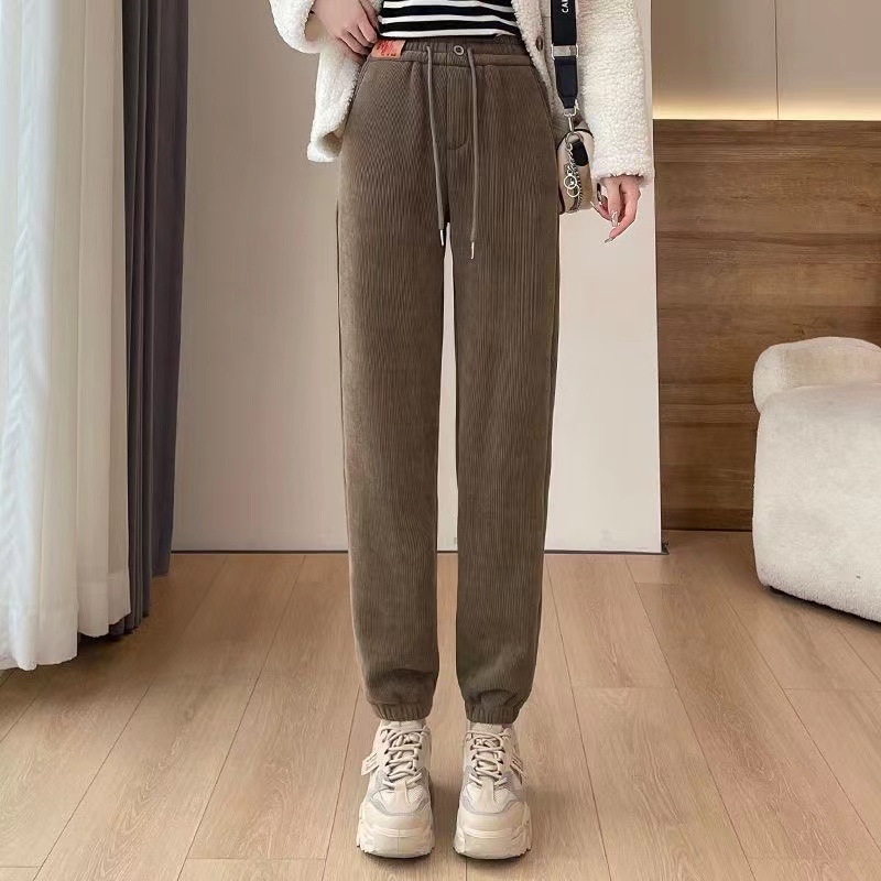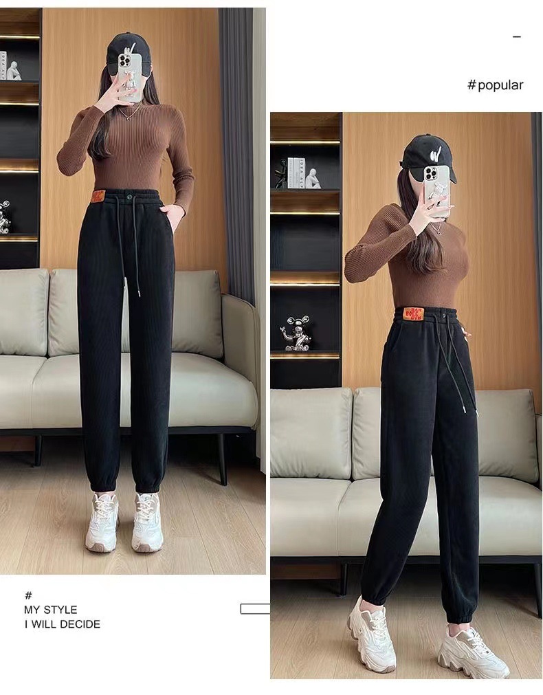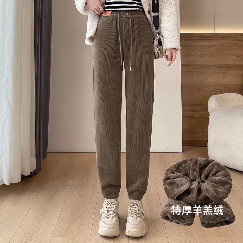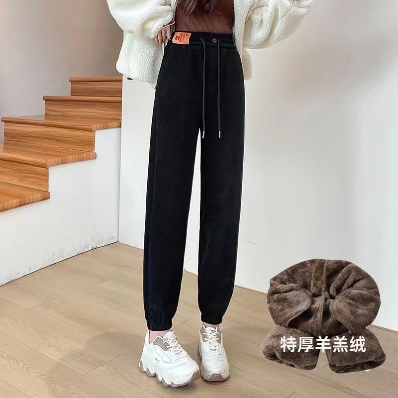 기모 두꺼운 바지 어린이 2024 가을과 겨울 폭발 플러스 사이즈 느슨한 발가락 캐주얼 스포츠 바지 따뜻한 바지 코튼 바지스토어 가기