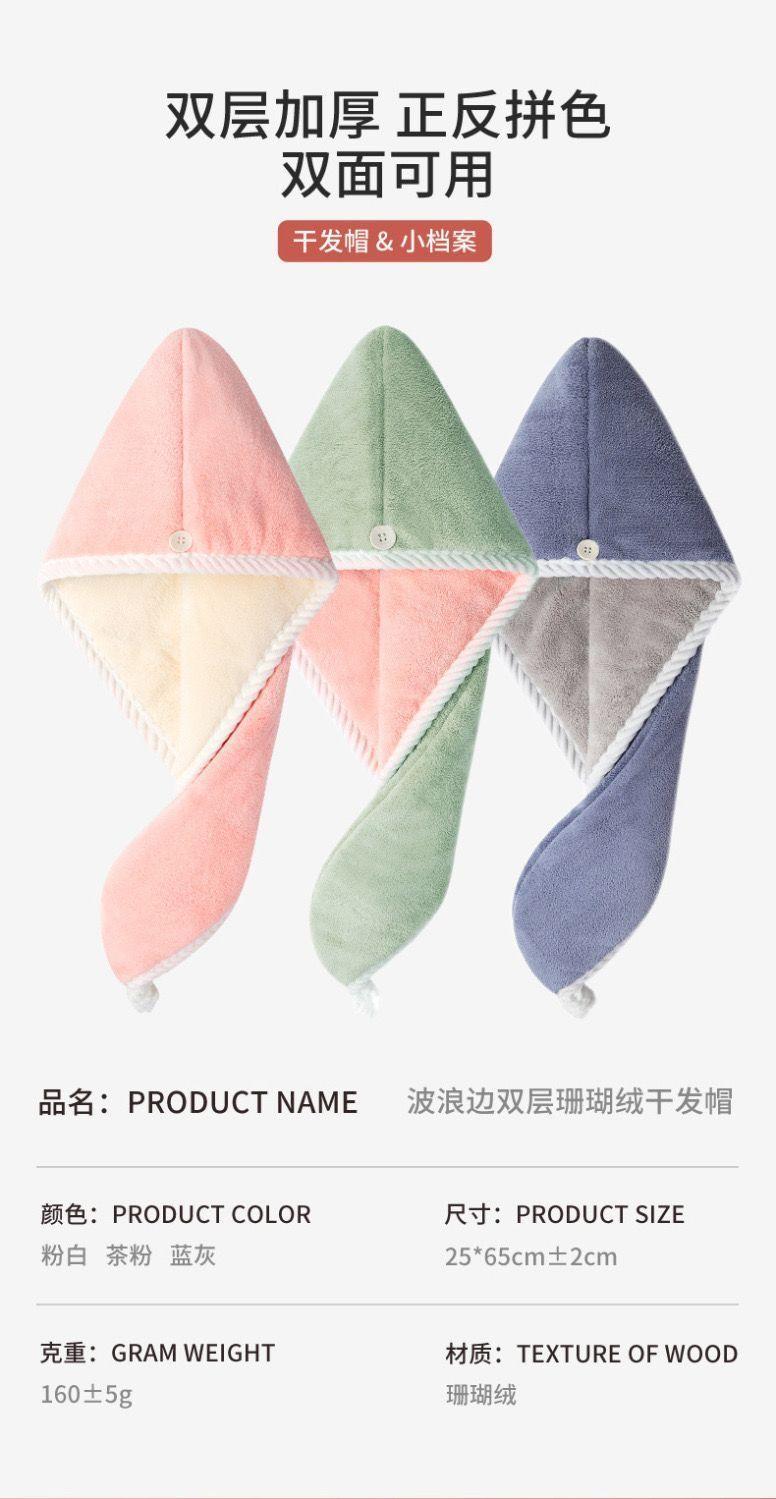헤어 건조 모자 타월 두꺼운 슈퍼 흡수성 산호 양털 더블 레이어 샤워 모자 헤어 세척 빠른 건조