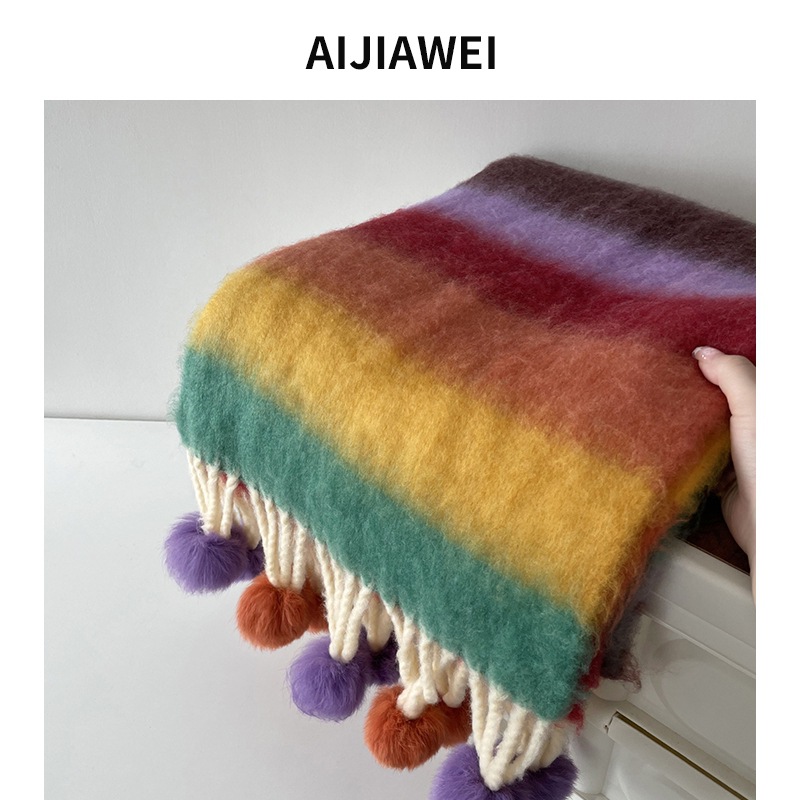 스카프 여성의 겨울 최고급 가을과 겨울 새로운 도착 레인보우 마우 헤어 술 목도리 긴 두꺼운 따뜻한 스카프스토어 가기