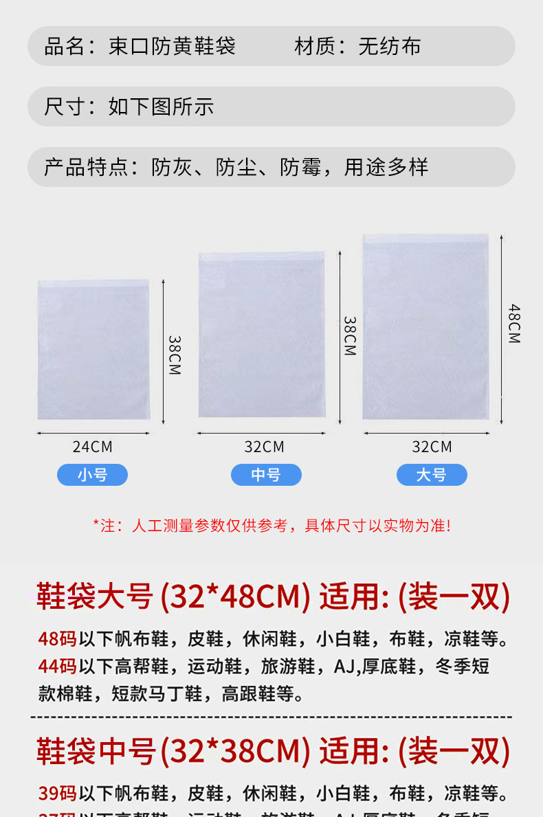 신발 보관 가방 태양 신발 황변 가방 부직포 신발 가방 수분 방지 가정용 작은 흰색 신발 커버 습기 방지 곰팡이 방지 가방