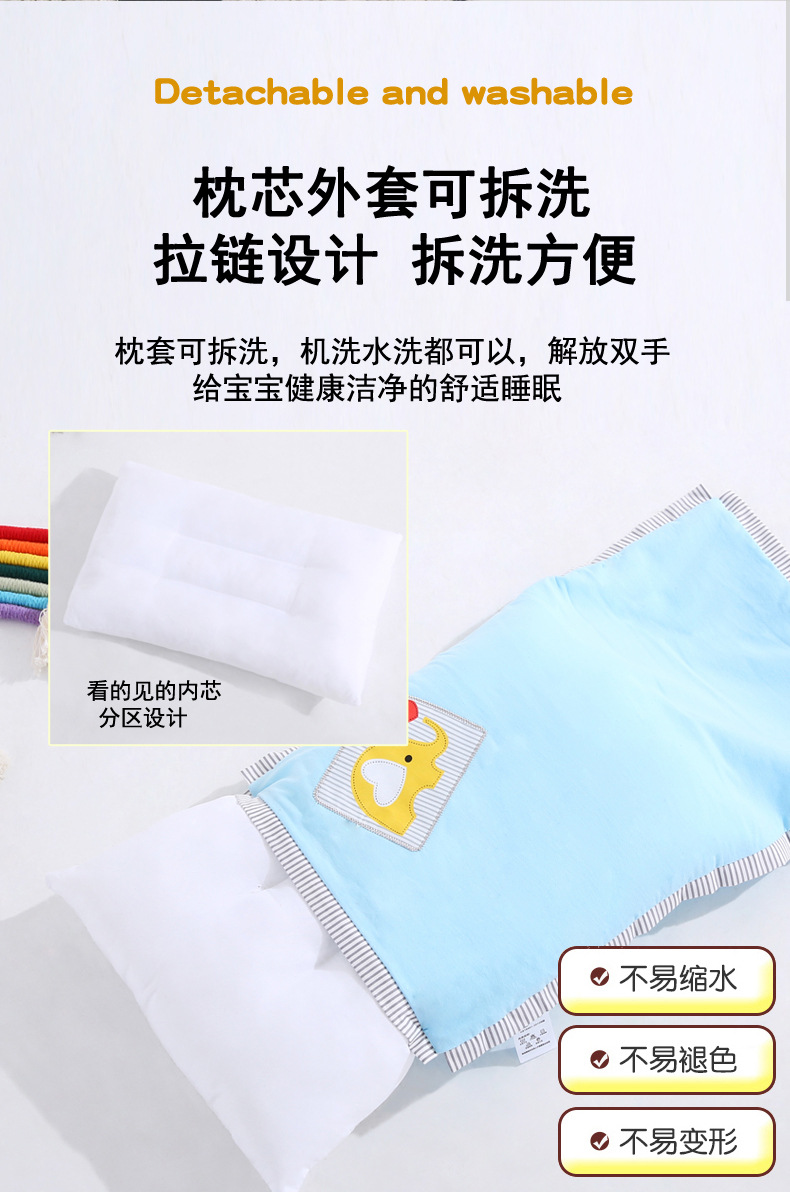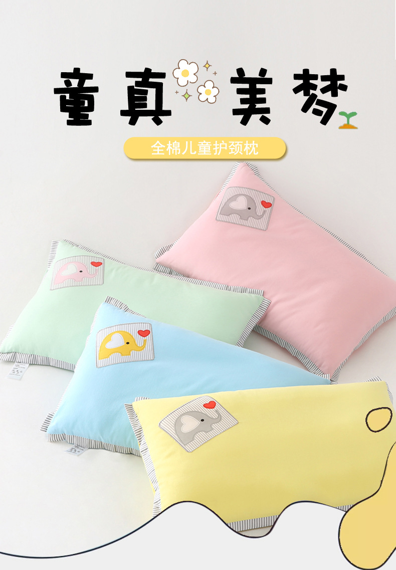 면 테이프 수 놓은 아기와 어린이 편안한 베개 건강 베개 유치원 순수한 면 베개 코어 베개