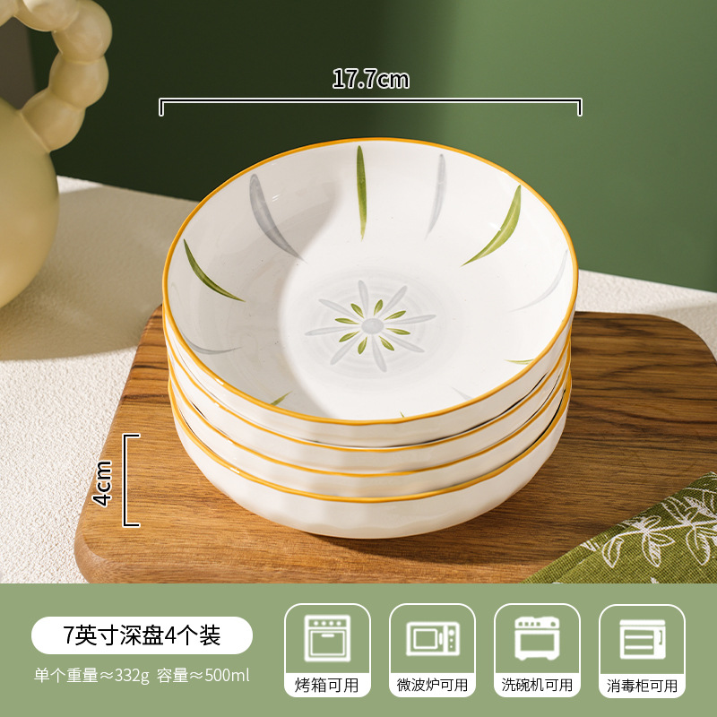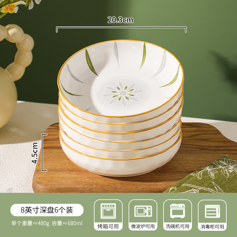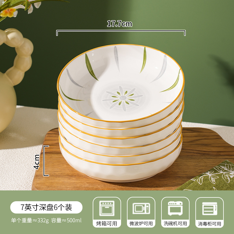 Underglaze 컬러 가정용 세라믹 접시 디너 플레이트 딥 플레이트 느낌 2024 새로운 스타일 보울 플레이트 식기 신선한 접시 소스스토어 가기