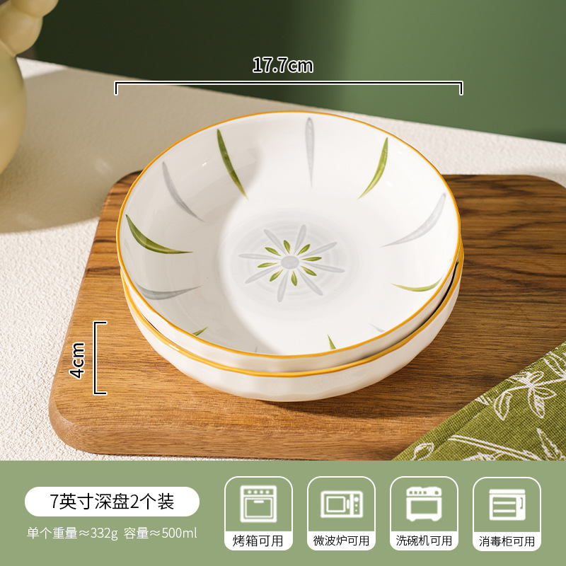 Underglaze 컬러 가정용 세라믹 접시 디너 플레이트 딥 플레이트 느낌 2024 새로운 스타일 보울 플레이트 식기 신선한 접시 소스