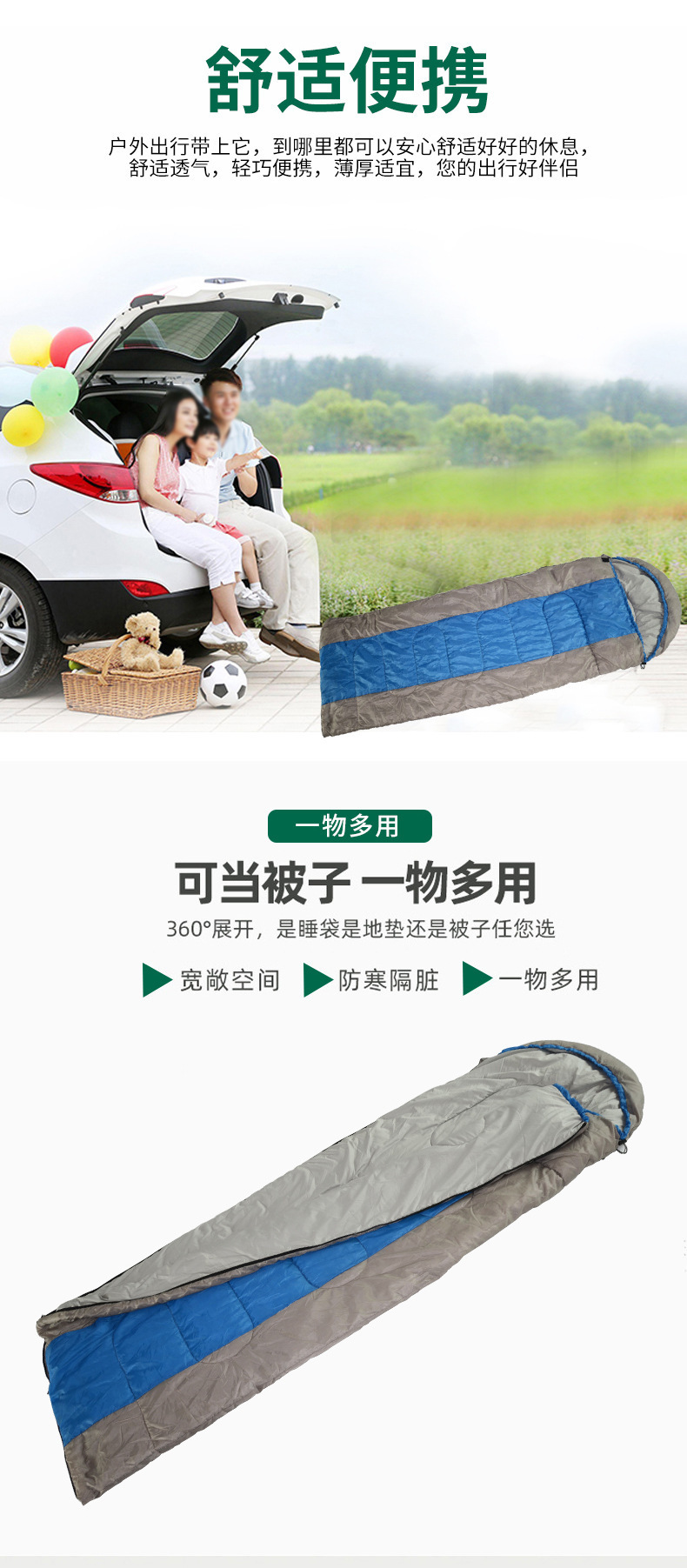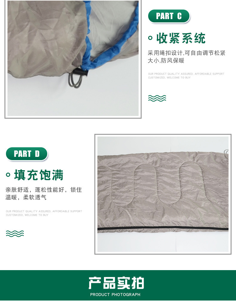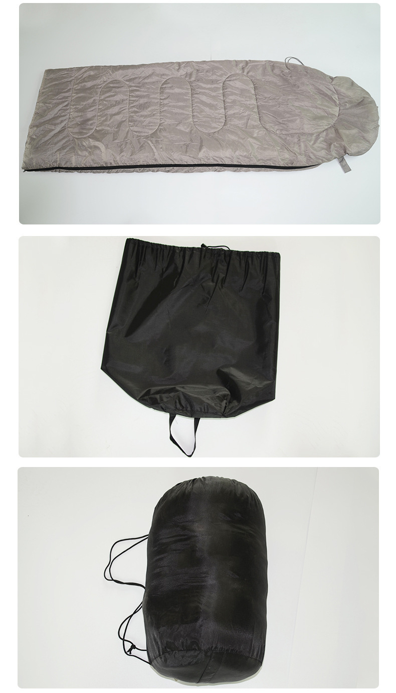 공장 재고 야외 캠핑 봉투 유형 폴라로이드 그레이 슬리핑 백 후드 슬리핑 백 방수 냉방 성인 슬리핑 백스토어 가기