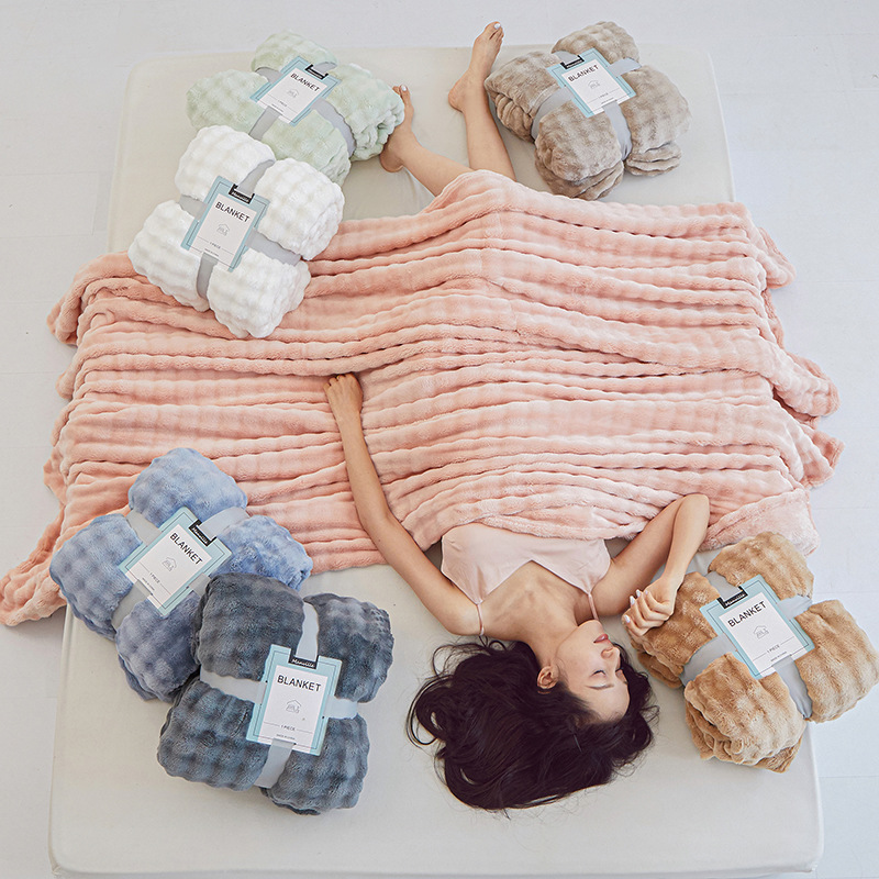 모조 토끼털 작은 버블 플리스 담요 산호 플리스 담요 소파 커버 담요 사계절용 양면 플리스 단색 미니멀리스트 홈