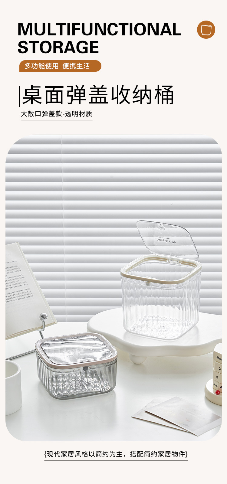 가벼운 럭셔리 미니 데스크탑 휴지통 가정용 거실 데스크 휴지통 프레스 뚜껑 잡화 보관 휴지통