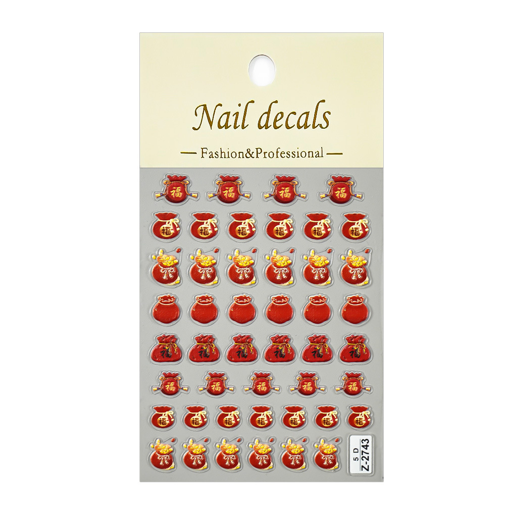 Redanco 새로운 5D 양각 Ins 스타일 봄 축제 포춘 가방 네일 아트 스티커 스테레오 네일 스티커 Z-2743스토어 가기