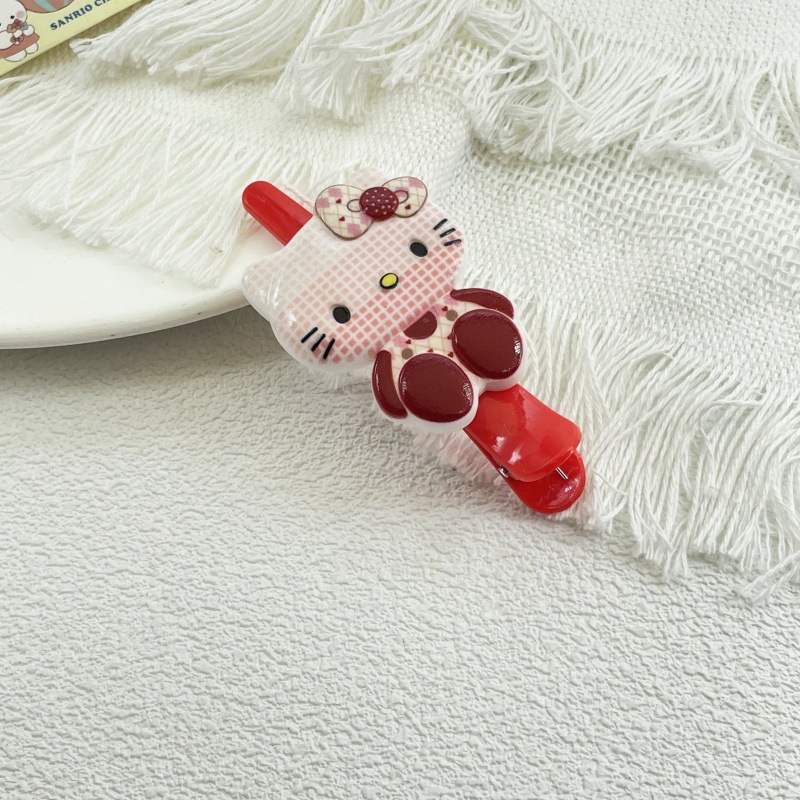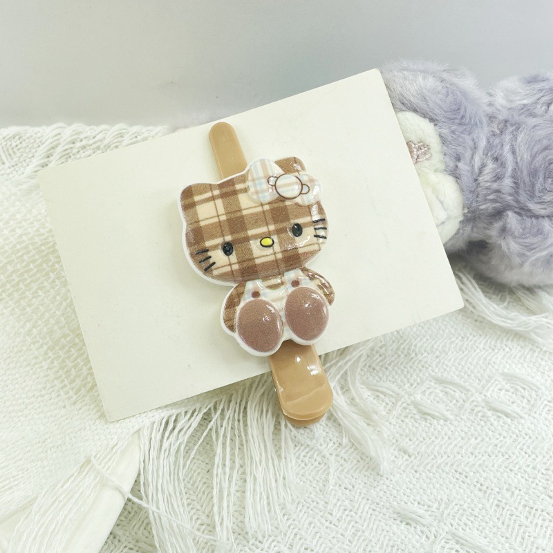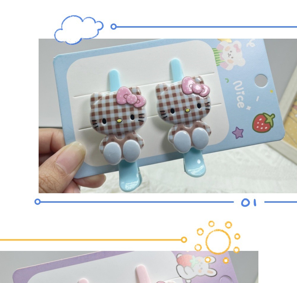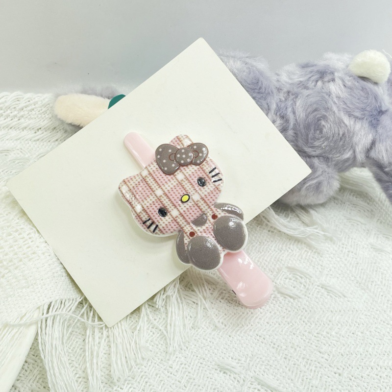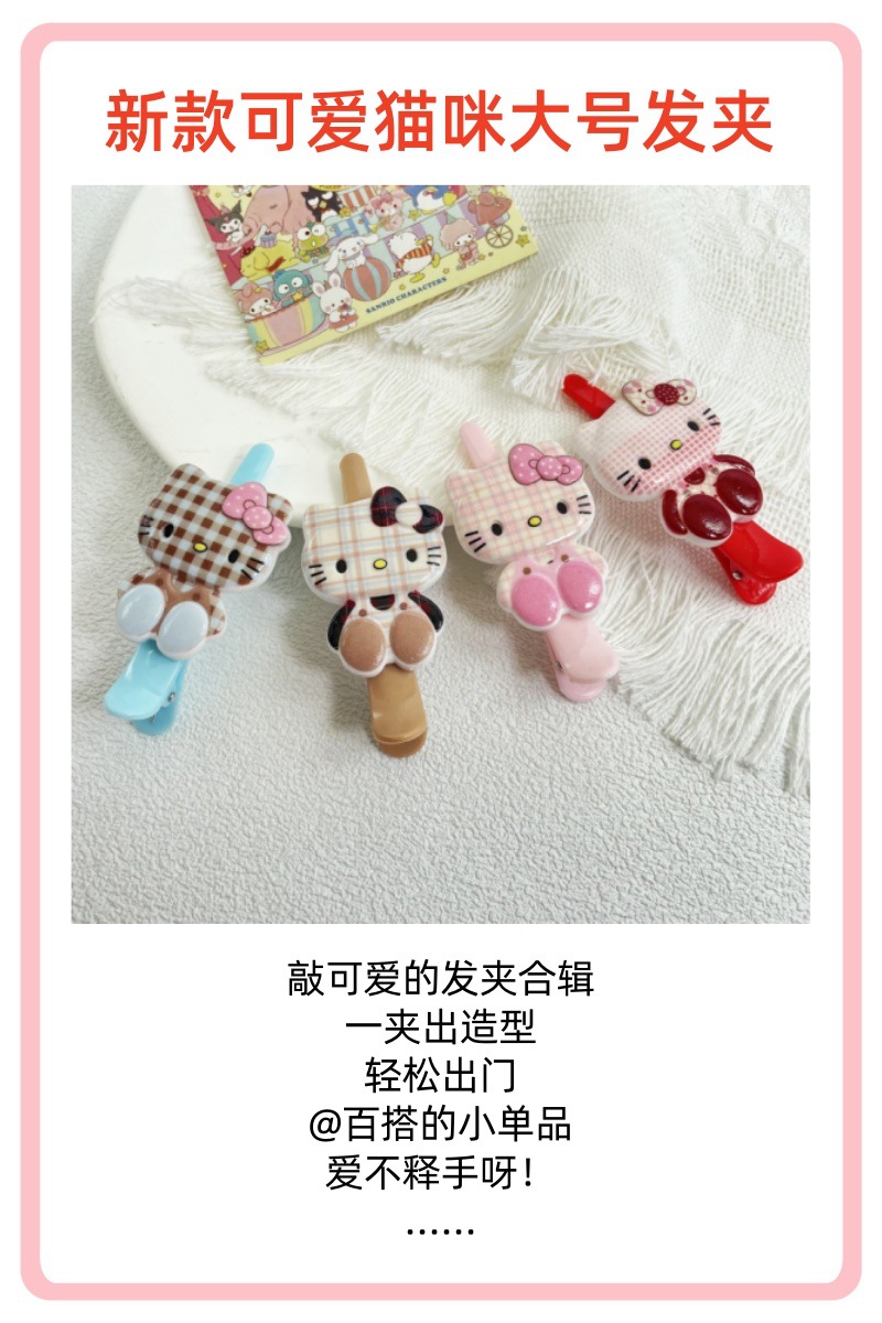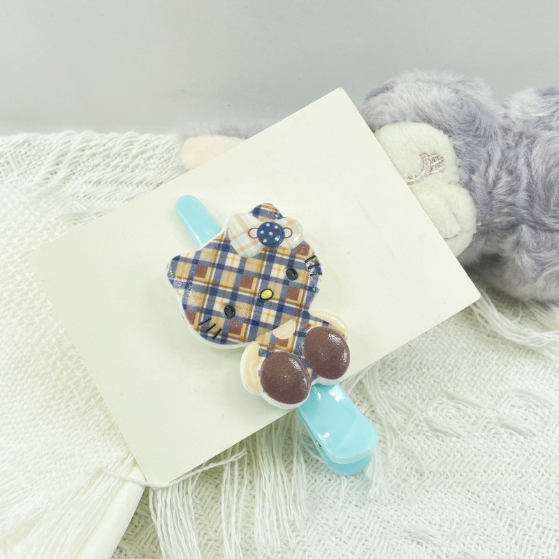 귀여운 대형 격자 무늬 KT 고양이 덕빌 클립 달콤한 소녀 일본 올 매치 헤어핀 깨진 헤어 뱅이 사이드 클립 도매