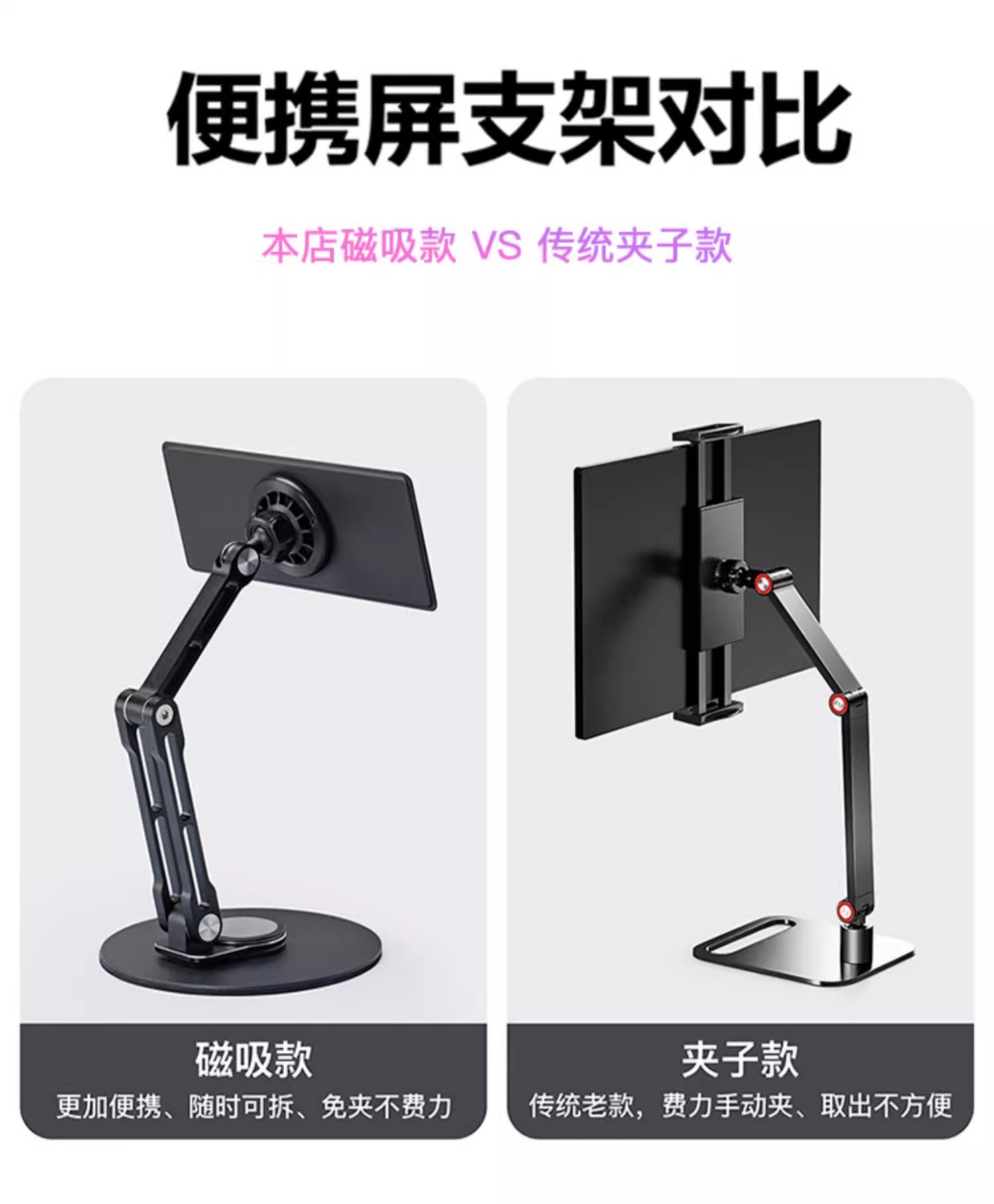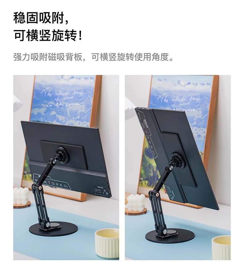 휴대용 스크린 데스크탑 컴퓨터 모니터 화면 서브 스크린 마그네틱 분리 가능한 브래킷 페이스트 백 플레이트에 적합스토어 가기
