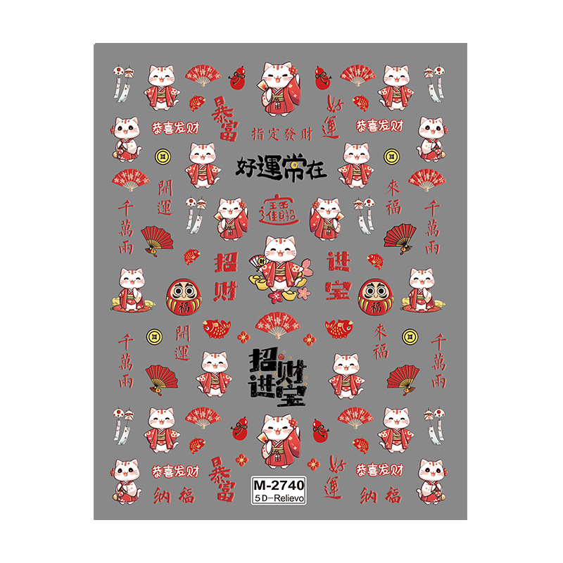 Redanco 새로운 5D 엠보싱 인 스타일 봄 풍부한 행운의 고양이 네일 스티커 스테레오 네일 스티커 M-2742