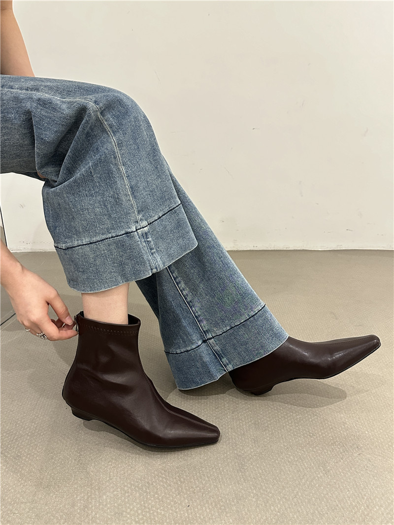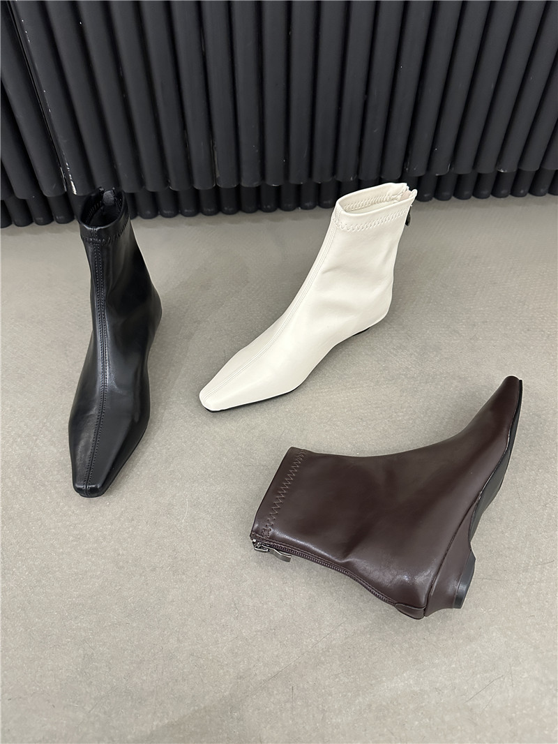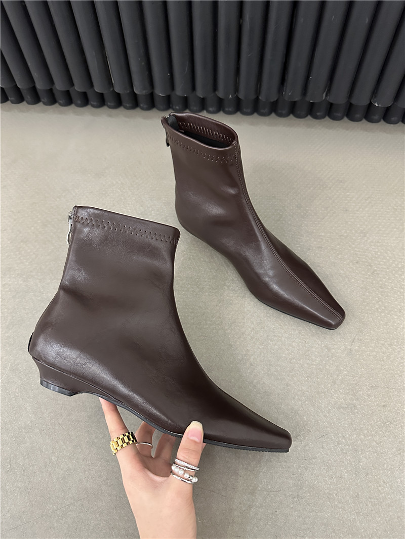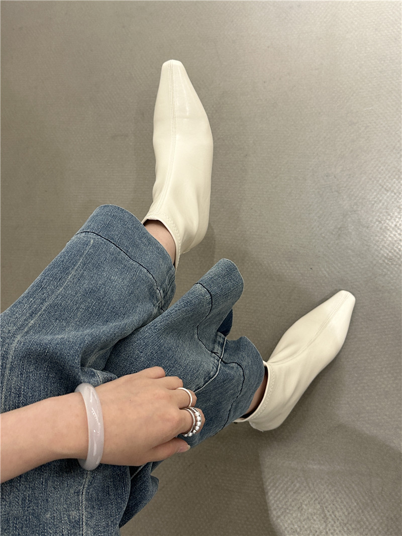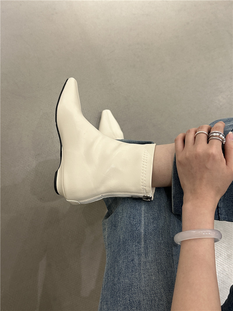 기질 낮은 뒤꿈치 사각형 머리 기모 짧은 부츠 여성 2024 가을과 겨울 새로운 간단한 여성 부츠 짧은 부츠 프랑스 얇은 부츠스토어 가기